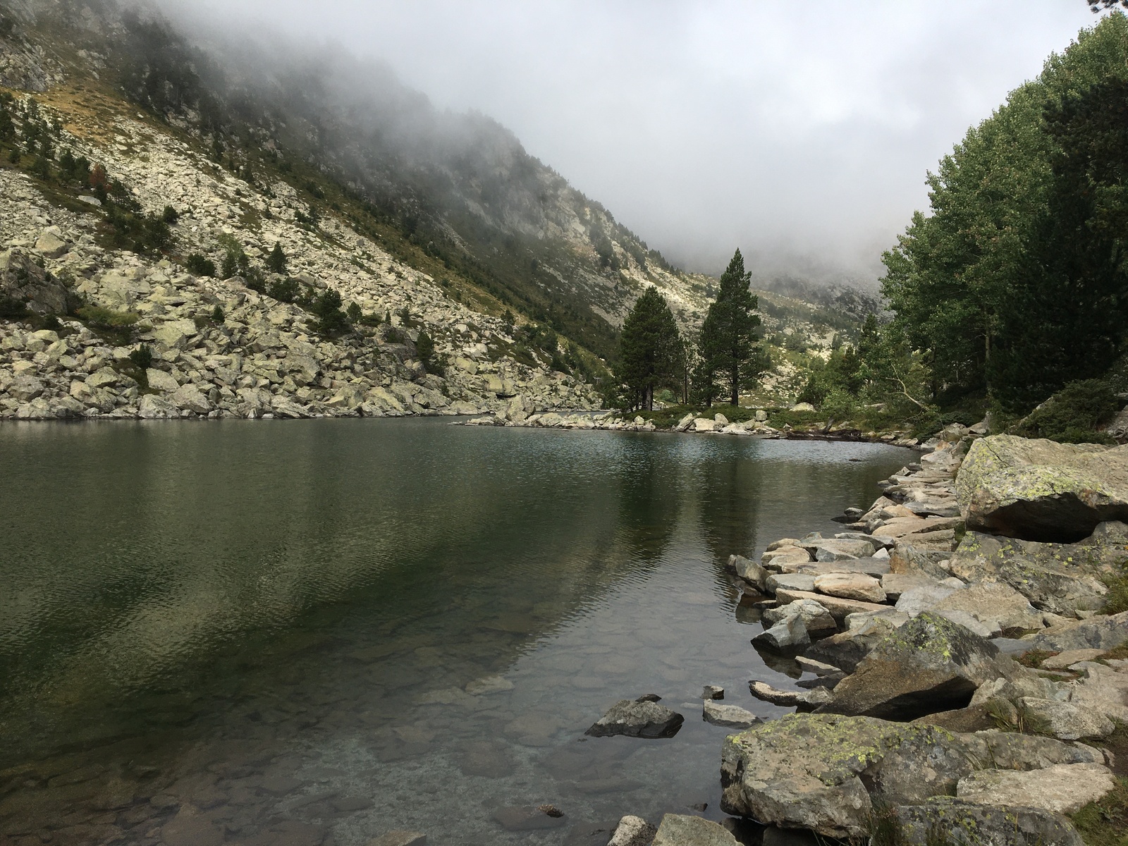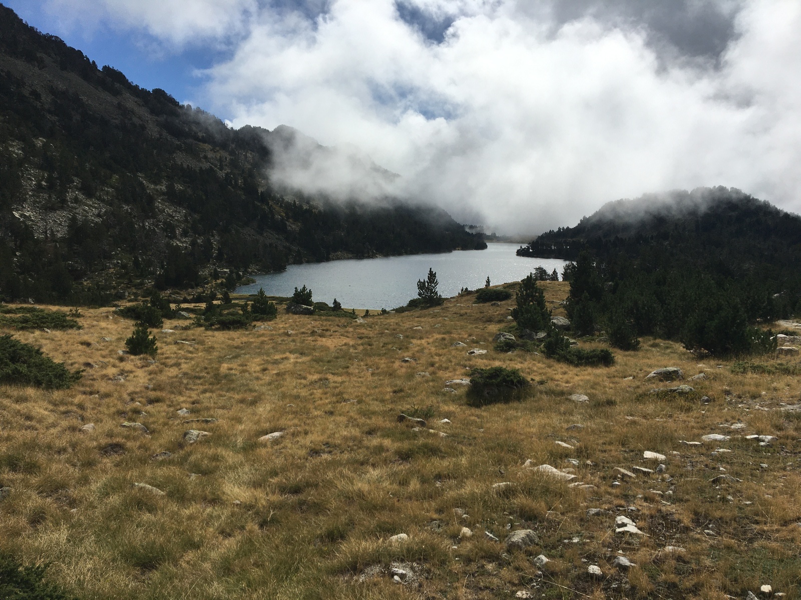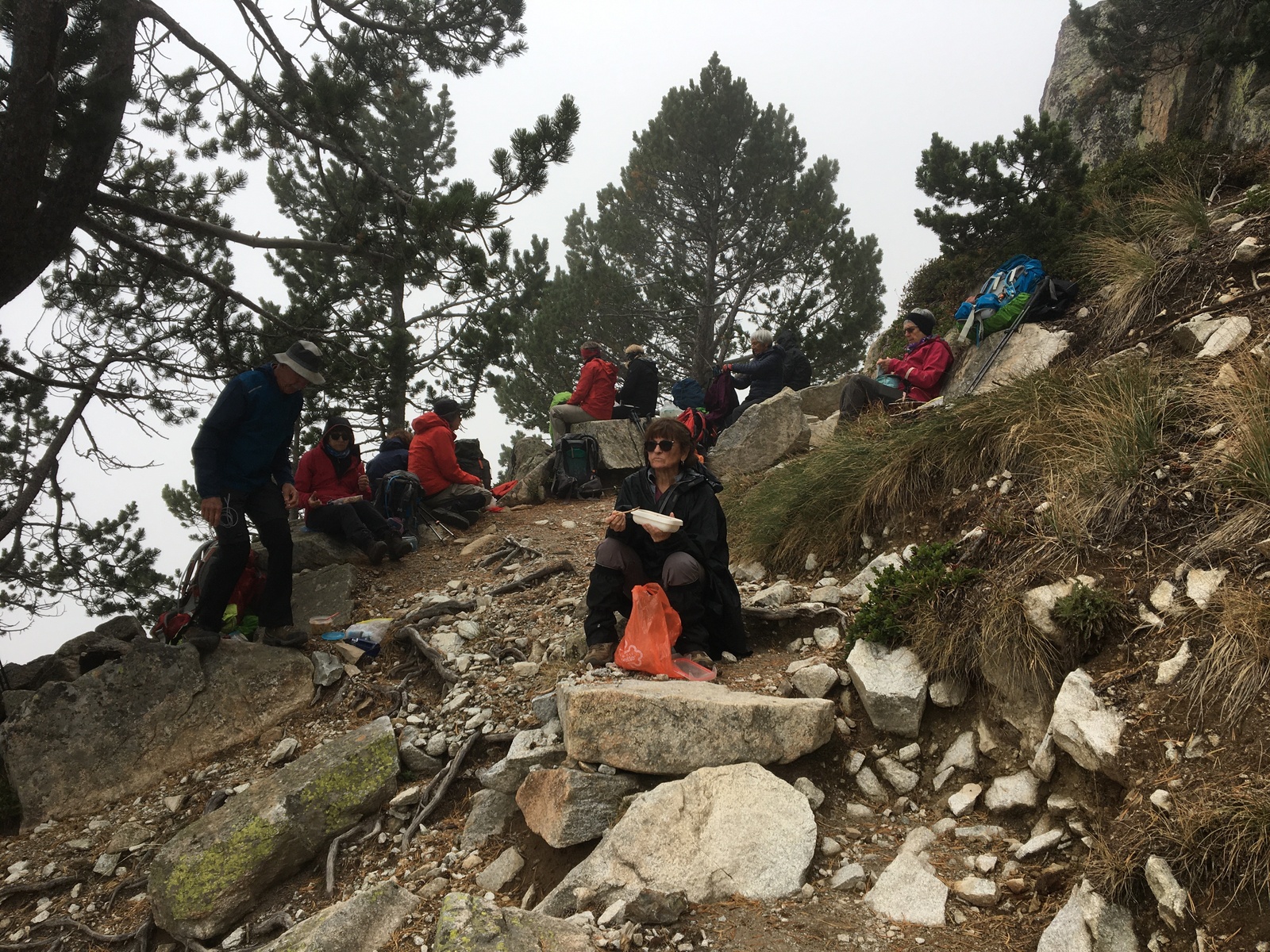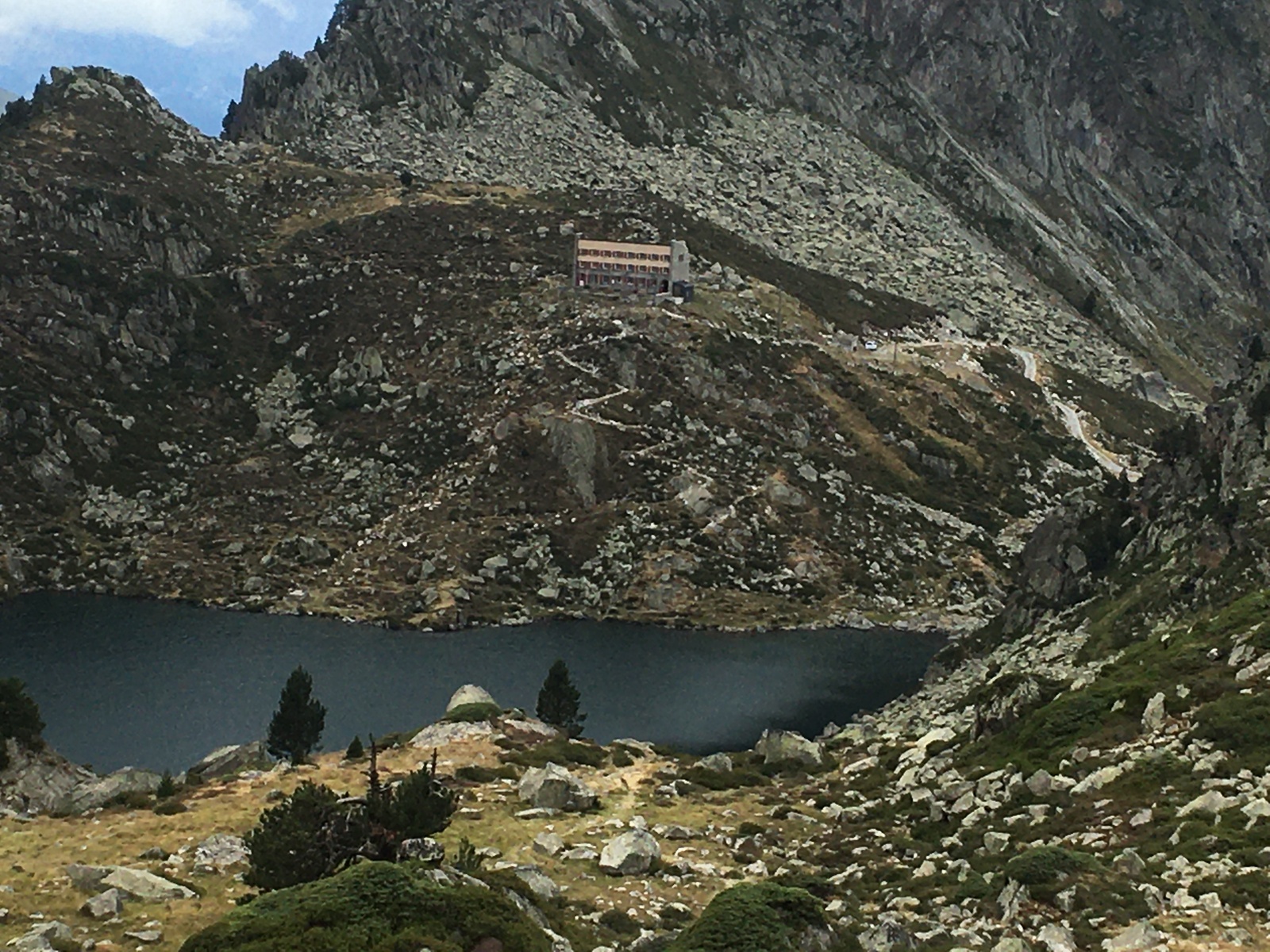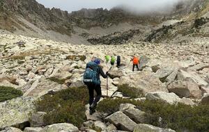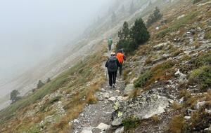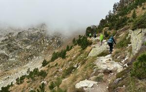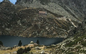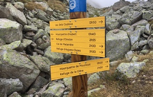 3 jours tour des lacs de Neouvielle 1er jour lac d'Oredon refuge de la Glere 11Km dénivelé + 900 m -600 m Départ du parking d'Oredon avec de la bruine avec courage montée par les laquettes arrivée à Lac d'Aubert temps plus clair avec quelques passage de brume montée vers la Hourquette d'aubert avec les lac d'Aubert et Aumar en dessous pause casse croute passé par la Hourquette d'Aubert descente pour prendre la montée vers la Hourquette de Monicot 2547m montée raide avec passage rocheux descente vers refuge toujours aussi raide avec passage rocheux enfin on découvre le refuge de la Glere on contourne le lac de laGlere et petite montée vers le refuge repos bien mérité quel panorama !!!