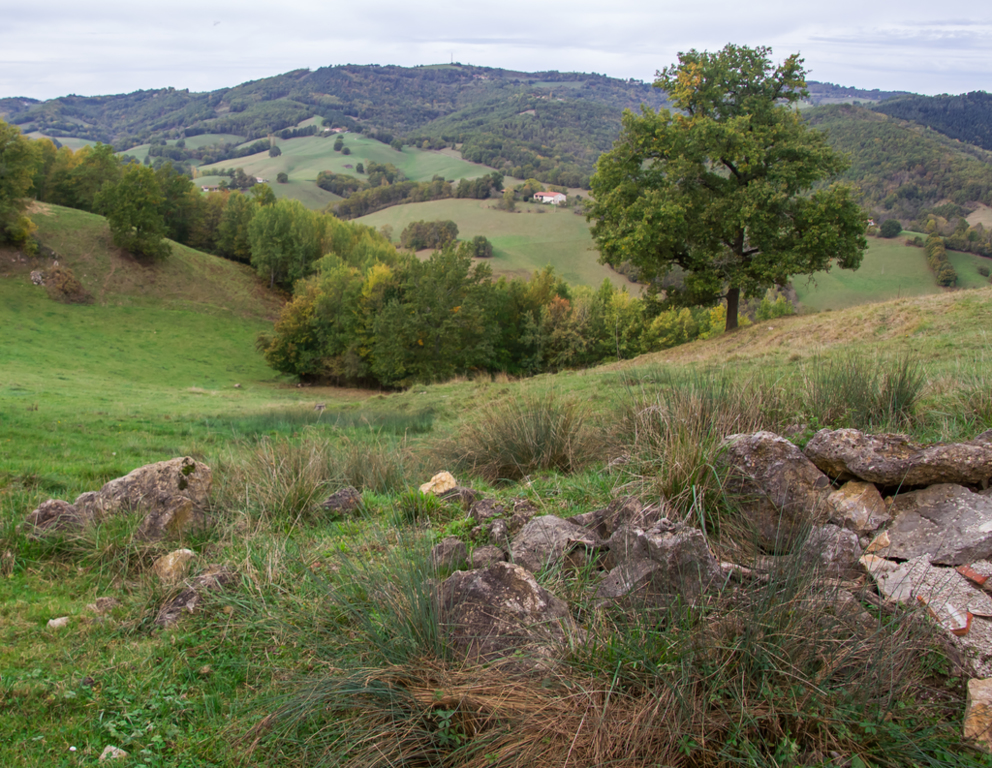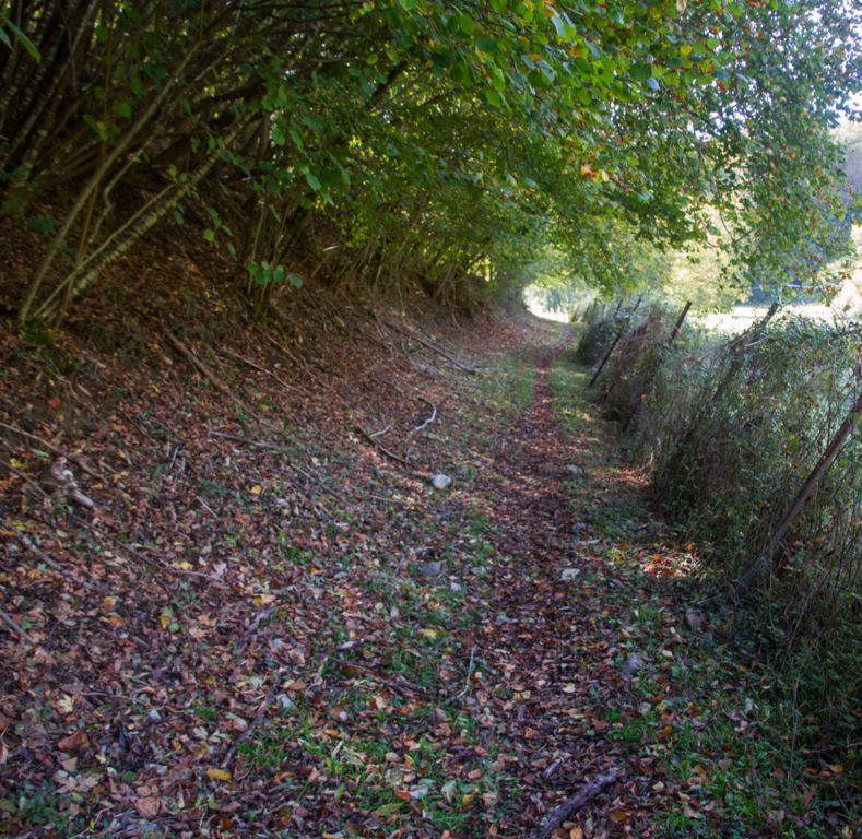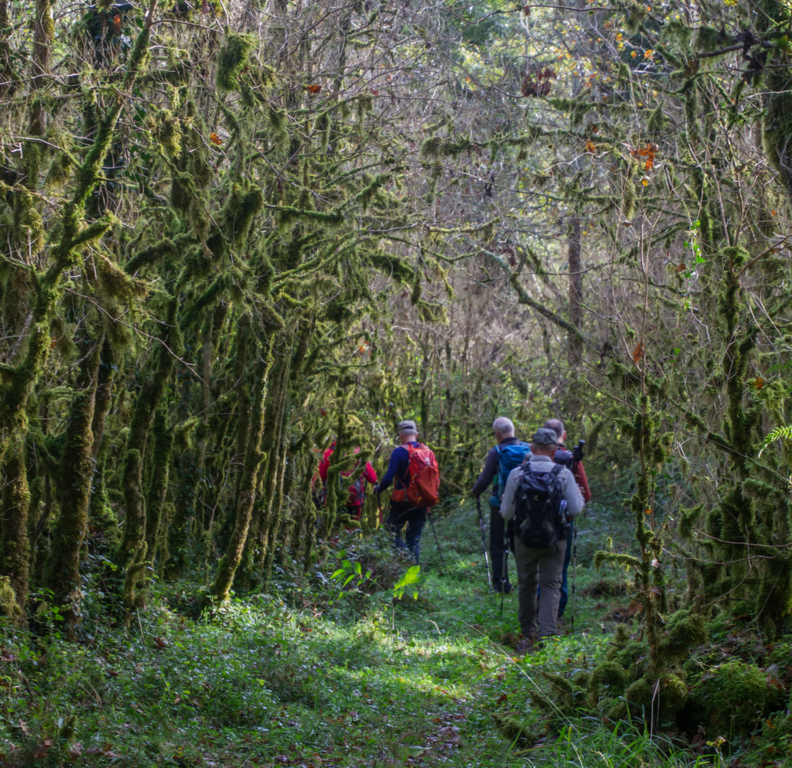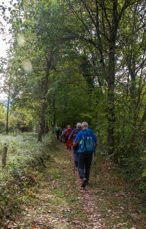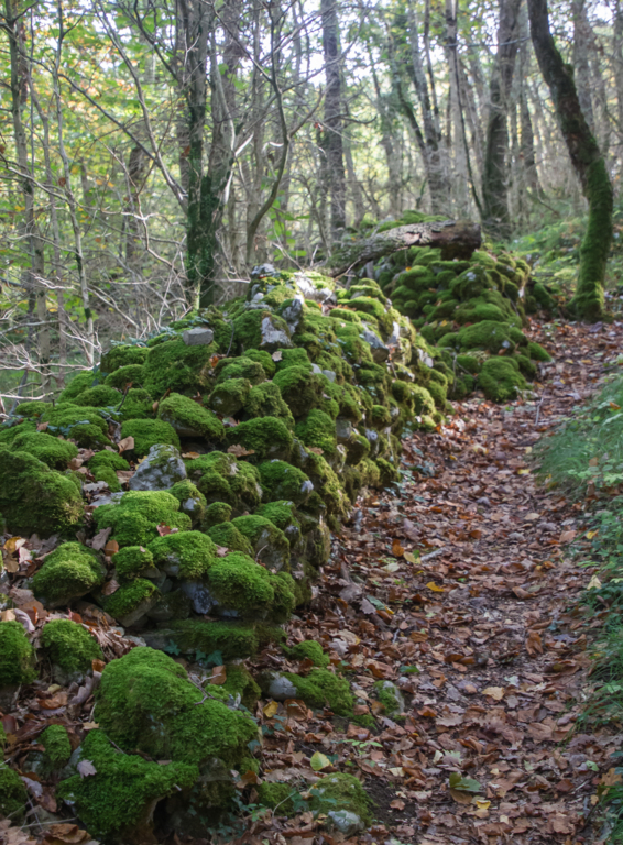 Légère descente dans une forêt très humide puis montée pour rejoindre les crêtes du massif du Plantaurel en passant par la fontaine (à sec) de Coi d’Aouac.