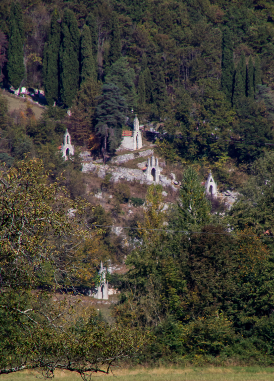 Vue sur l’église de l’Immaculée Conception et le chemin de Croix de Rieubach (09)