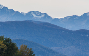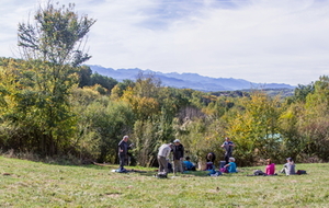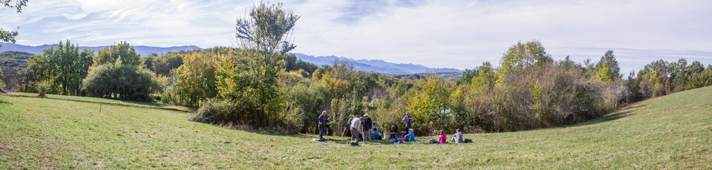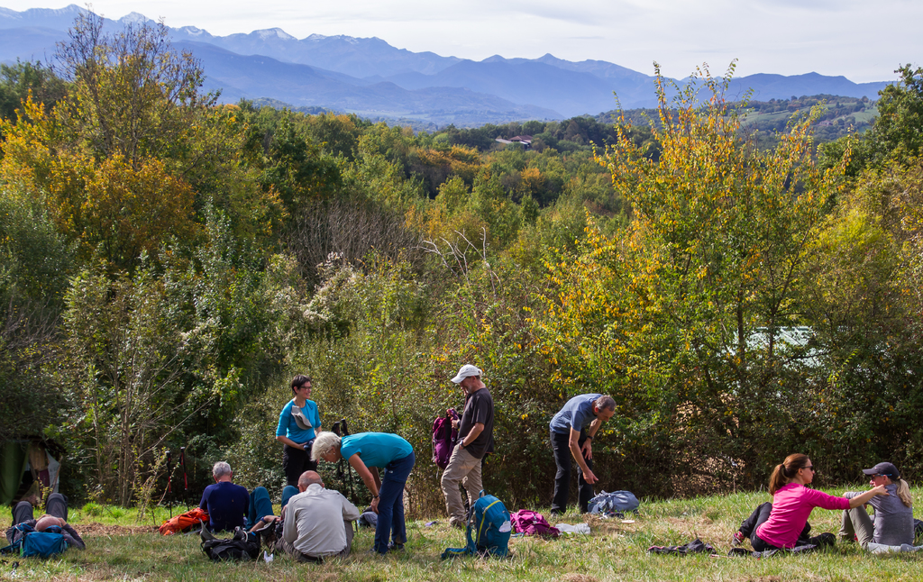 Pause repas face aux Pyrénées ariégeoises dominées par le Mont Valier.