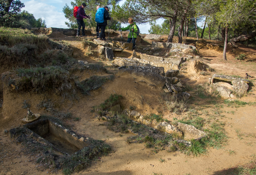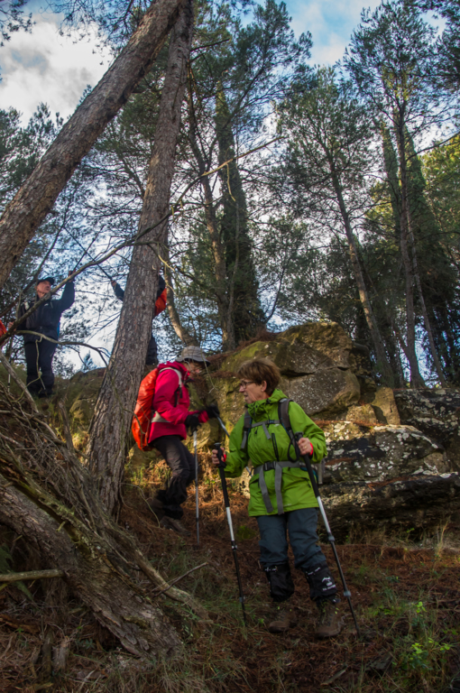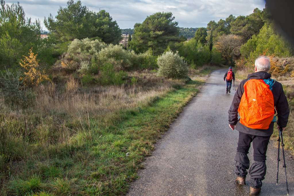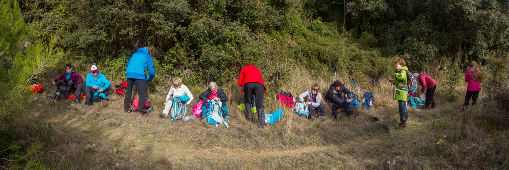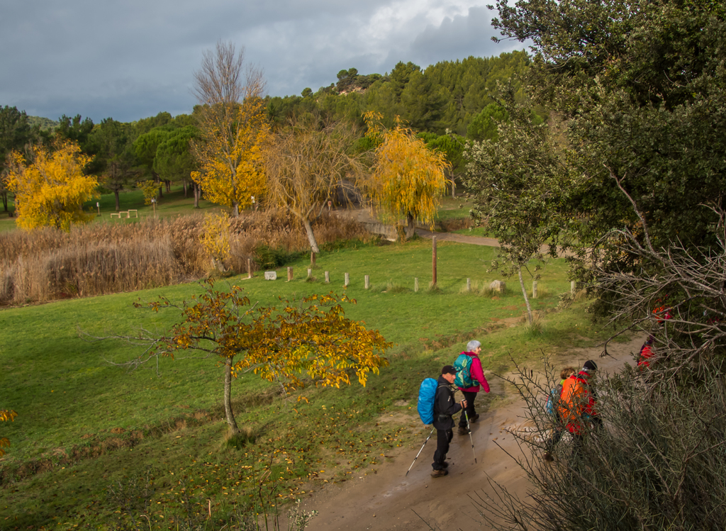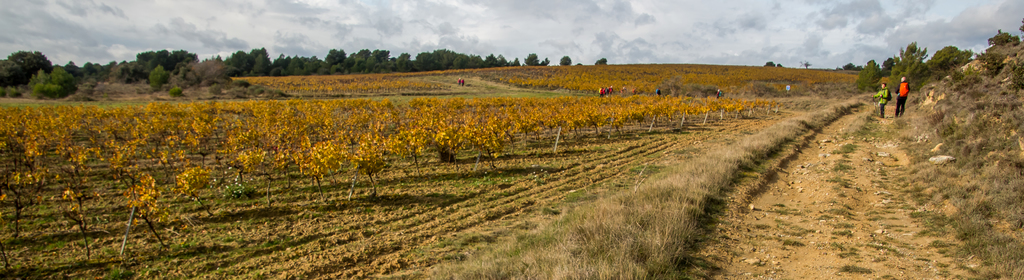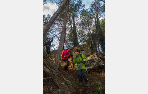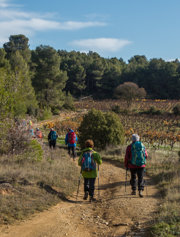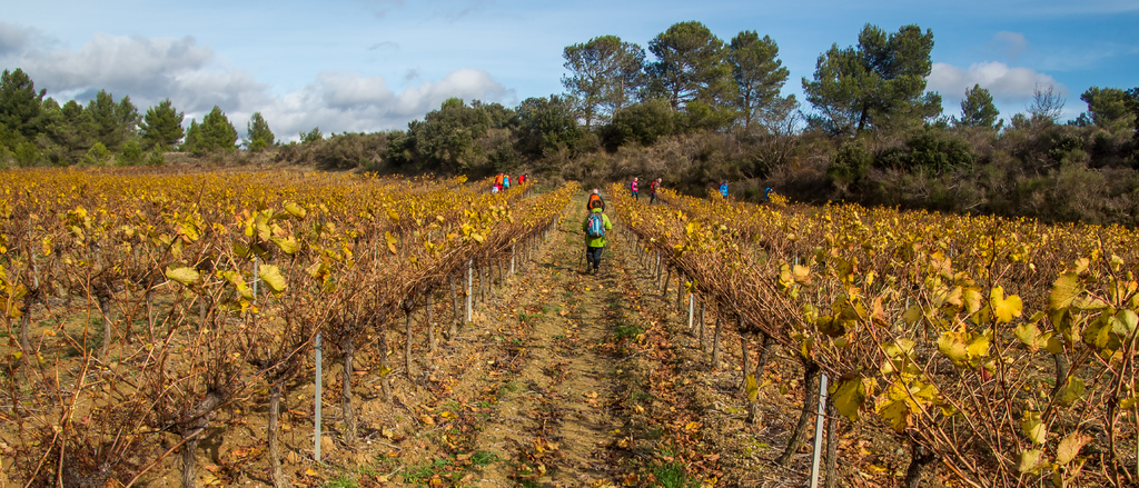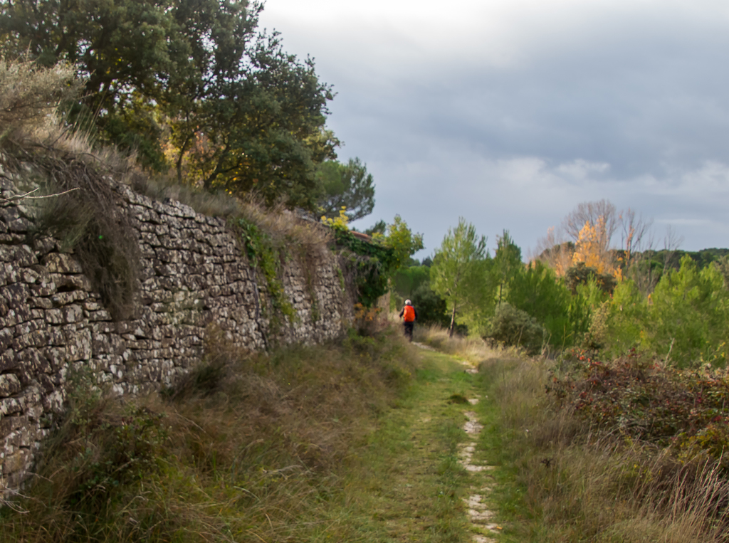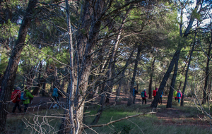 Jeudi 28 novembre 2019 Laure-Minervois – Entre garrigues, pinèdes, vignobles et capitelles (Aude) Le temps très pluvieux au point de rendez-vous Unionais nous a amené à changer de cap. Direction l’Aude (au lieu de St Antonin Noble Val - 82) pour rejoindre Laure-Minervois sous la pluie. Arrivée au point de départ de notre randonnée les quelques dernières gouttes sont chassées par le vent de Nord-Ouest (Cers) qui se lève. Temps doux, humide et nuageux devenant plus frais mais ensoleillé en fin de matinée sous l’effet du vent . Dès la sortie du village, traversée de vignoble et montée dans une pinède à proximité des Bentoulades puis du Galabru et du Garrigot .Découverte des premières capitelles (abris ouvriers en pierre sèches). Passage aux milieux de vignes en surplomb de Laure-Minervois avec vue sur les Pyrénées Catalanes embrumées. Arrivée dans une zone de loisirs avec une belle retenue d’eau alimentée par les ruisseaux de l’Escure et des Palats. Poursuite entre vignes et garrigues en alternance jusqu’à Métairie Neuve. Traversée ensuite de la pinède La Crémade puis d’un vaste vignoble avant d’aboutir aux fouilles exhumées d’un cimetière de Wisigoths. Boucle de retour sur Métairie Neuve à travers de belles garrigues, passage sur le ruisseau de La Grand-Combe (à sec) avant la pause repas à l’abri du vent. Après la traversée de Métairie Neuve et quelques vignes, retour dans des pinèdes, celles de Pech Majou avec plusieurs capitelles, mais aussi des dizaines de cèpes des pins après les ceps de vignes! Fin de parcours avec belles vues sur la plaine de Carcassonne et Trèbes, la Montagne d’Alaric et le village de Laure-Minervois.