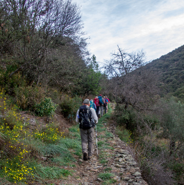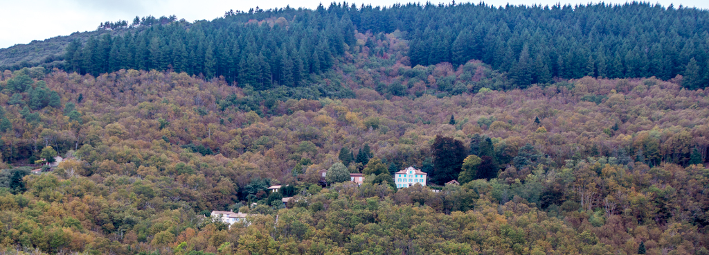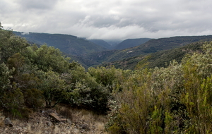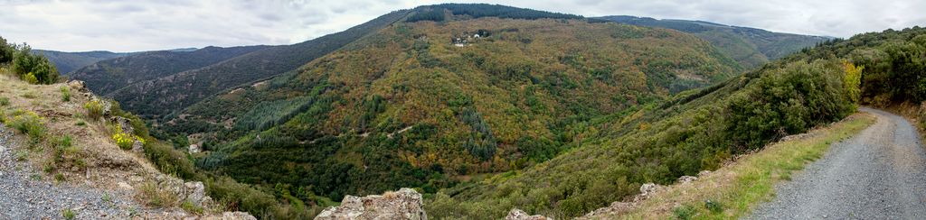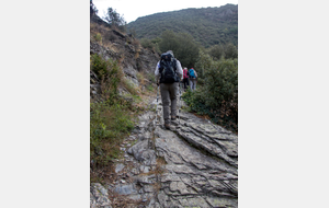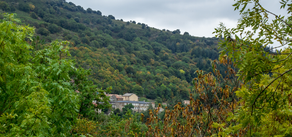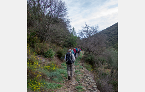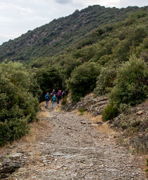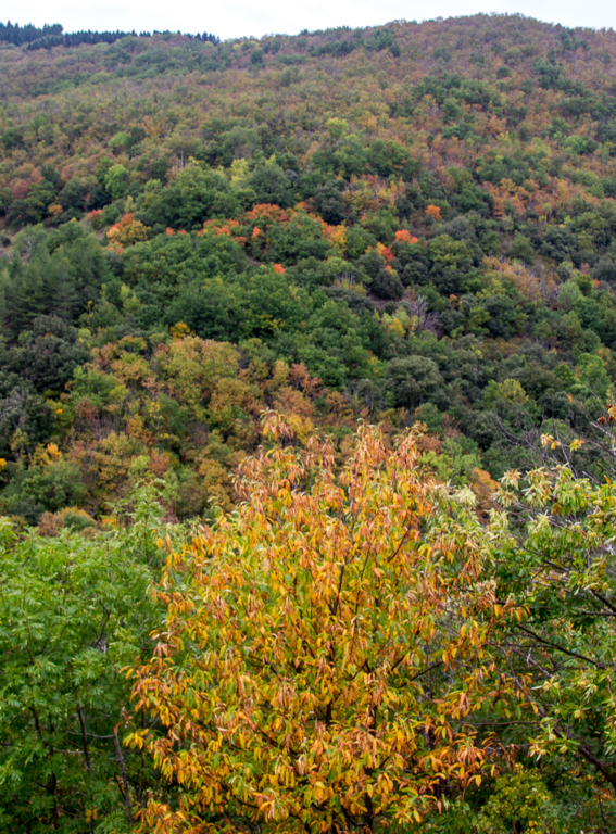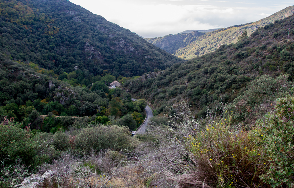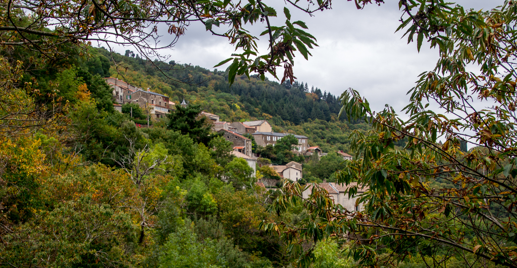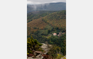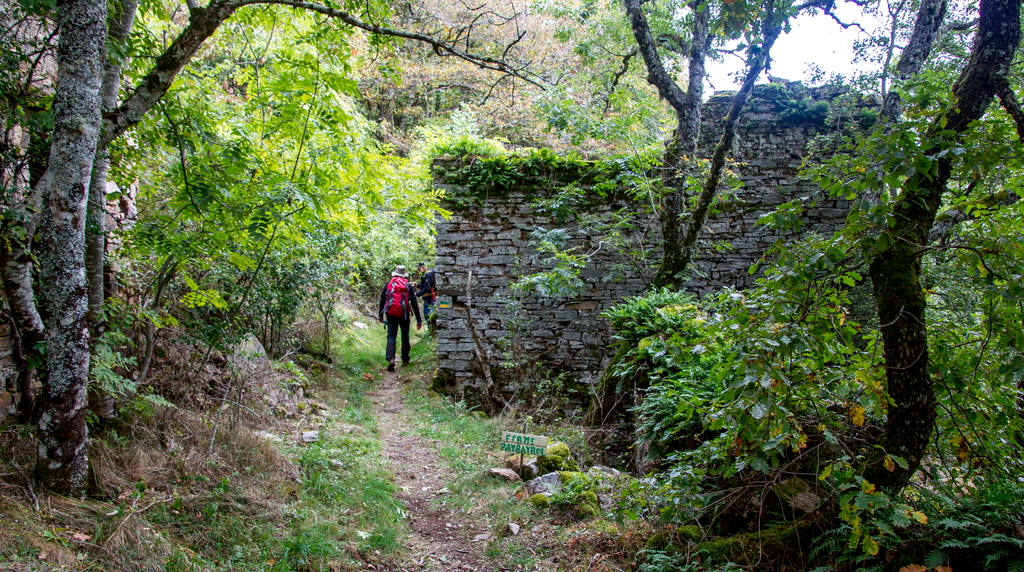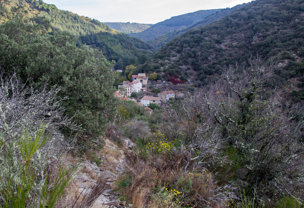 Cheminement dans de belles forêts de châtaigniers (ruines du hameau de Peyreyrol, puis celles de Sabarthès), avec passage sur le ruisseau de La Conque et pause repas.