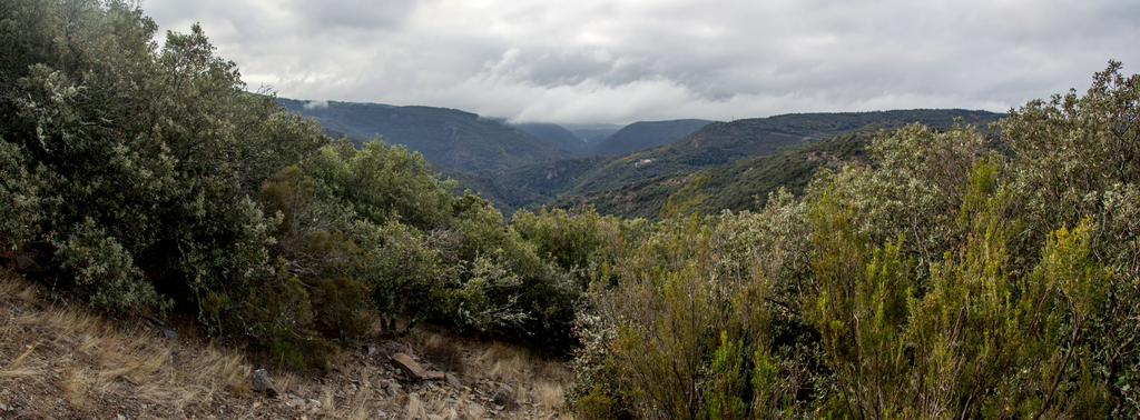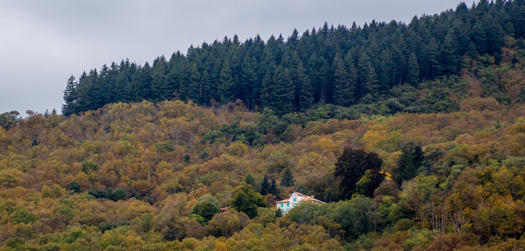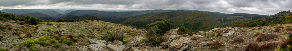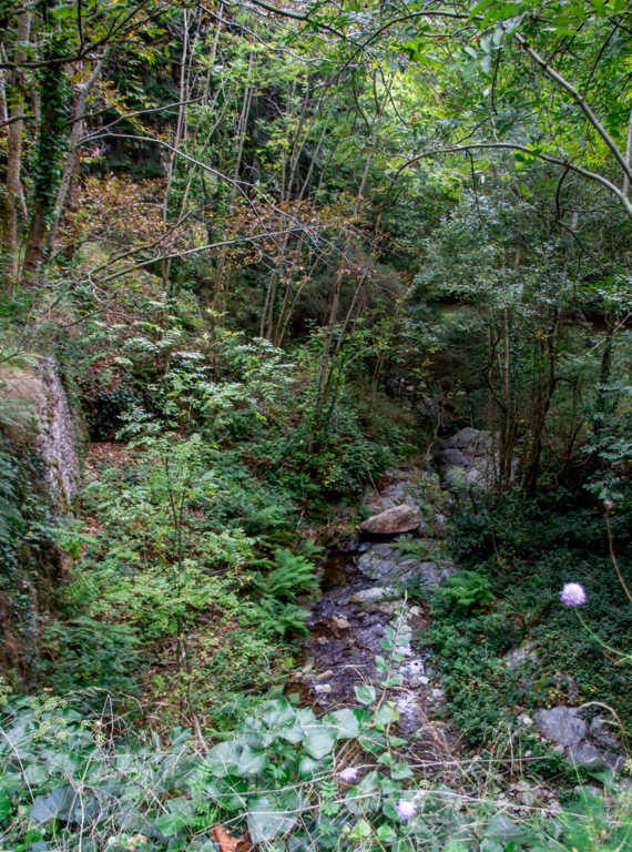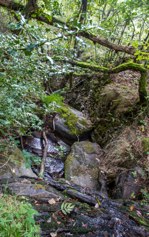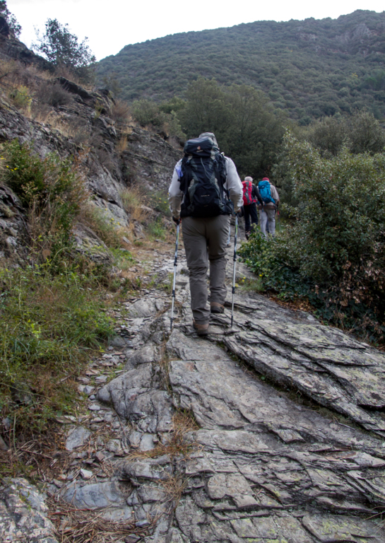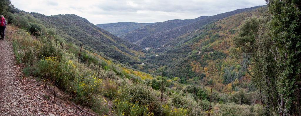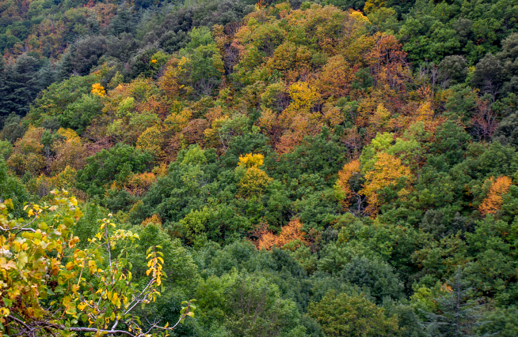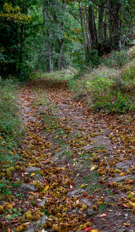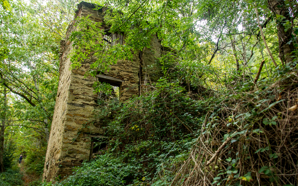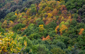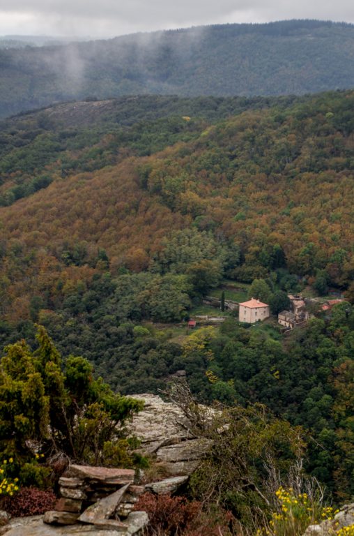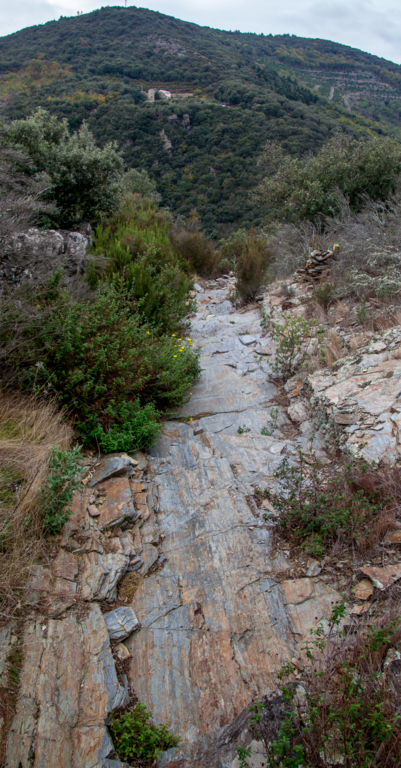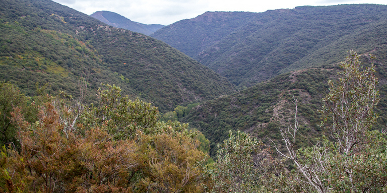 Cheminement dans de belles forêts de châtaigniers (ruines du hameau de Peyreyrol, puis celles de Sabarthès), avec passage sur le ruisseau de La Conque et pause repas.