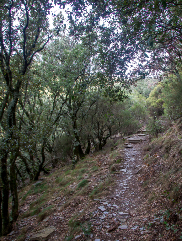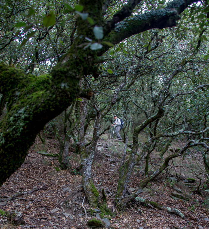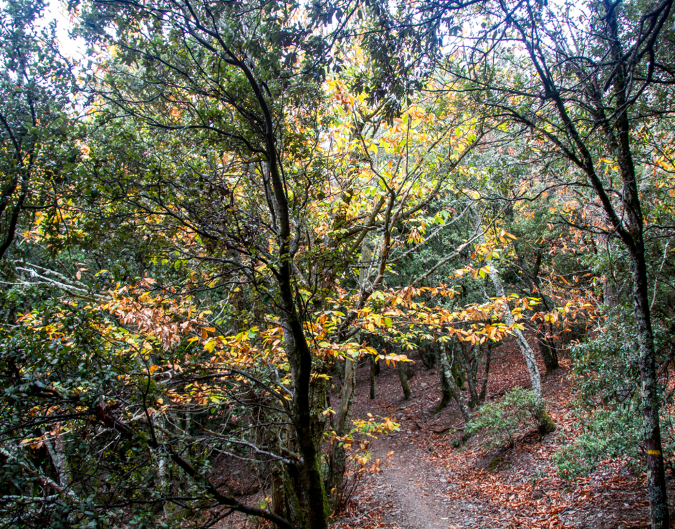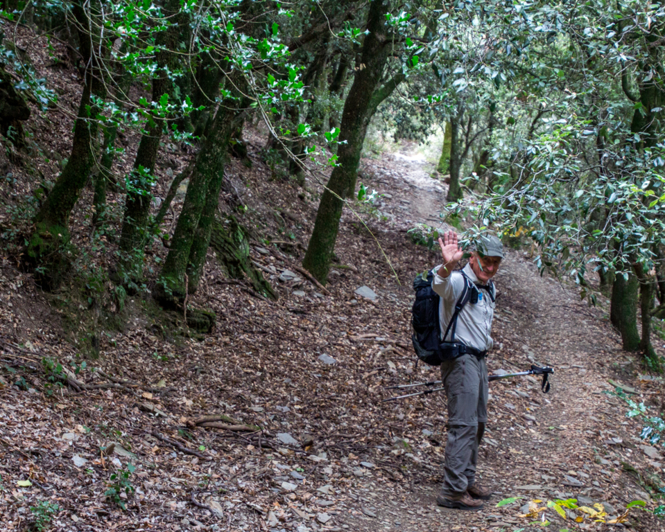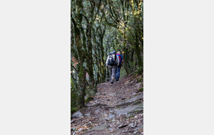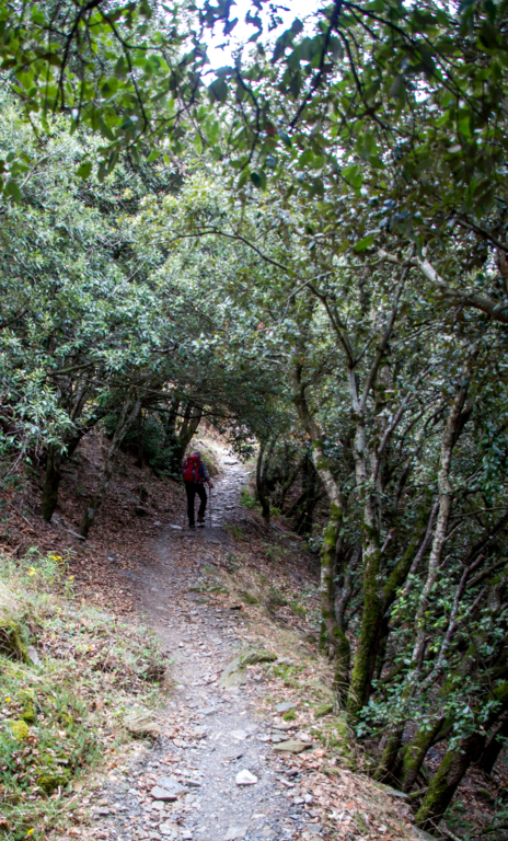 Montée à flanc de montagne de 5 km dans la forêt de chênes verts.