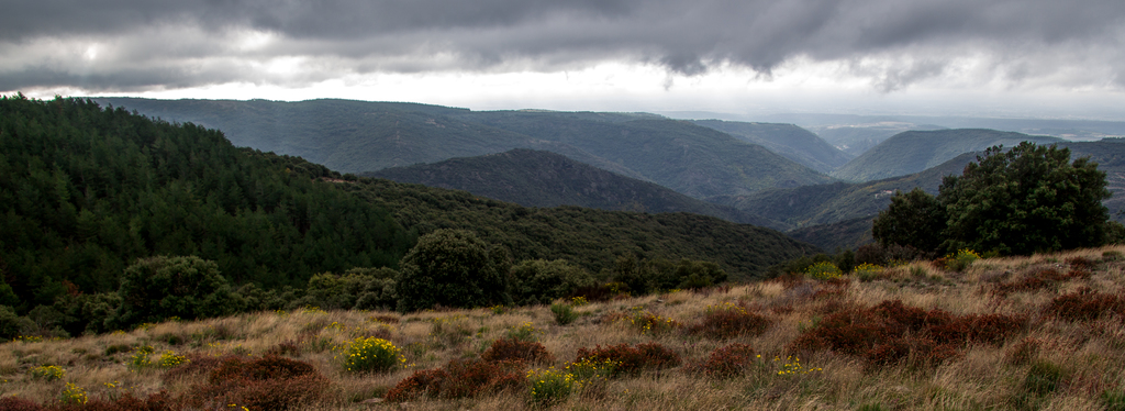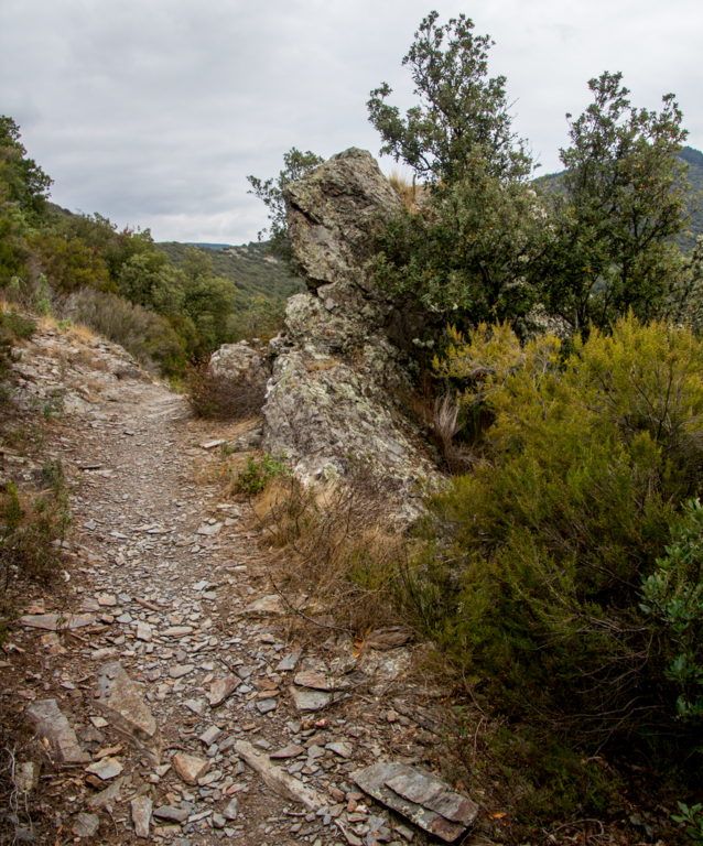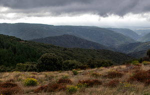 Traversée sur les hauts de Roquefère pour une boucle par le roc d'En Galière ( 572 m) avant le retour au village.