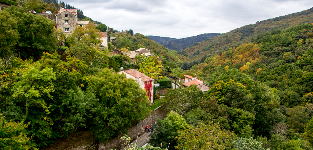 Traversée du ruisseau du Sambrès et du village de La Bastide-Esparbairenque.