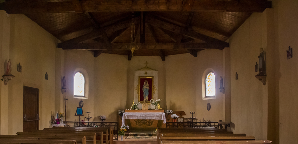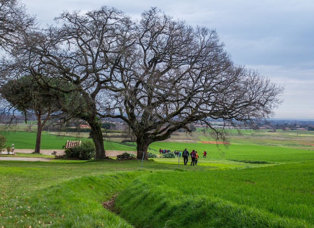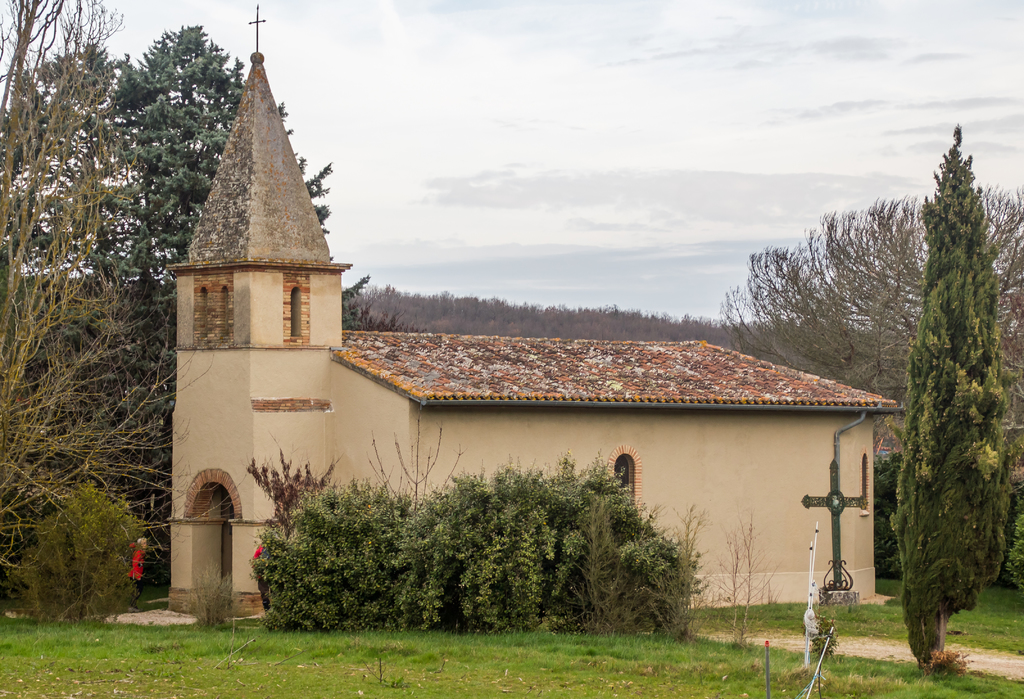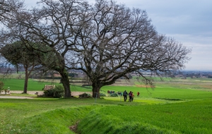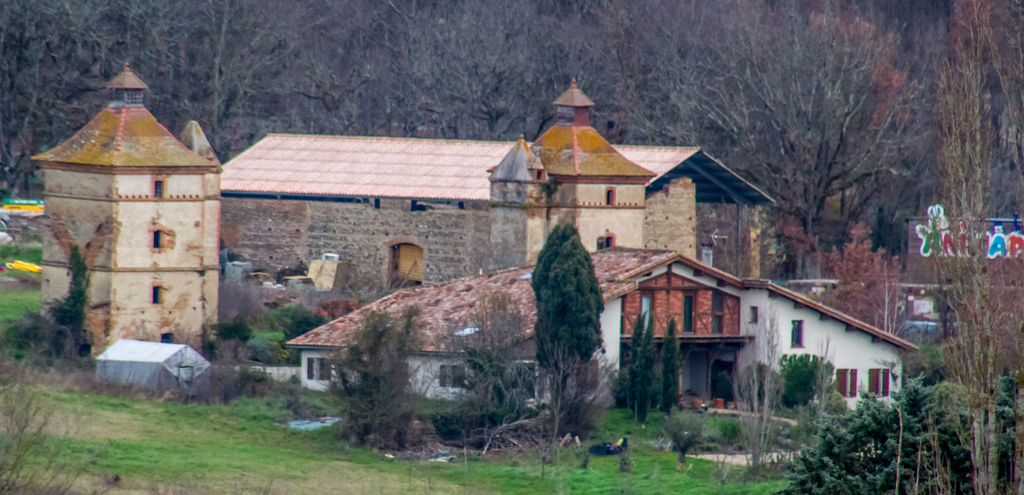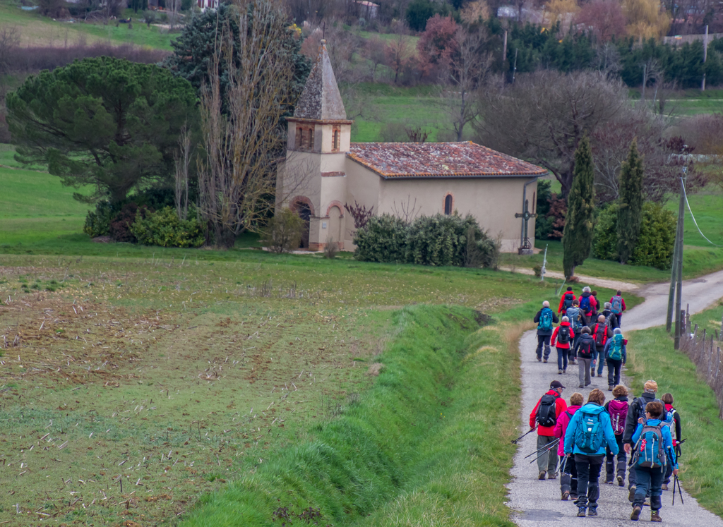Descente sur la Chapelle Notre Dame des Aubets, retraversée du ruisseau de La Goutoule, passage aux abords du parc d'attraction Animaparc avec les pigeonniers du Pouchot.