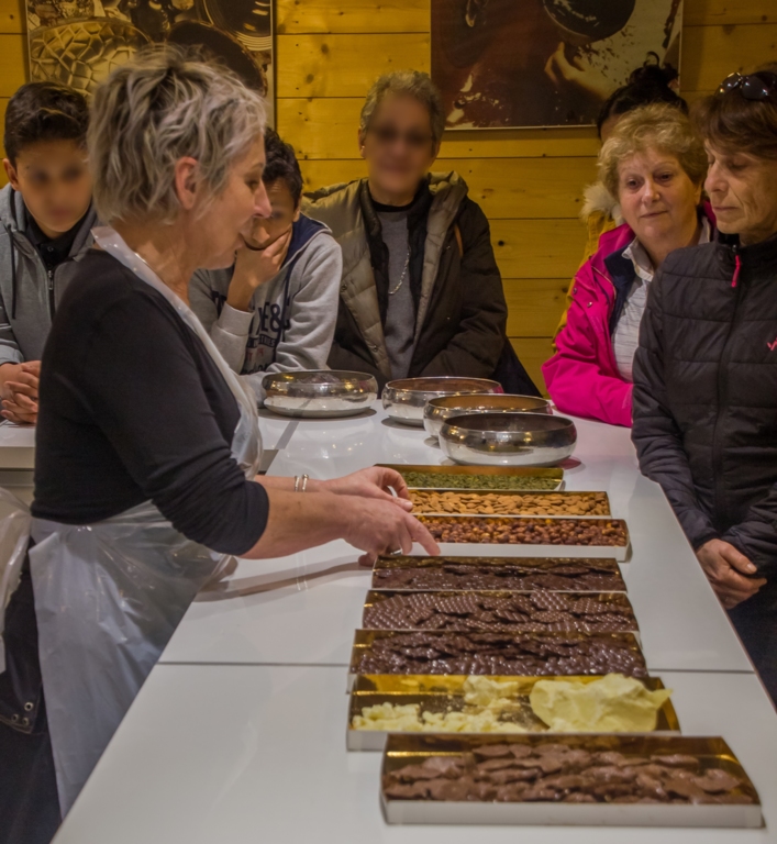 Transfert en voiture vers Larra pour passer un bon moment de l'après-midi dans la chocolaterie artisanale et familiale. Historique de l'établissement, démonstration de fabrication d'un bonbon chocolat à la liqueur, dégustations, achats.