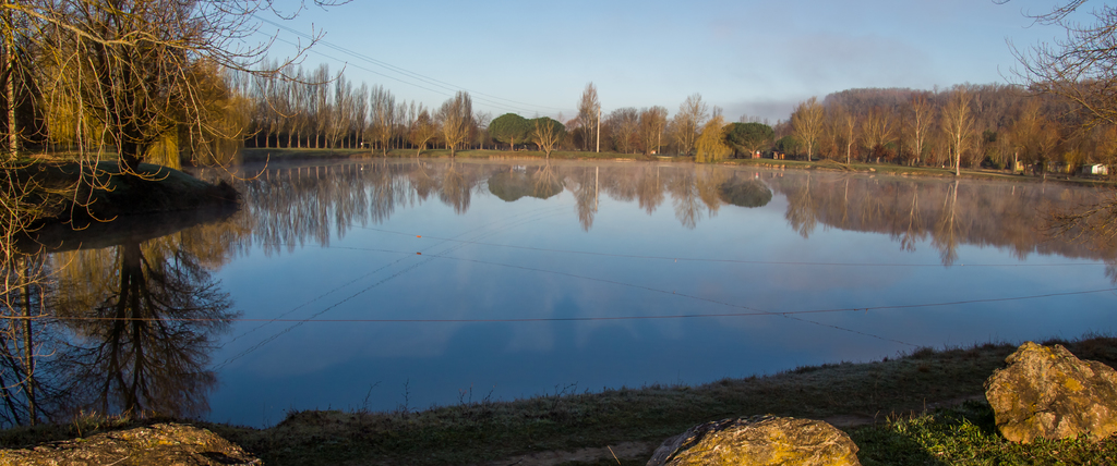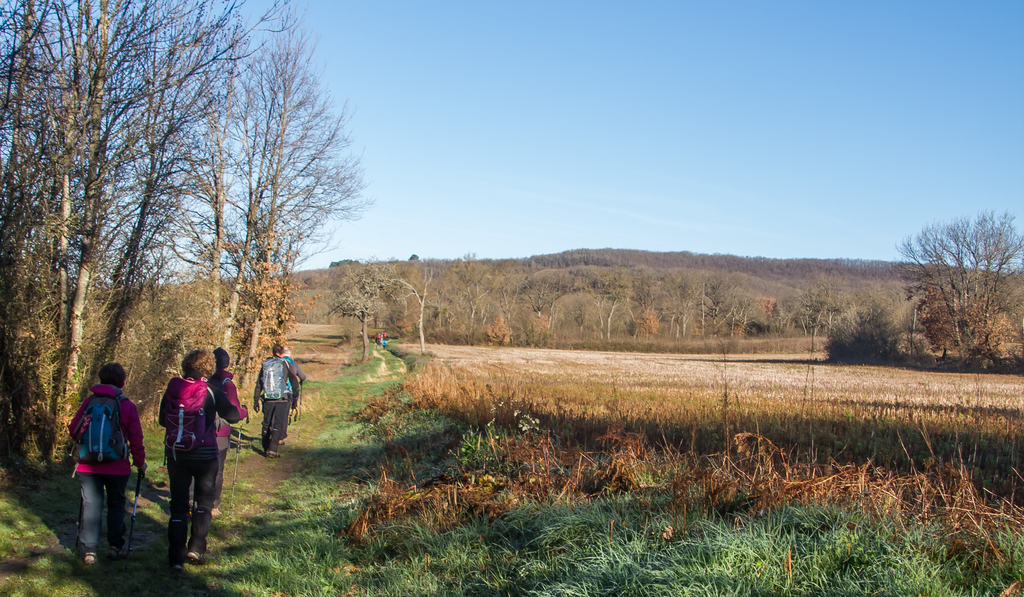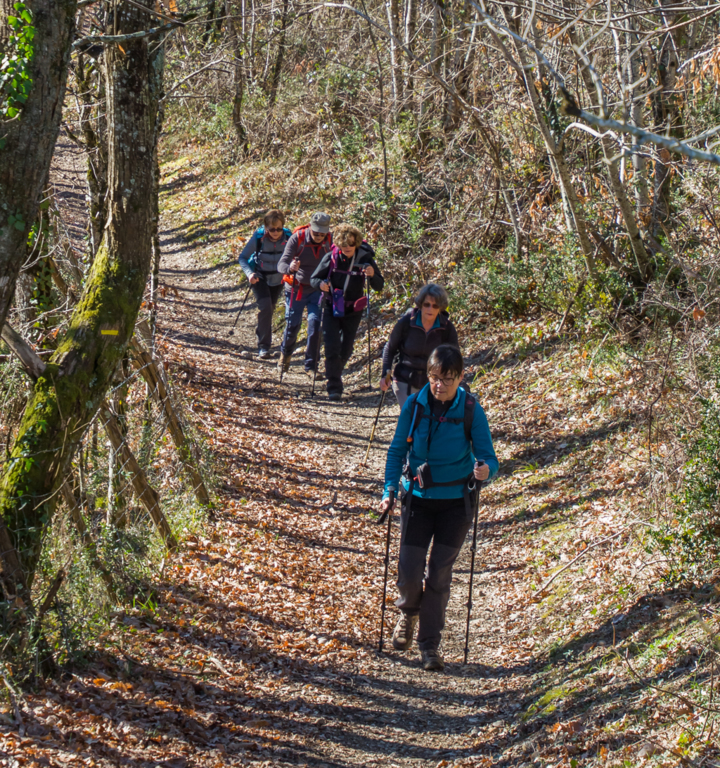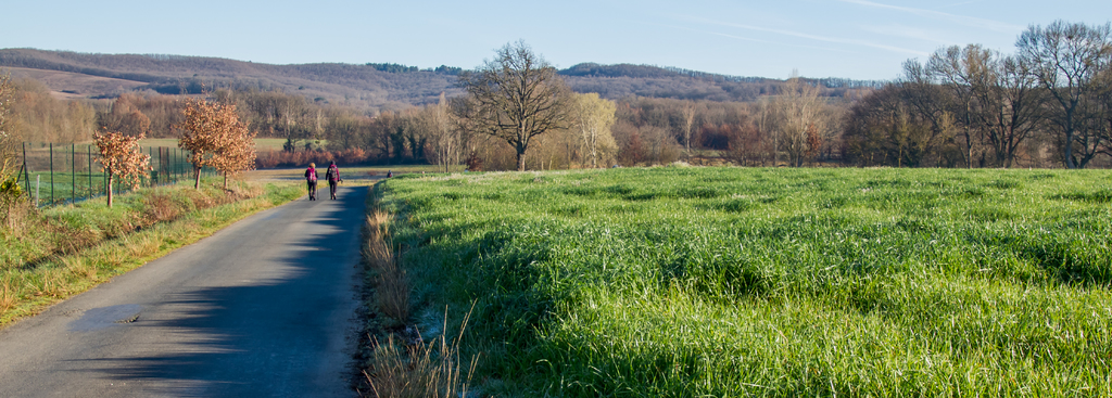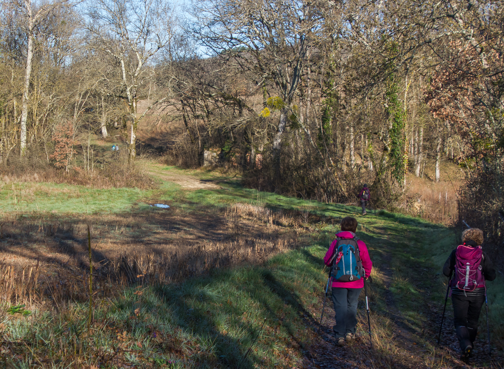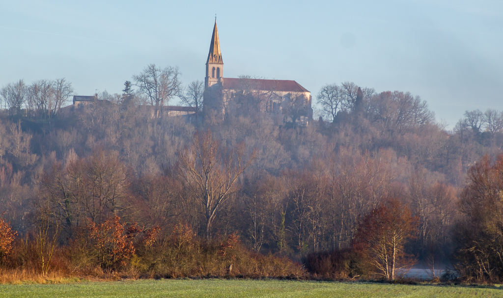 Départ parking du village de Damiatte. Passage à niveau et chemin à gauche pour passer au bas de l'église St Martin de Damiatte sortie de la brume avant d'accéder au plan d'eau St Charles. Montée vers Le Buguet-Haut puis Le Bourias. Poursuite de la montée vers un plateau avant En Gontier avec belle vue sur les Pyrénées ariègeoises. Bonne montée avec petit retour en arrière pour contourner L'Infernou.