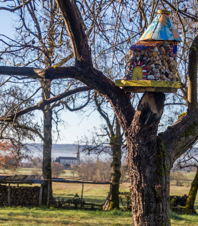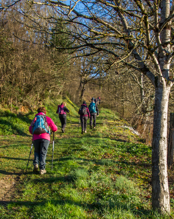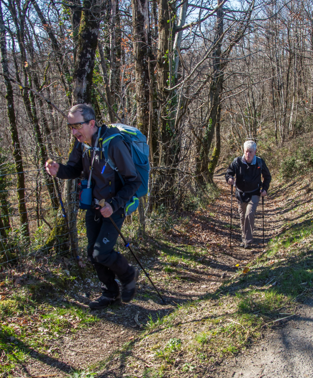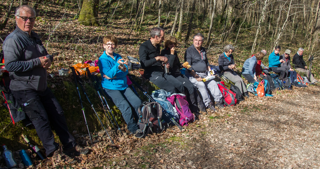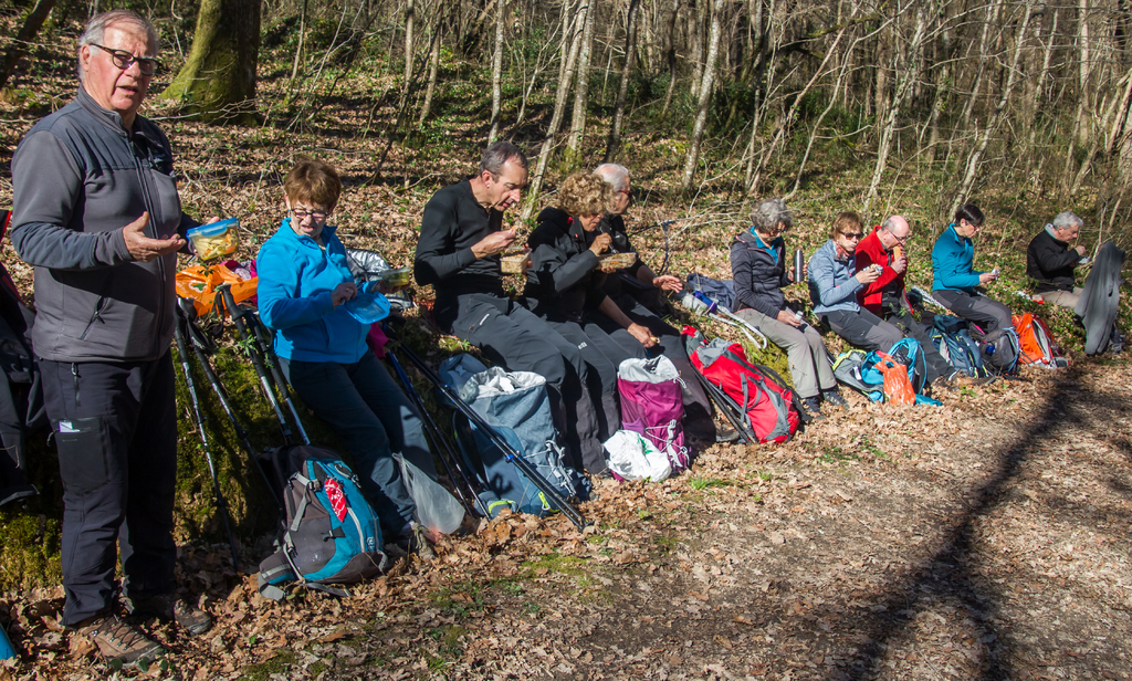 Pause en-cas au soleil après bifurcation à gauche avant La Bouriasse. Nouvelle belle montée en direction du lieu-dit Bel Air (Belle bâtisse et premiers beaux signes du printemps).
