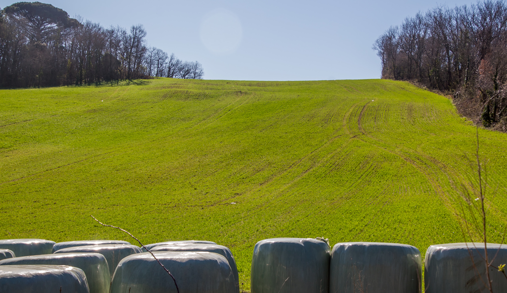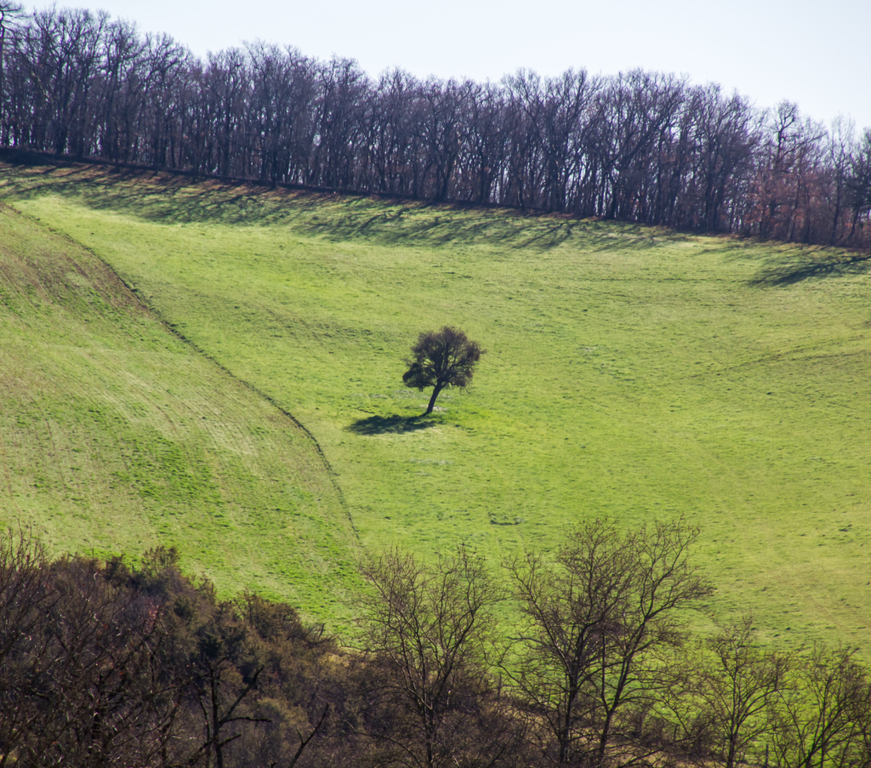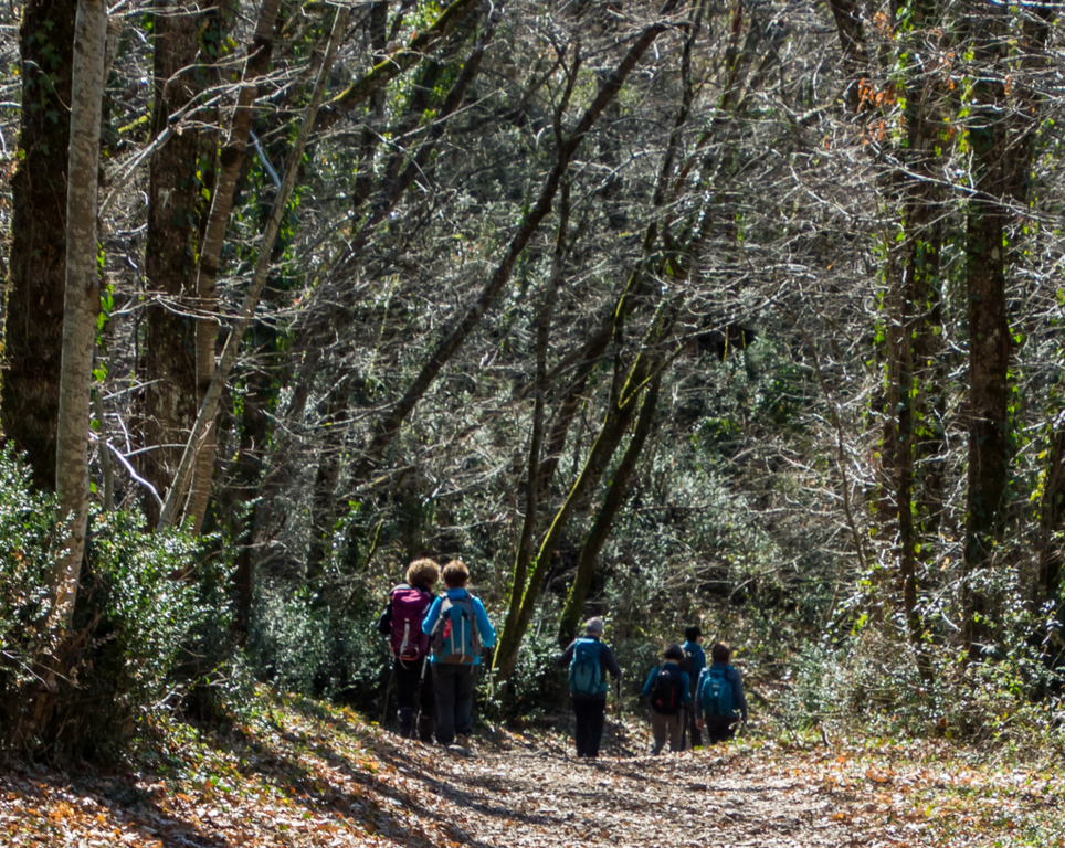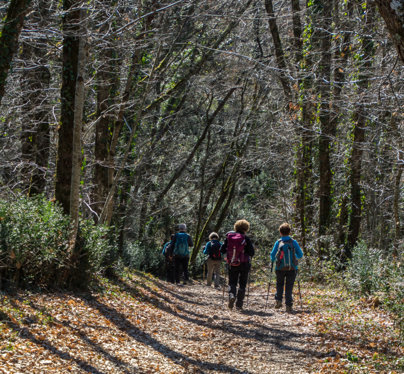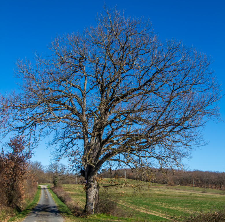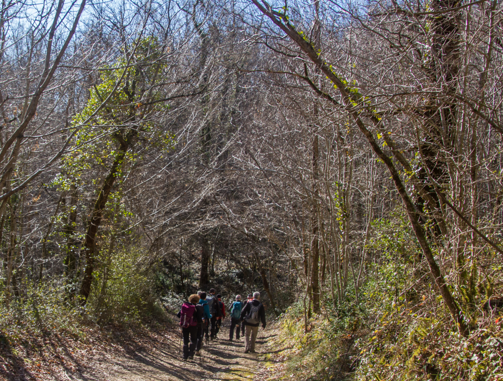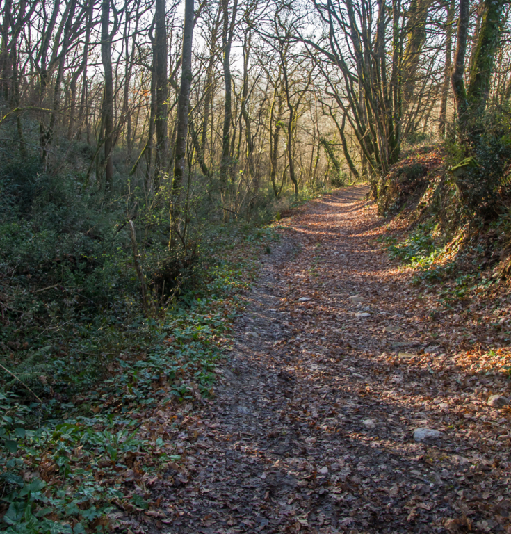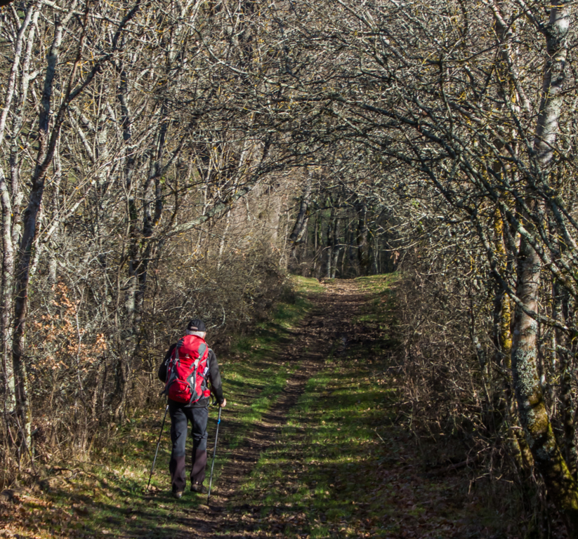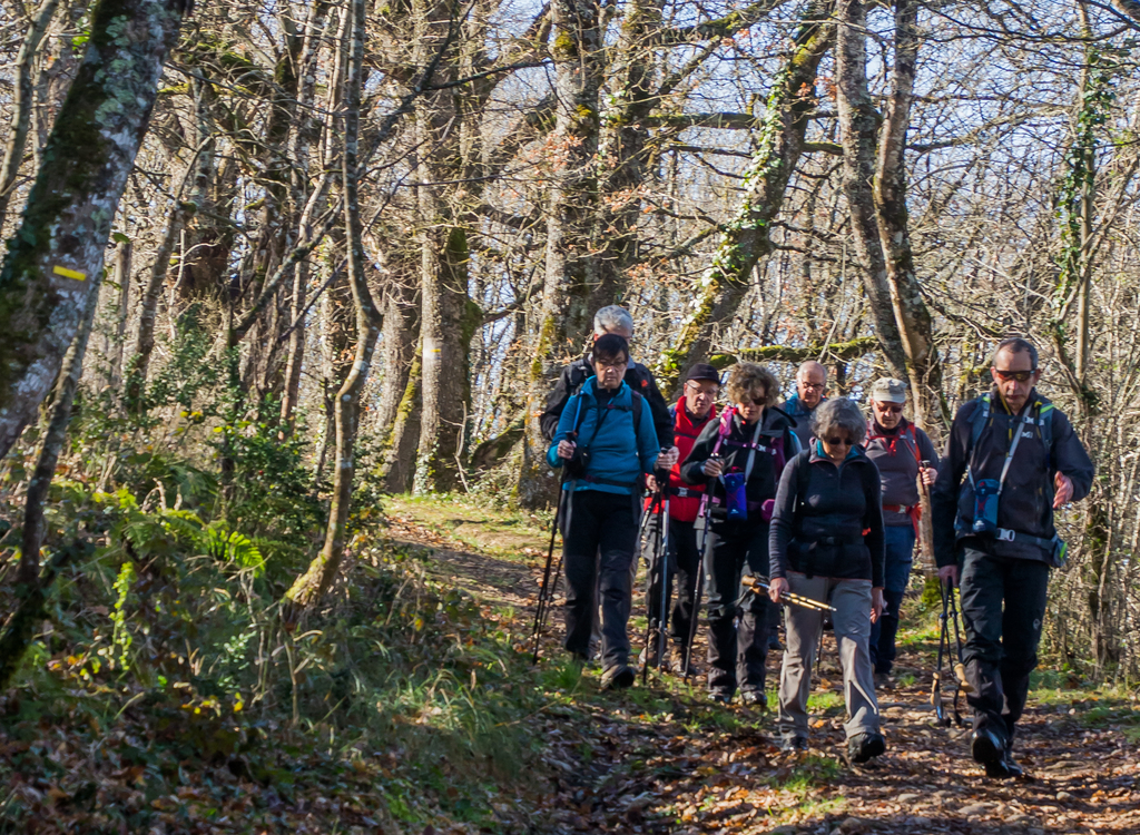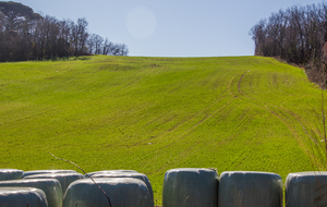 Descente en bordure du Bois de La Capelle et dans le Bois de La Brunié. Belle demeure et beau pigeonnier à La Brunié. Traversée de la D84 puis passage du ruisseau de Guinet direction En Auriol. Passage au milieu de champs de cultures céréalières avec leur vert tendre printanier avant la pause repas dans le bois En Rel. Direction ensuite Le Rious, Pendarel, La Maison Neuve, Le Genèvrier et la plaine de Vialas (nouvelle vue sur les Pyrénées) avant de pénétrer dans le bois de La Masiè.