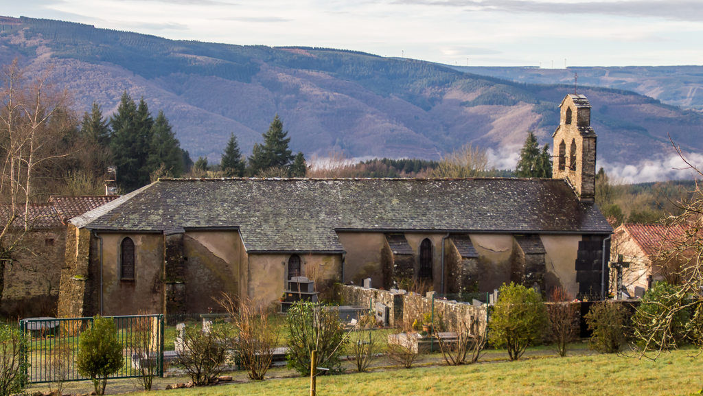 Départ de la rue principale, proche de la Mairie du village Le Vintrou (578 m). Passage devant l'église St Mathieu et montée par "Lo Camin des Saints-Peyres aux Gorges de L'Arn".