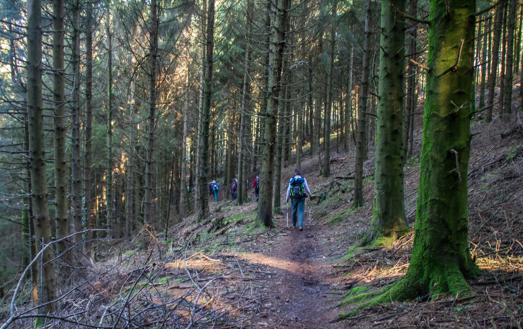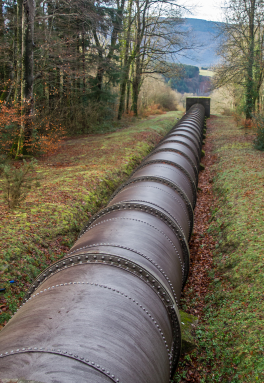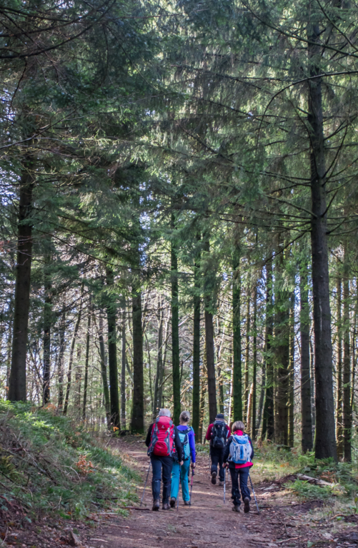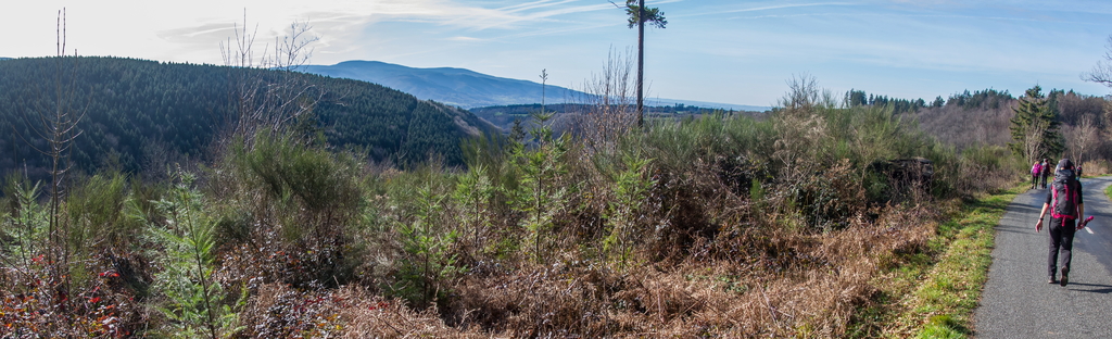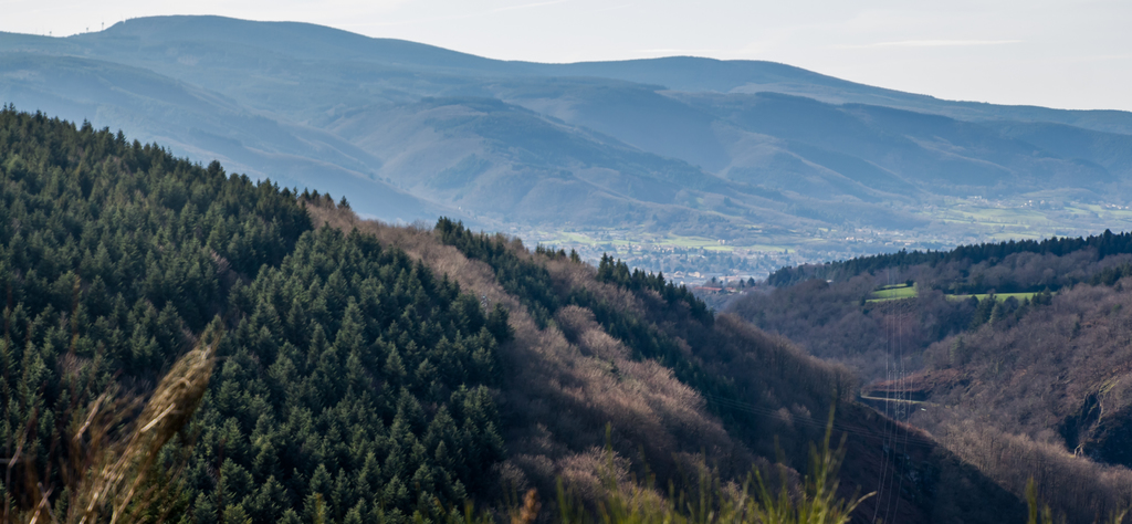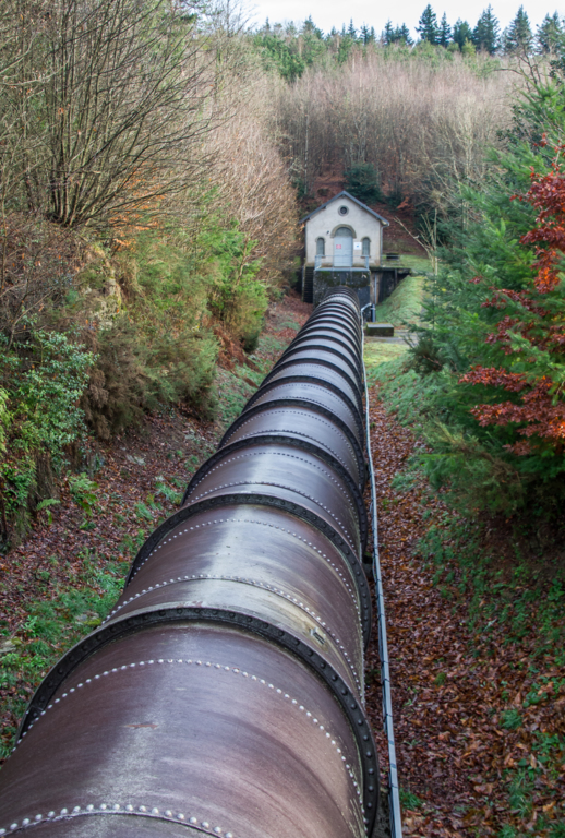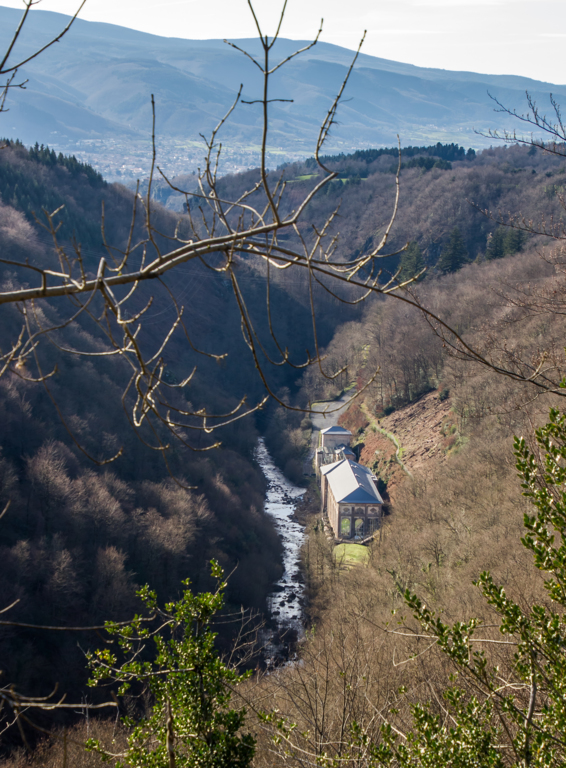 Fin de la randonnée en dominant la centrale électrique du Vintrou (alimentée par la conduite forcée vue au départ) et la plaine de Mazamet avant de cheminer dans le Bois de Moussu.