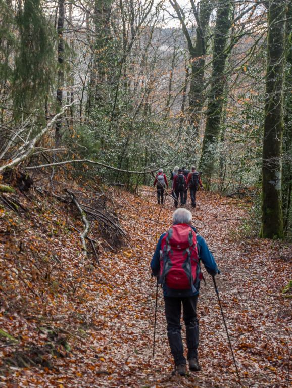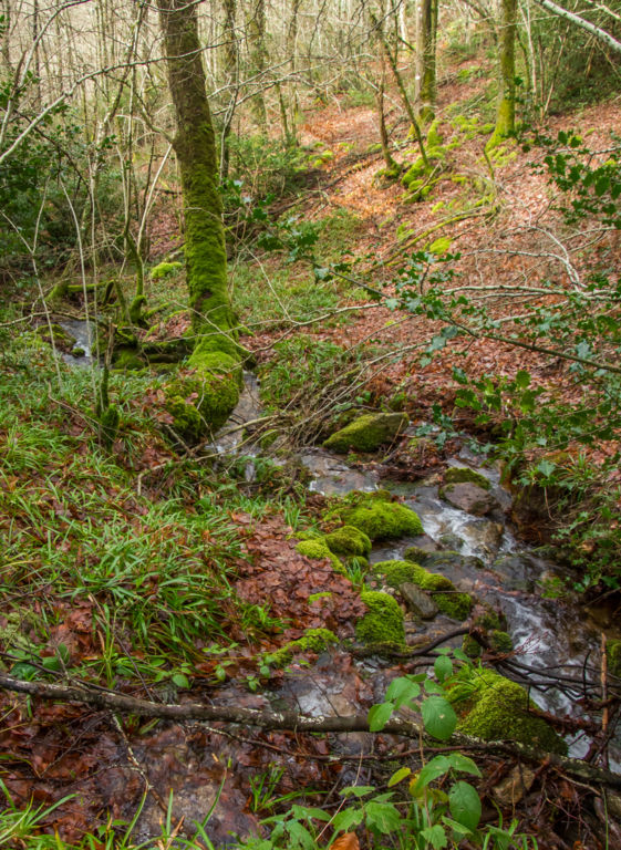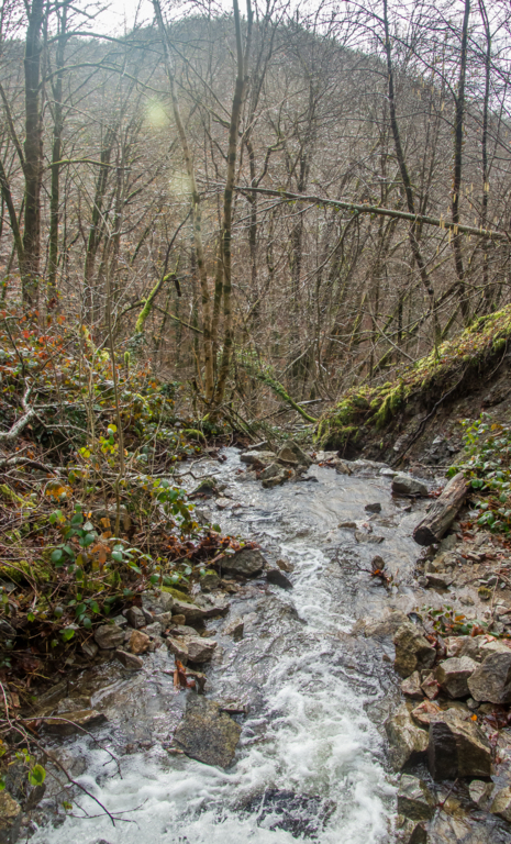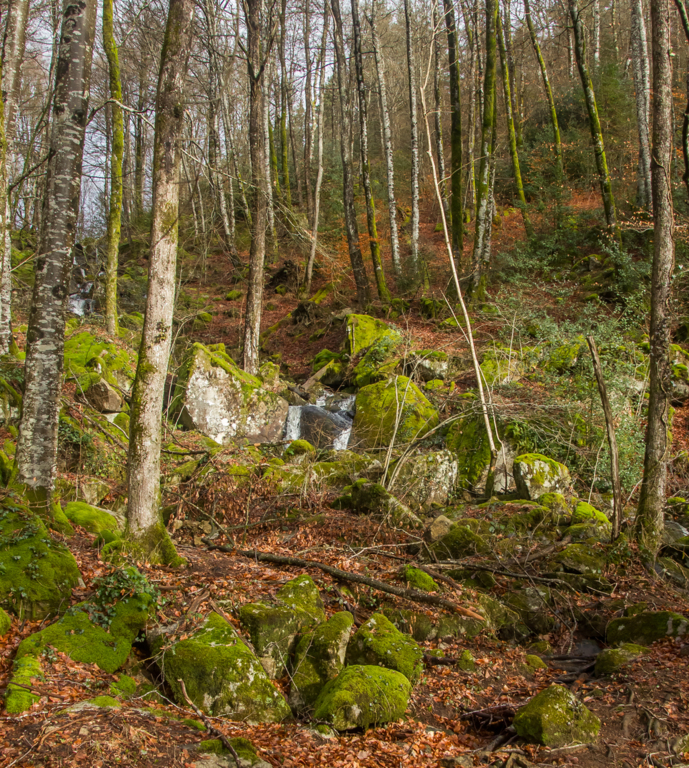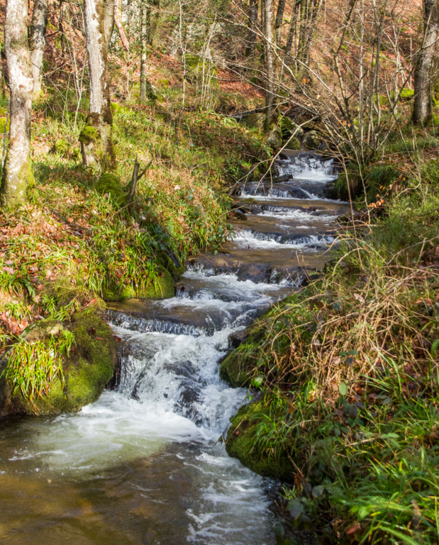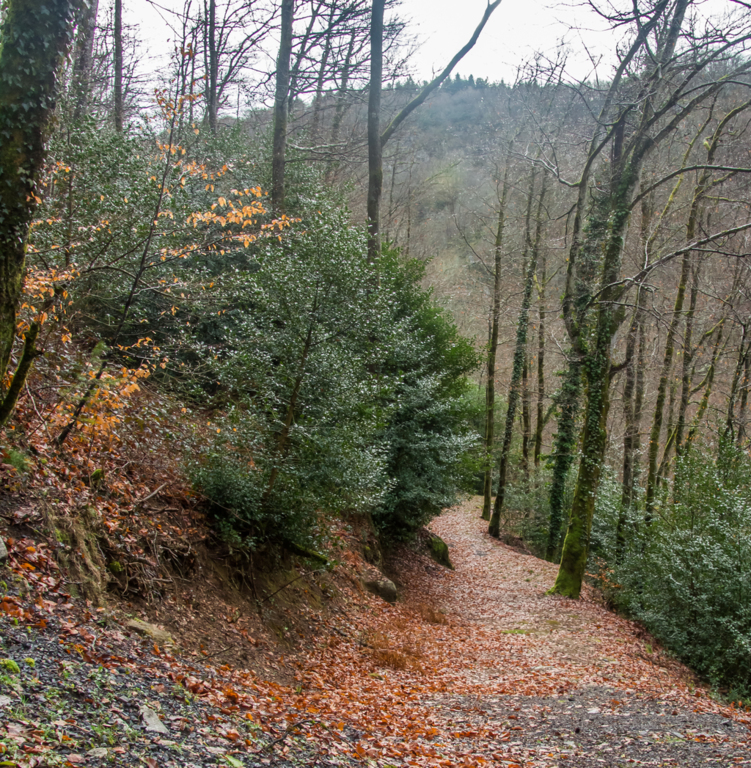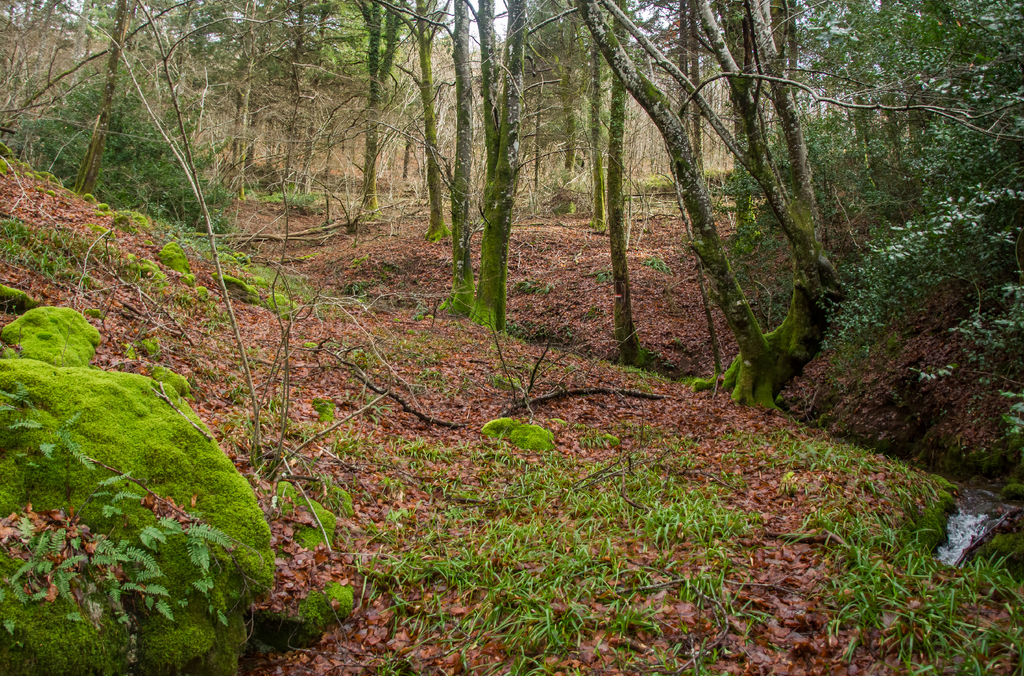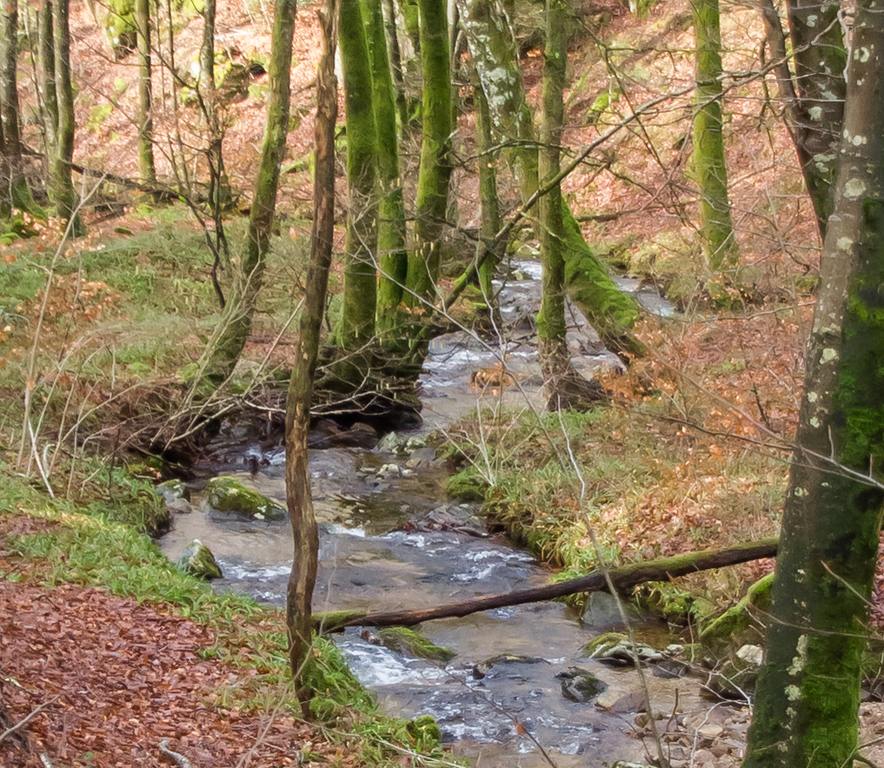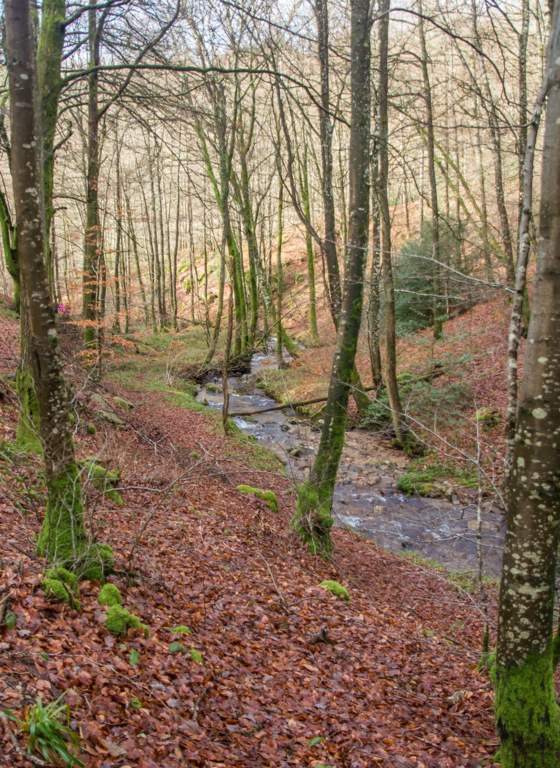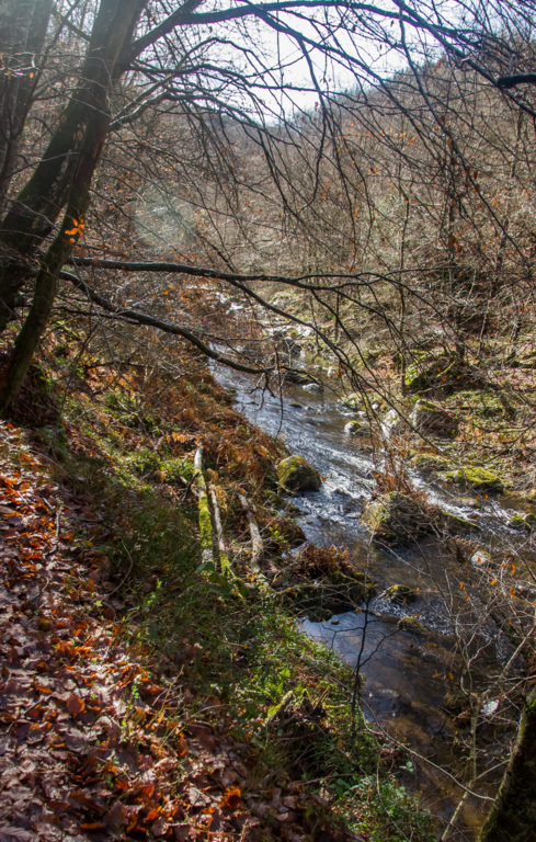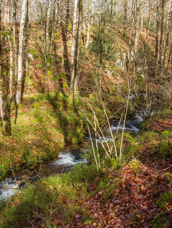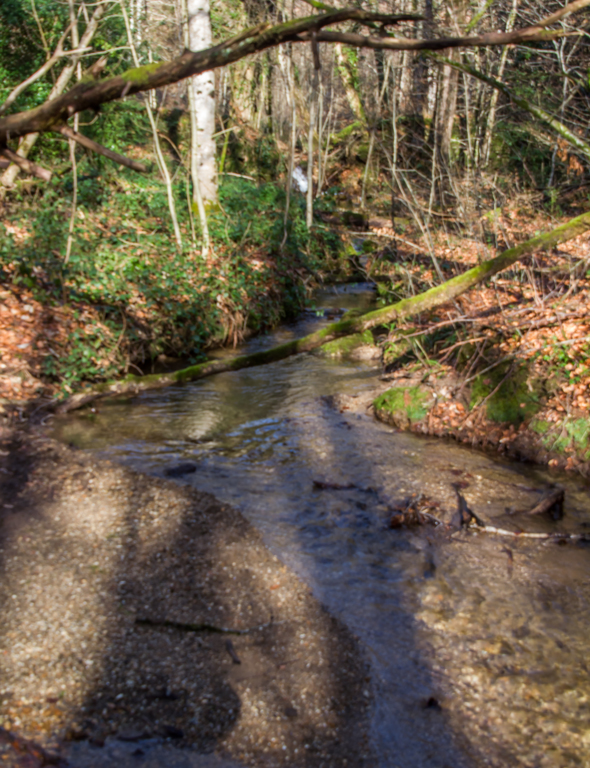 Cheminement sur des sentiers de forêt de feuillus et épisodiquement le long de petits affluents de l'Arn. Retour au bord de l'Arn dans le bois "lou Bosc Crémat".