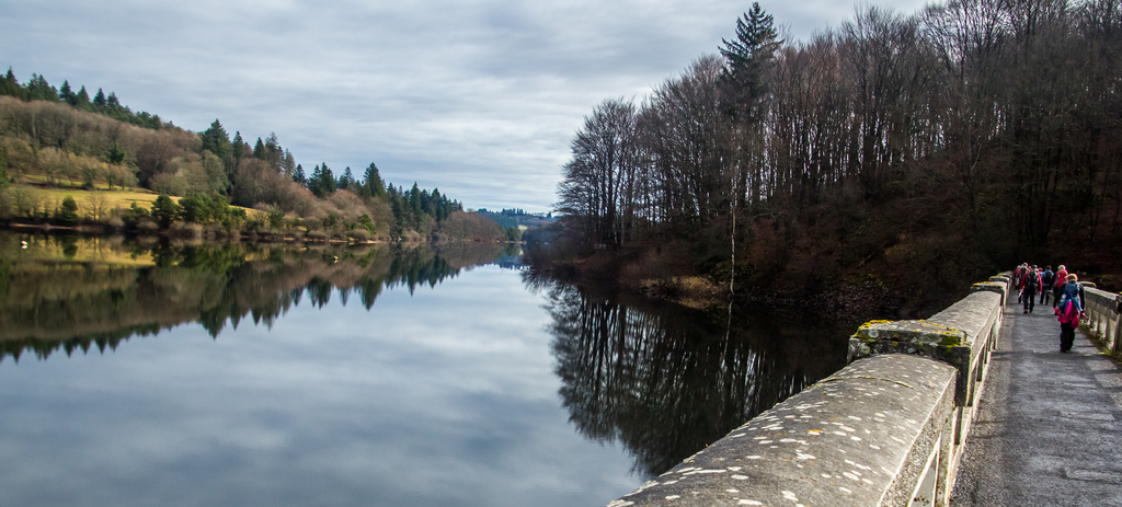 Passage à proximité d'une source de captation des eaux, point de départ d'une conduite forcée. Traversée de belles forêts de résineux puis de feuillus avant de trouver l'Arn en contrebas du barrage des Saints-Peyres. Arrivée au barrage ((710 m) avec vue minime du très étendu lac des Saints-Peyres. Passage sur le barrage et direction la Grande Bouscasse par le GR de pays Haute Vallée du Thoré.