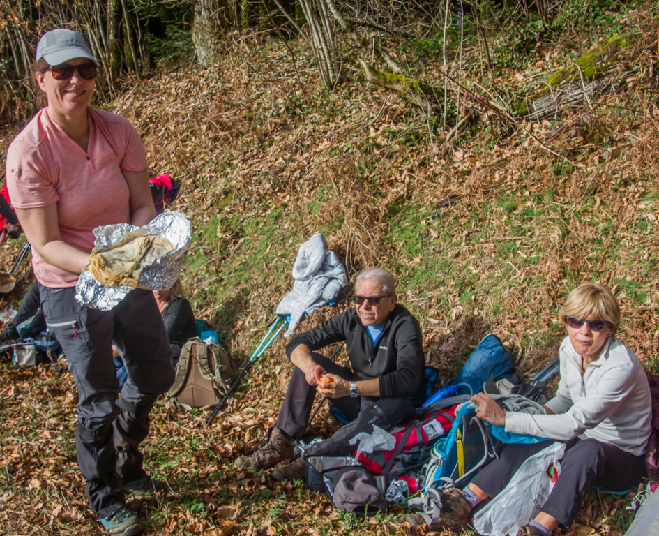 Pause repas au lieu-dit "lou Teroundel" au chaud soleil d'un talus sur les hauteurs du début des gorges de l'Arn.