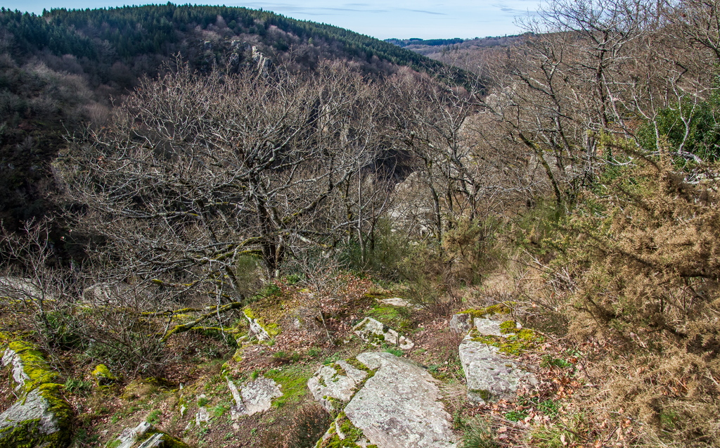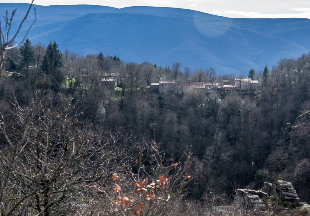 Direction ensuite "Terme dal Mouli" toujours sur les hauteurs de gorges avant de redescendre et passer le pont de l'Arn (524 m). Remontée en direction du hameau " Le Mariech" et point de vue sur le hameau "Le Banquet" et ses gorges taillées par l'Arn.