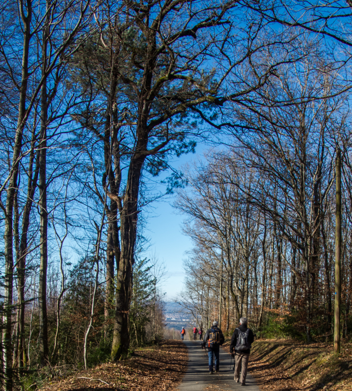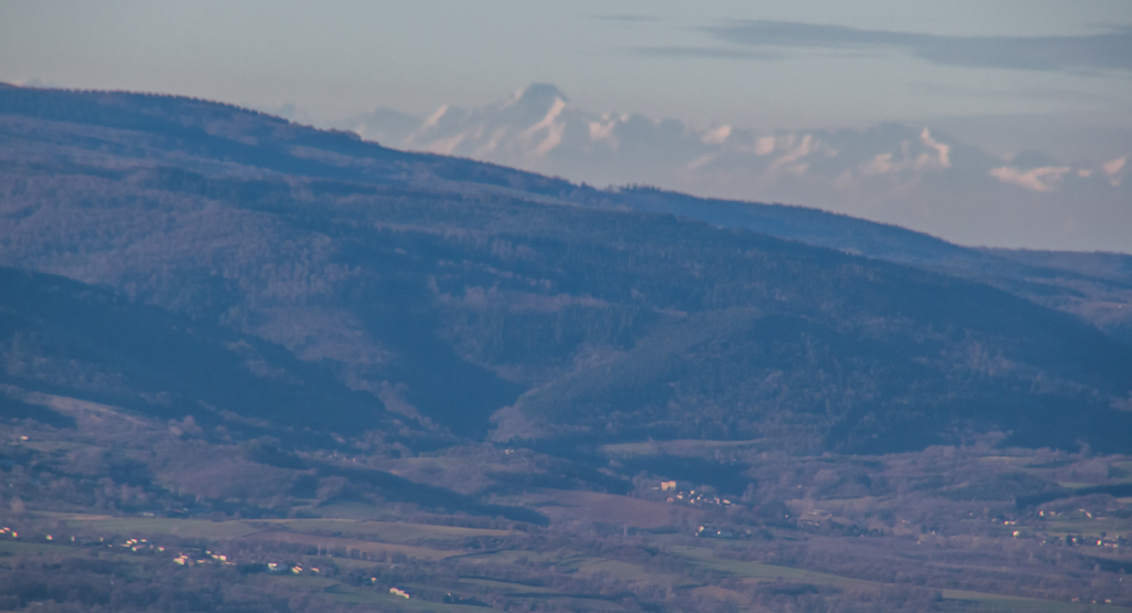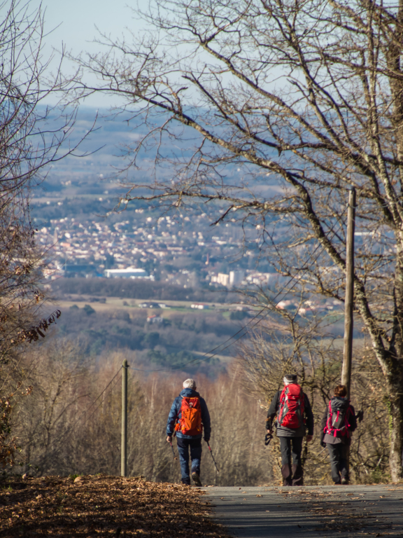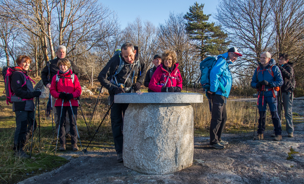 Montée à la Croix des carriers (662m) et un peu plus loin à la table d’orientation. Avec le temps clair superbe vue sur la plaine castraise et sur les Pyrénées.