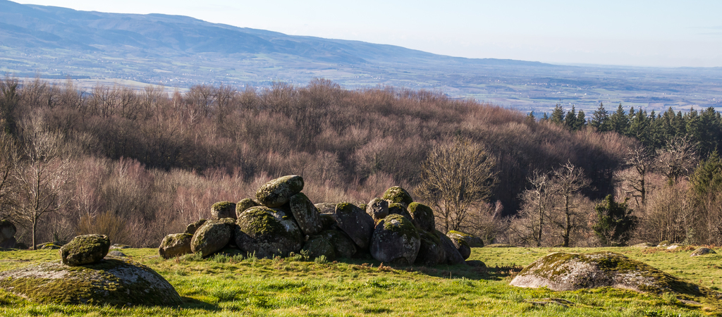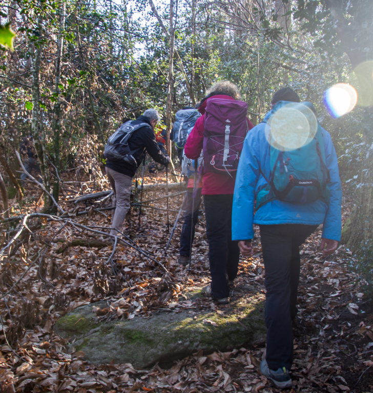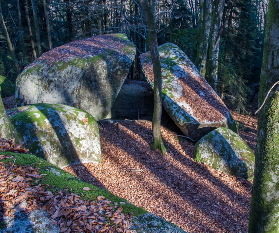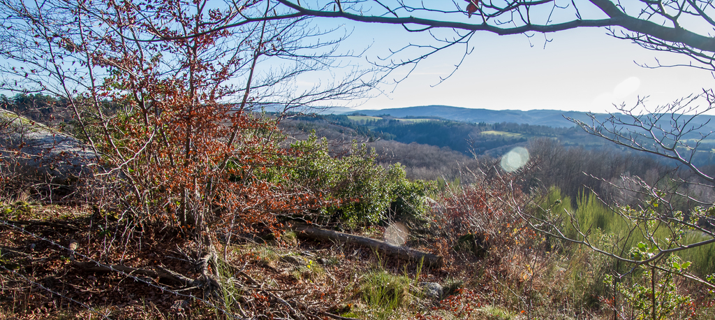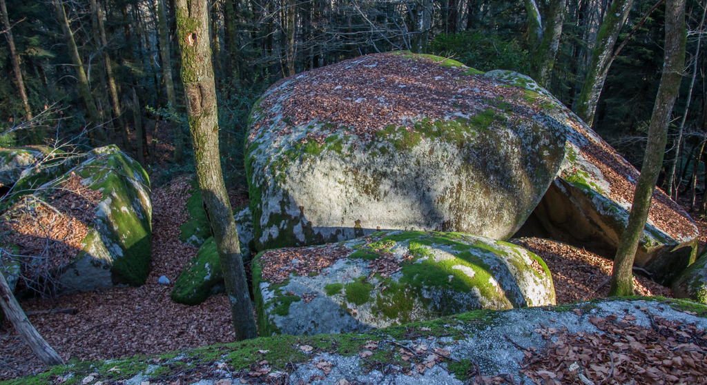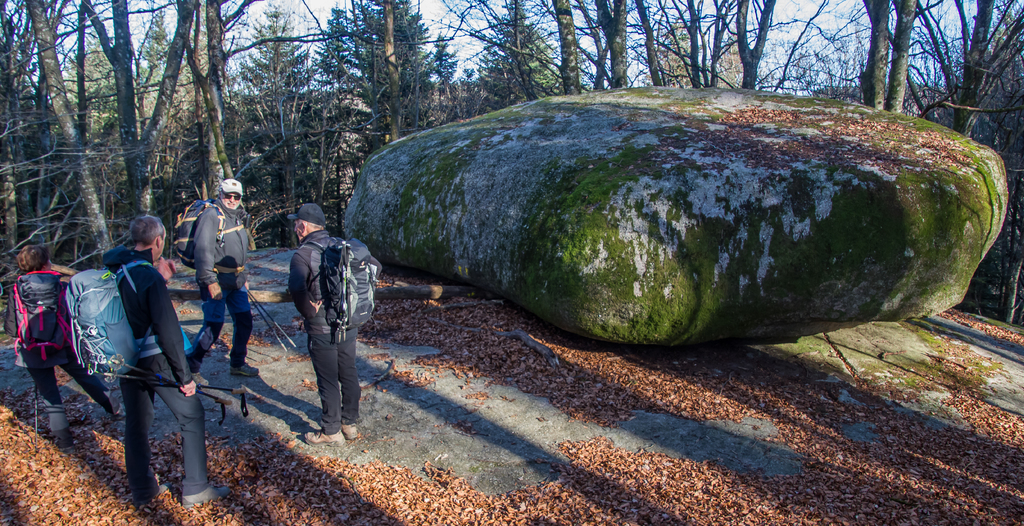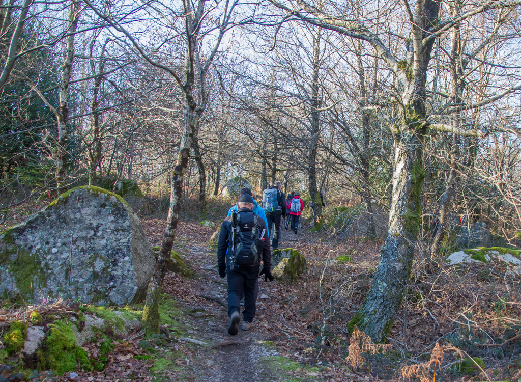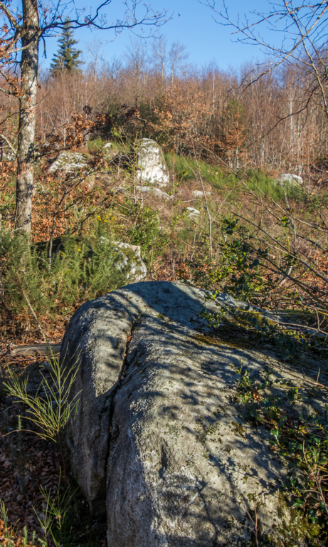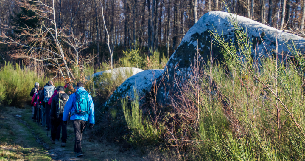 Cheminement sur des sentiers toujours bordés de blocs granitiques sculptés par l’érosion, traversant de belles hêtraies, châtaigneraies et autres forêts de résineux.