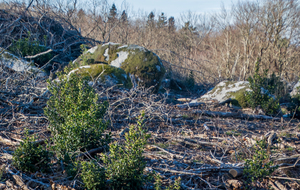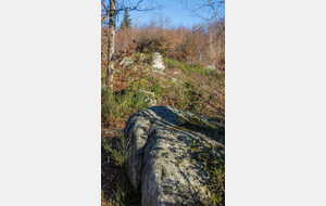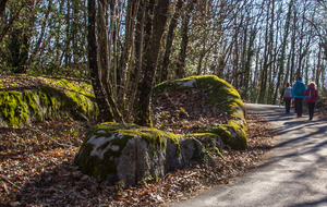 Traversée des hameaux Le Fau, Fombals et Le Rouquis au milieu de carrières de granite en exploitation, avant d’arriver au Chapeau de Napoléon et au Chaos de la Balme