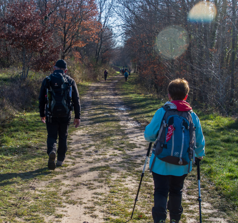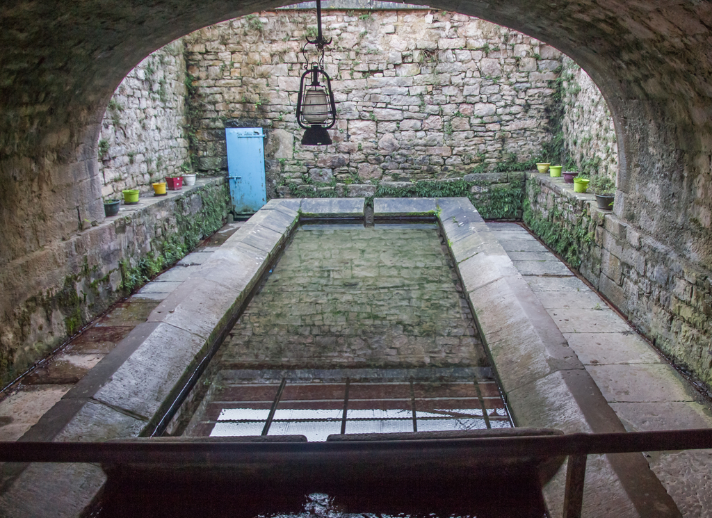 Départ à côté du cimetière de Bruniquel, en empruntant rapidement le circuit des rennes après être passé au lavoir souterrain et au pédiluve à sabots en forme de fer à cheval. .