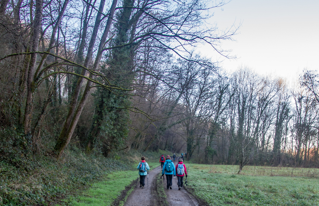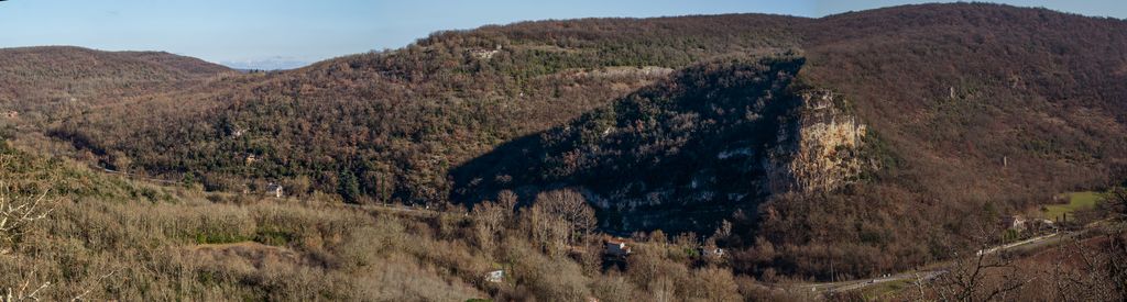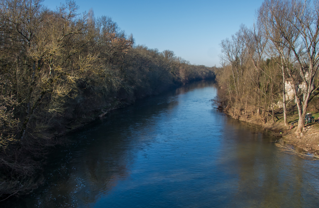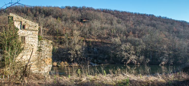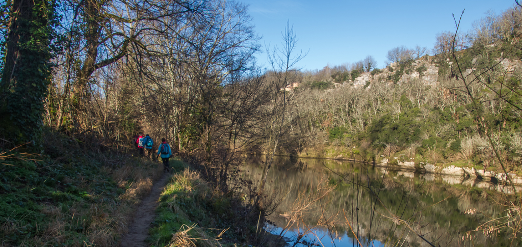 Cheminement sur des sentiers humides le long de l'Aveyron en passant aux abords des abris Magdaléniens au bas de la falaise du château de Bruniquel, puis le Moulins des Estournels, le Moulin des Bordes et le moulin de la société meunière de Montricoux.
