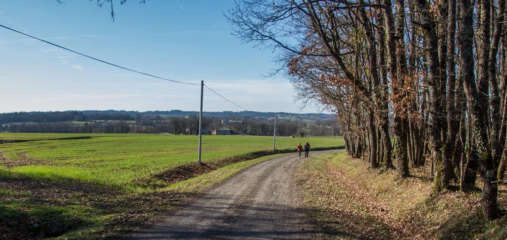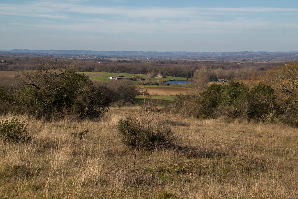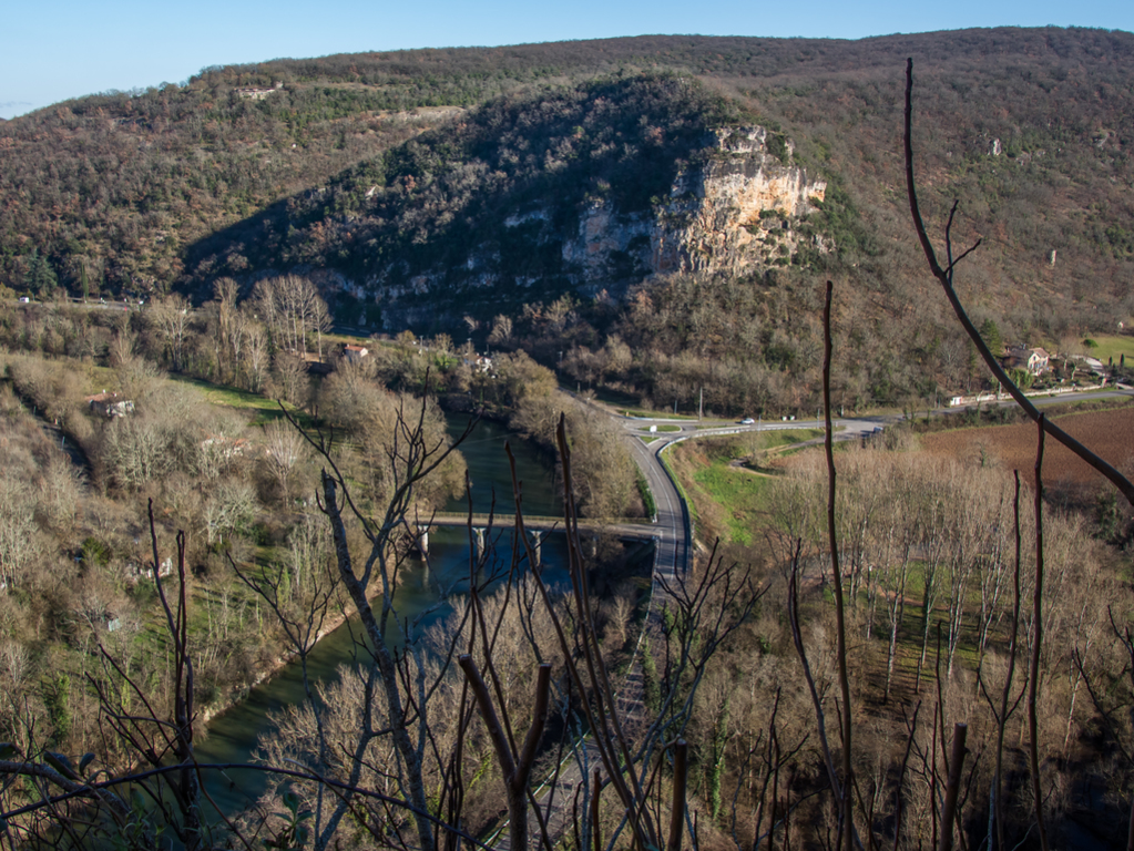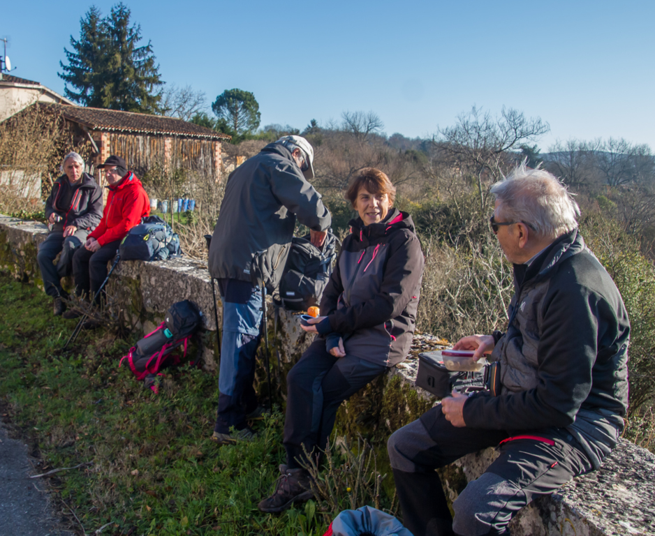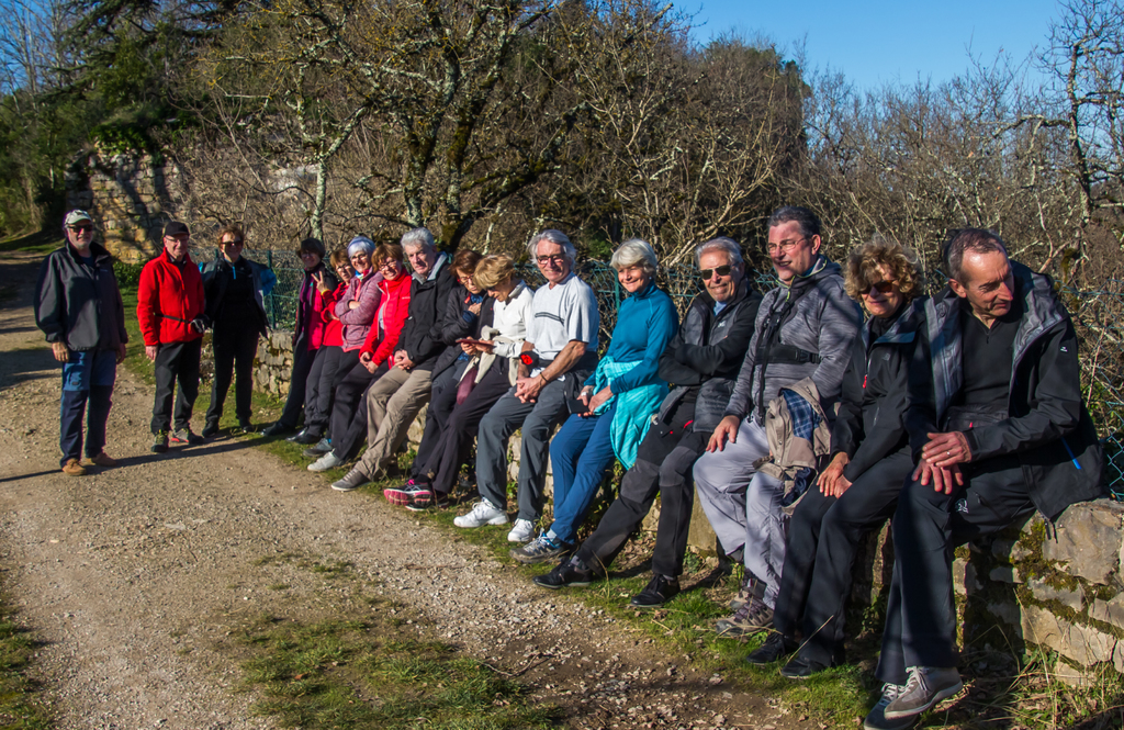 Direction le hameau Le Bugarel après avoir retraversé l'Aveyron. Montée par le GR de pays Midi-Quercy jusqu'au hameau de Ste Maffre (pause repas). Belle vue sur le plateau de Pech et ses dolmens.