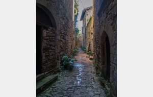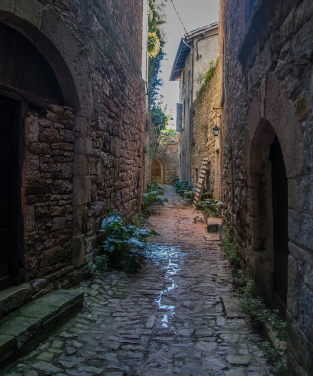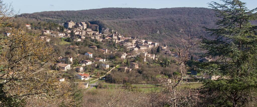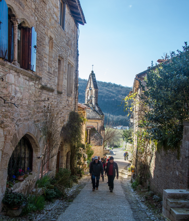 Descente sur Bruniquel, traversée du village en montant vers les châteaux de