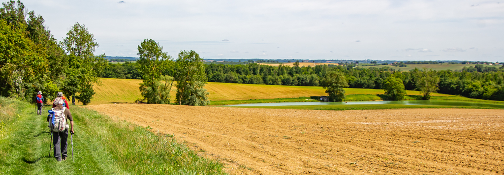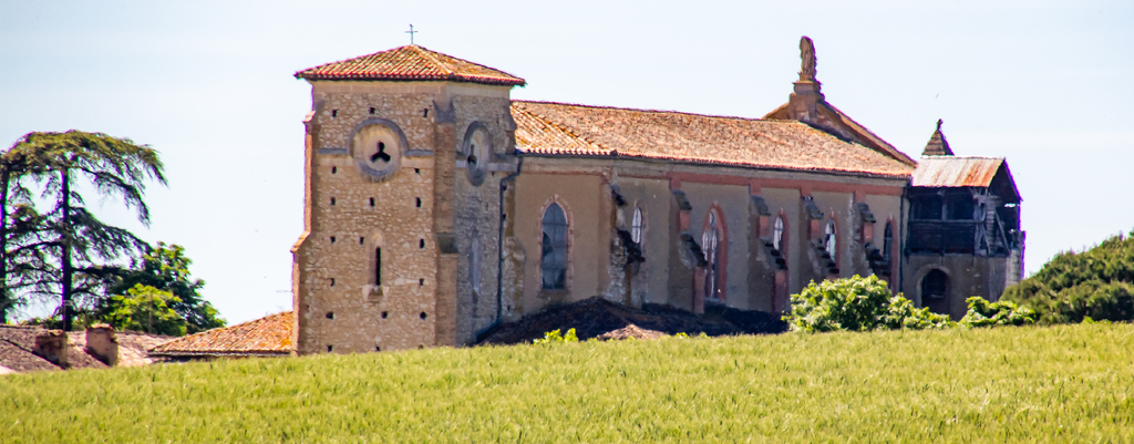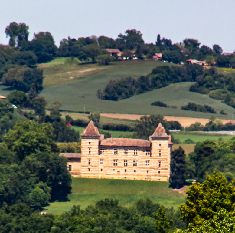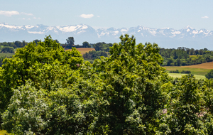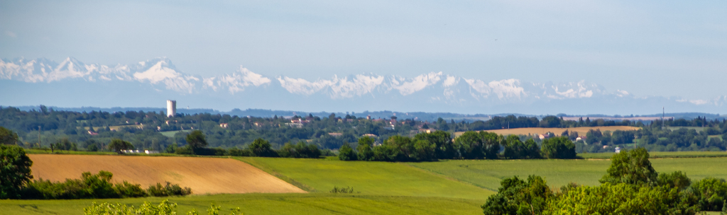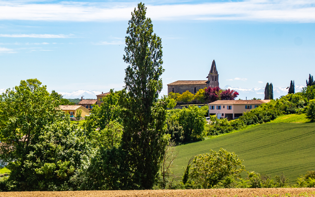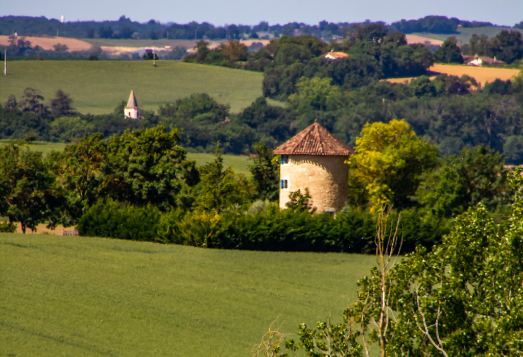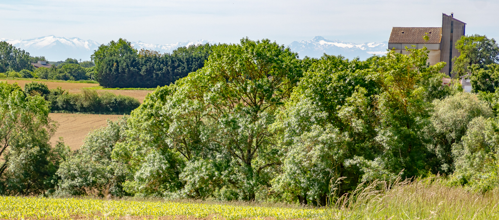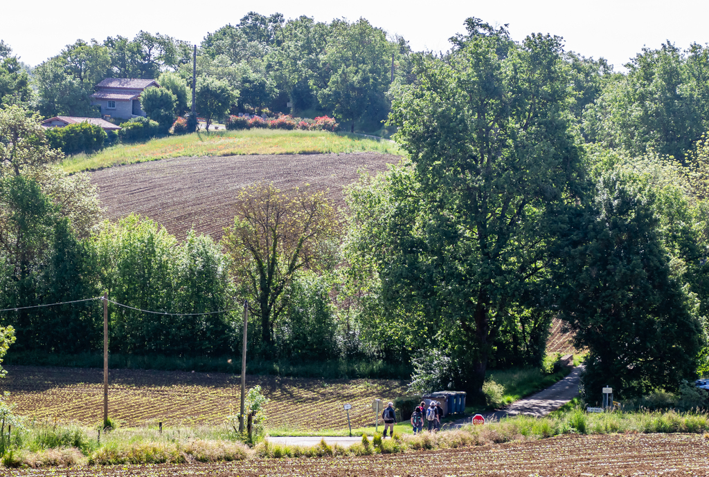 Direction La Hourcade par le chemin de Catonvielle à Cologne pour rejoindre la D 249 (superbe vue sur la chaine pyrénéenne) et St Germier : halte au beau moulin château. Chemin de St Germier à Cologne pour passer à Barré, Estingoy, Barberon, Les Téoules, rejoindre un chemin rural, retraverser le Sarrampion et arriver à Thoux pour la pause repas aux bords des fossés d'un ancien château disparu.