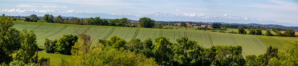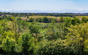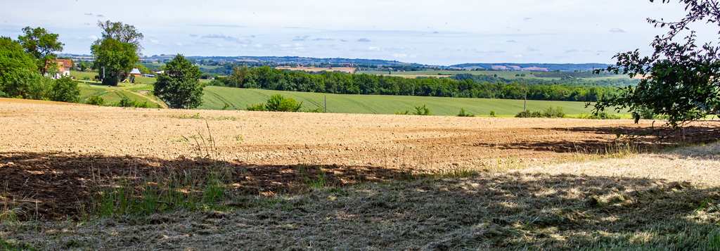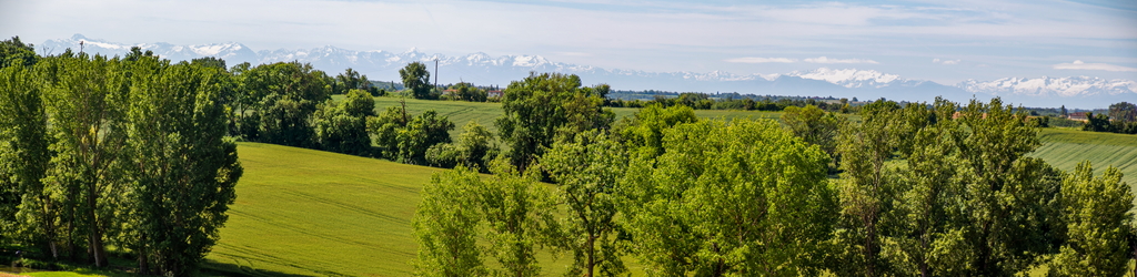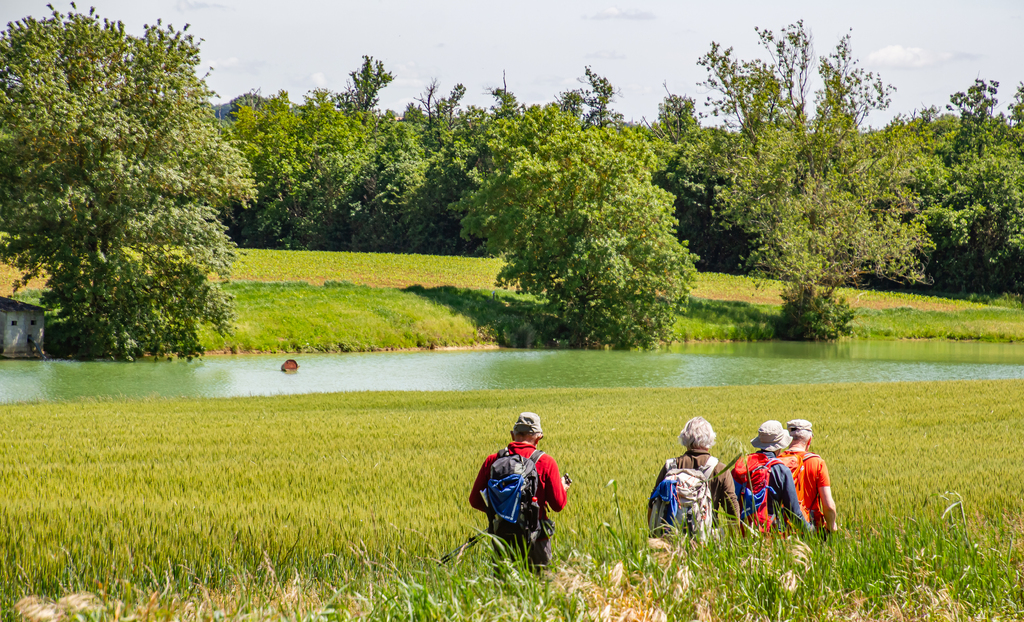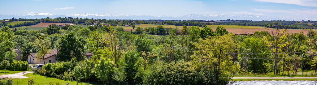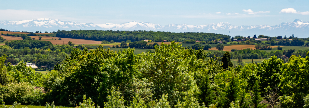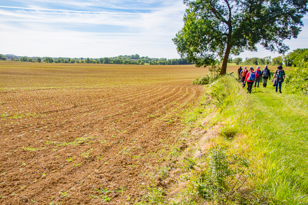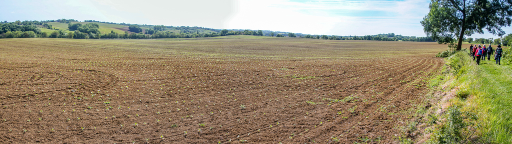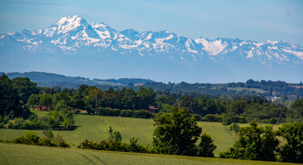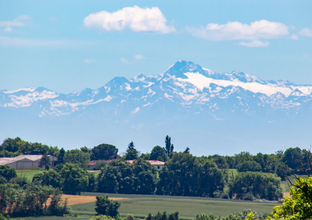 Direction La Hourcade par le chemin de Catonvielle à Cologne pour rejoindre la D 249 (superbe vue sur la chaine pyrénéenne) et St Germier : halte au beau moulin château. Chemin de St Germier à Cologne pour passer à Barré, Estingoy, Barberon, Les Téoules, rejoindre un chemin rural, retraverser le Sarrampion et arriver à Thoux pour la pause repas aux bords des fossés d'un ancien château disparu.