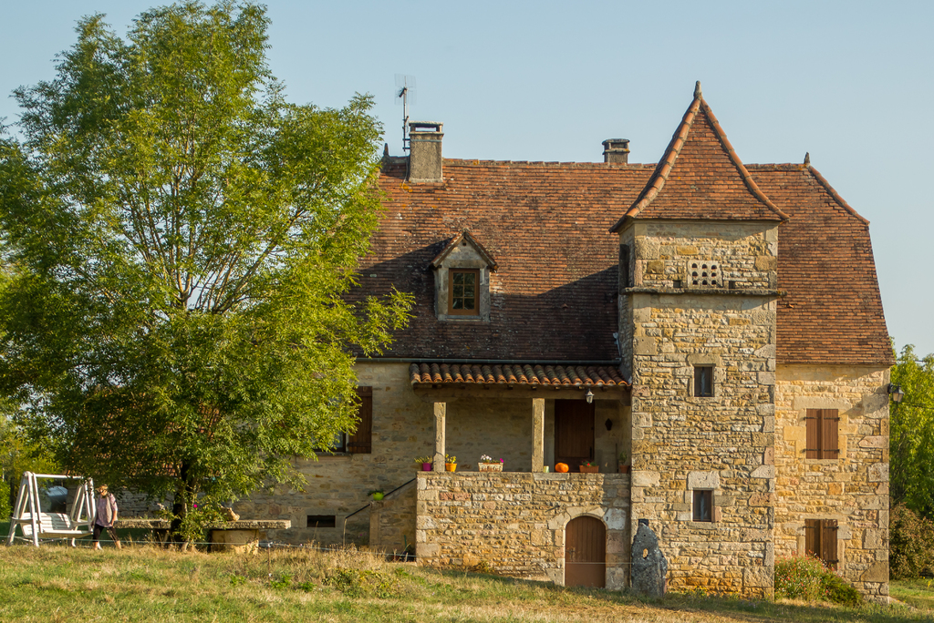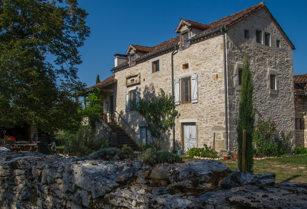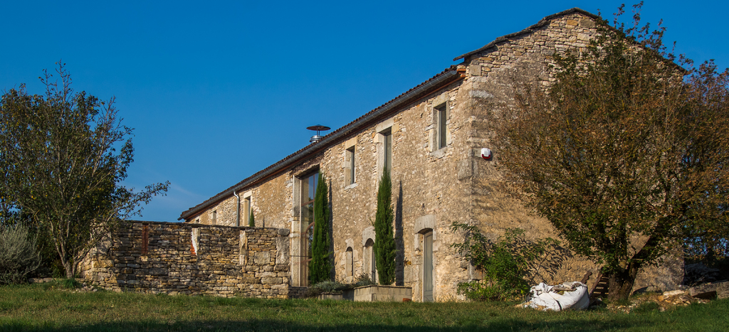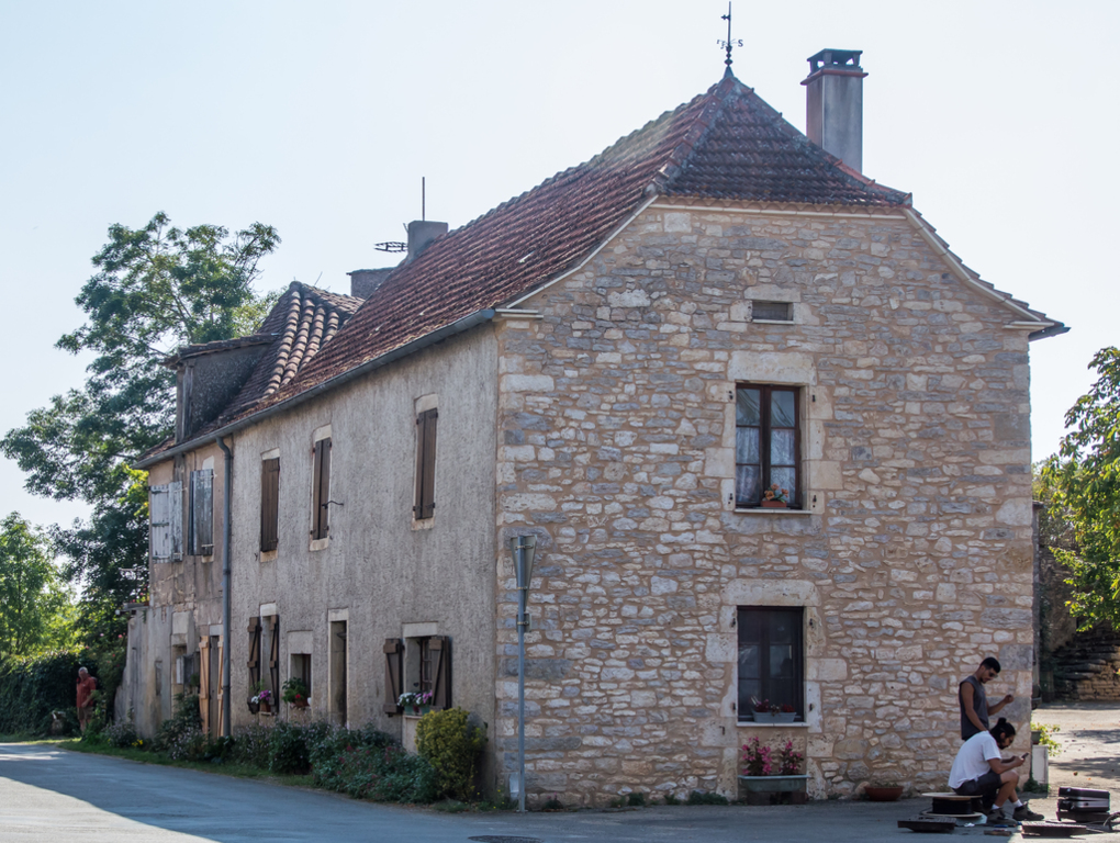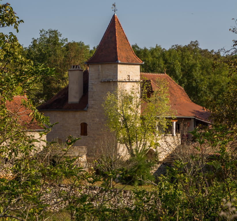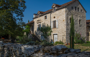 Départ du lavoir du 13° siècle en aile de papillon au lieu-dit Escabasse, direction Varaire par le GR de Pays de Midi Quercy. Passage devant de jolies demeures en pierres (Calcaire) à Pech des Countés.