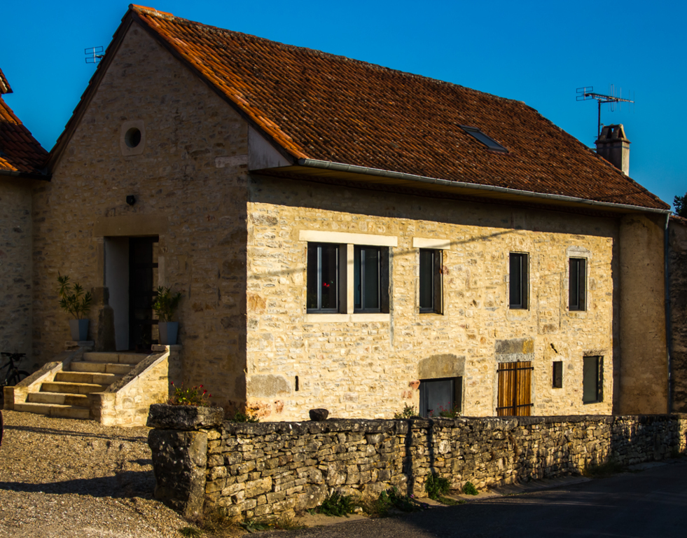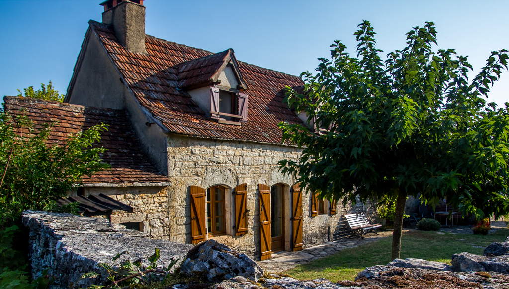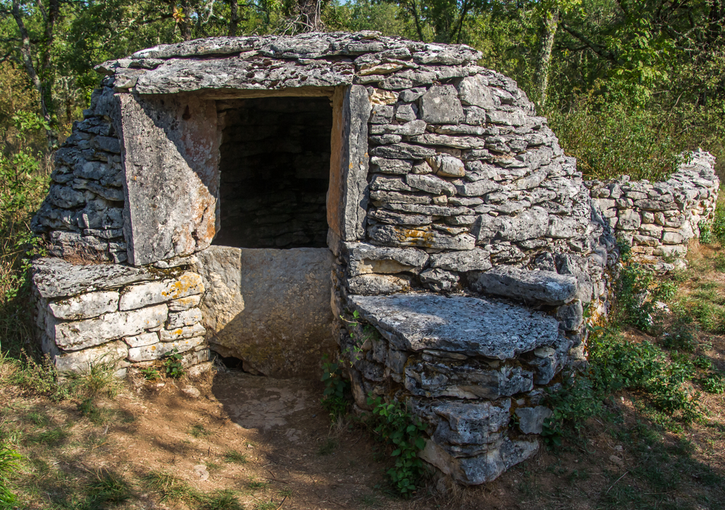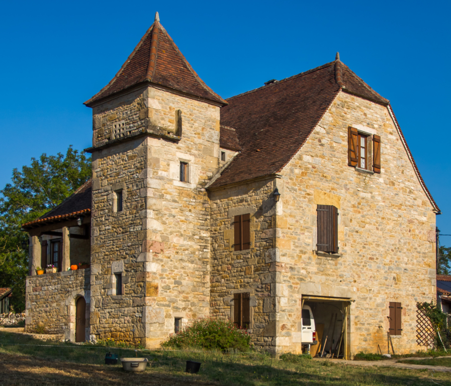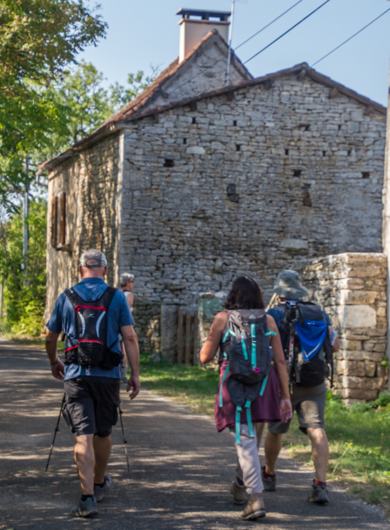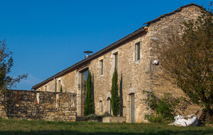 Départ du lavoir du 13° siècle en aile de papillon au lieu-dit Escabasse, direction Varaire par le GR de Pays de Midi Quercy. Passage devant de jolies demeures en pierres (Calcaire) à Pech des Countés.