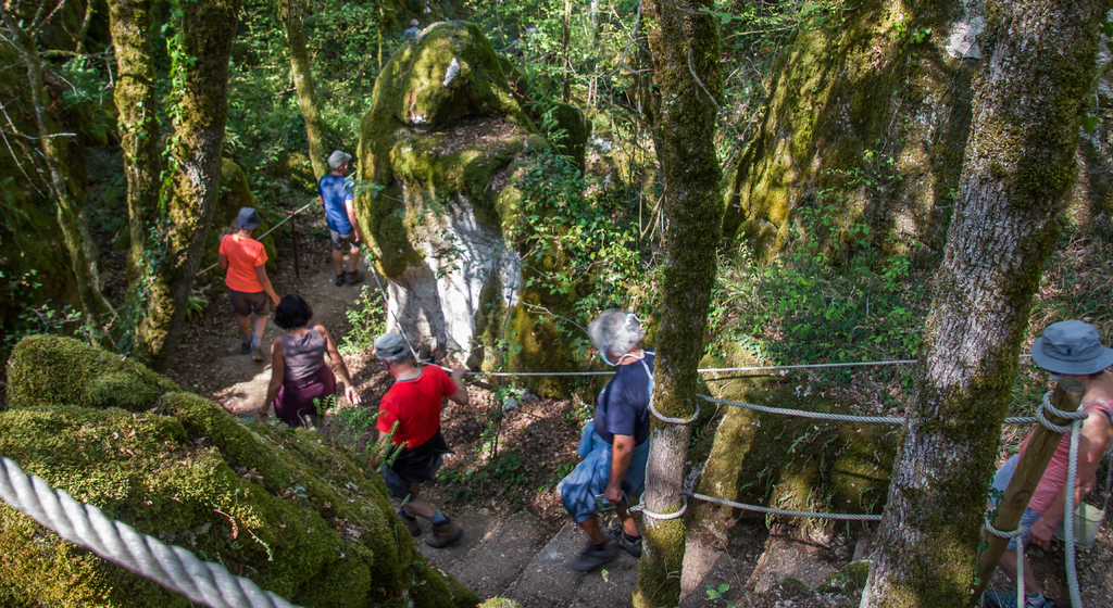 Retour au lieu-dit Escabasse par un sentier de découverte pour la pause déjeuner à l'ombre.