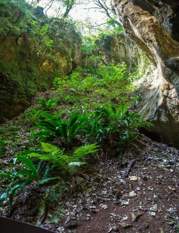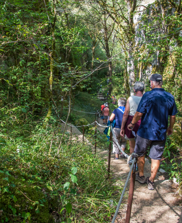 Dans ces canyons étroits, la végétation dense de fougères de type tropicale semble sortir tout droit de l’époque des dinosaures. Et nous sommes passés de 31° en surface à 15°C 70 m plus bas!