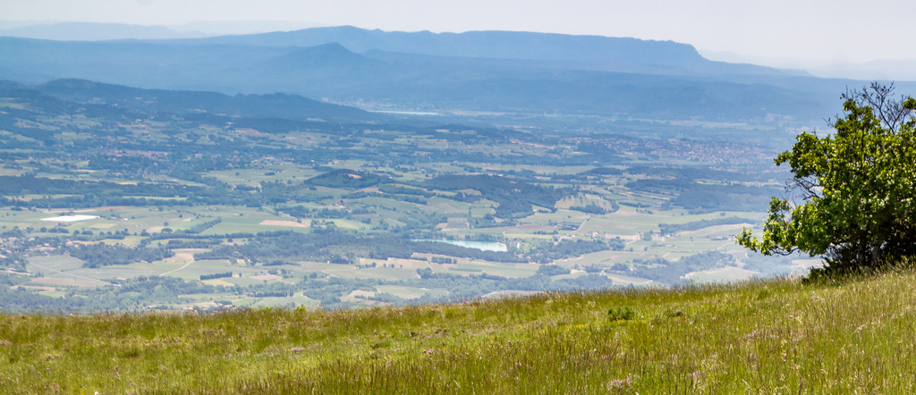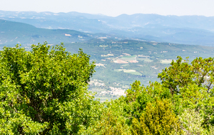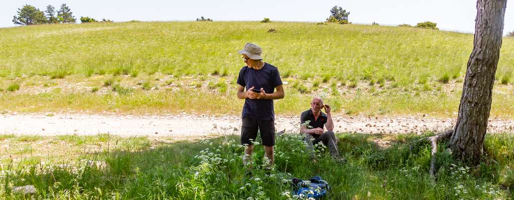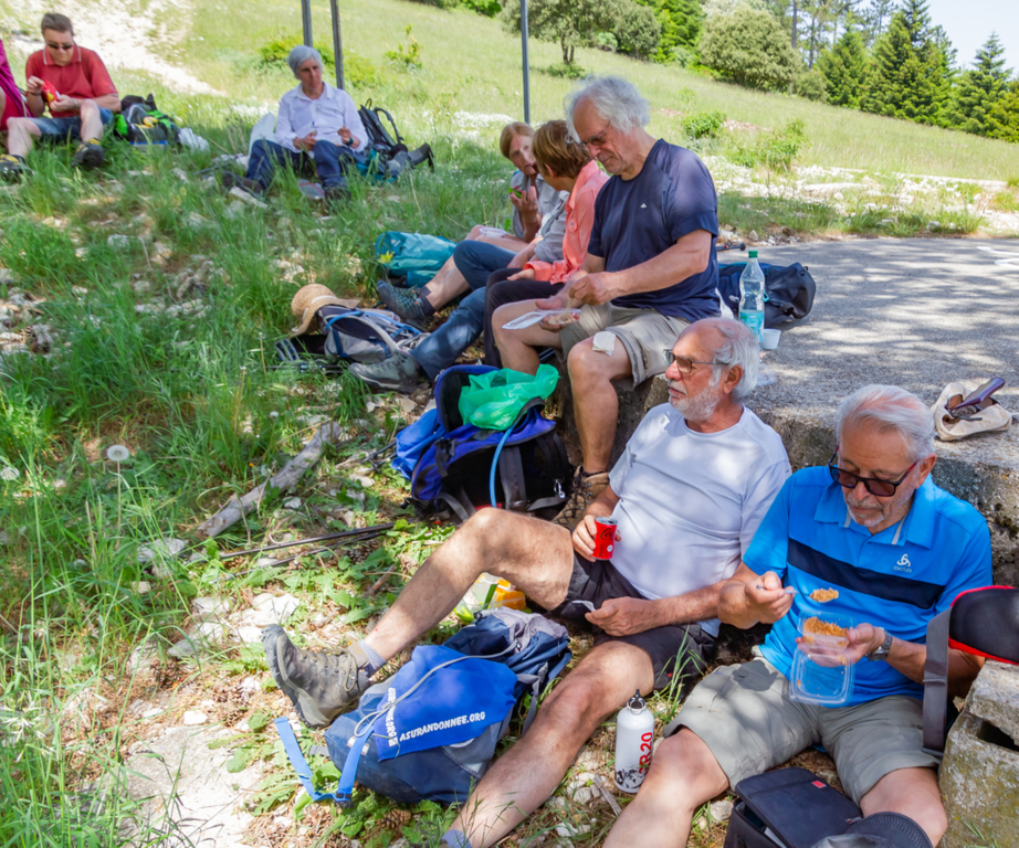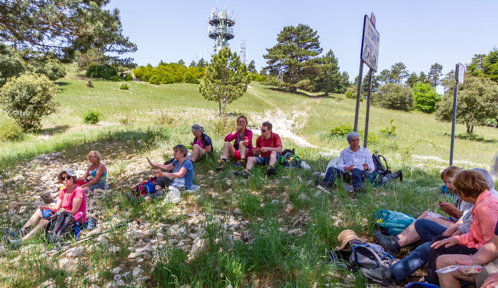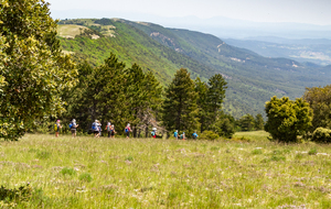 Descente sur la Basse de Cabrières (1027 m) avec belle vue sur Cabrières d'Aigues, la Motte d'Aigues et Saint Martin de la Brasq et Pertuis. Descente devenant de plus en plus raide avec de nombreux cailloux fuyant sous les pieds vers Agranier puis Marauvière, le vallon de la Font Jean de Martin, l'aire de L.Peysson, avant de retrouver les voitures pour un retour à Céreste pour prendre le repas convivial au VTF.