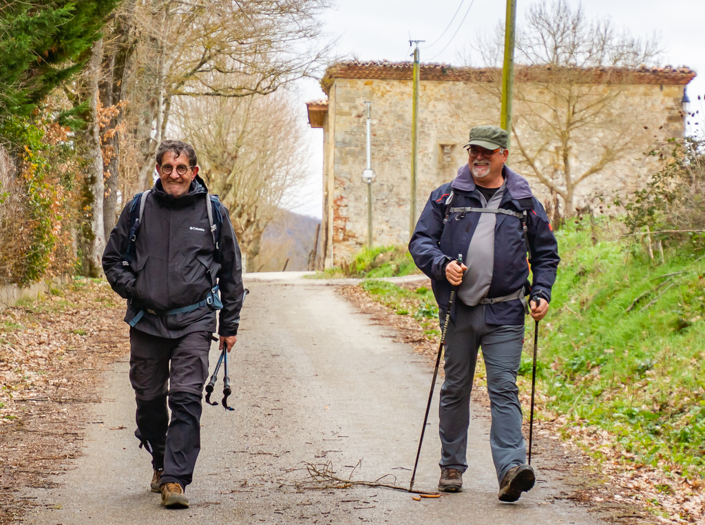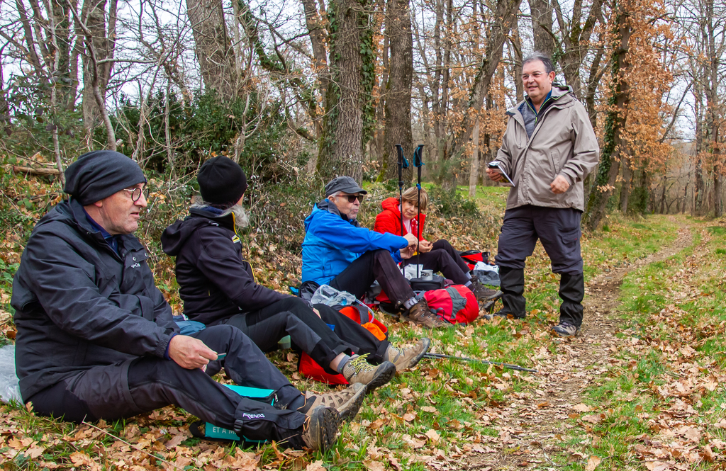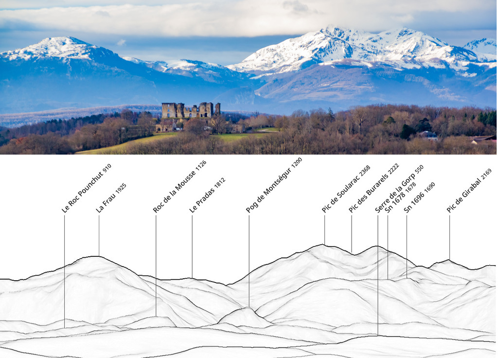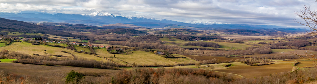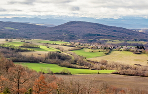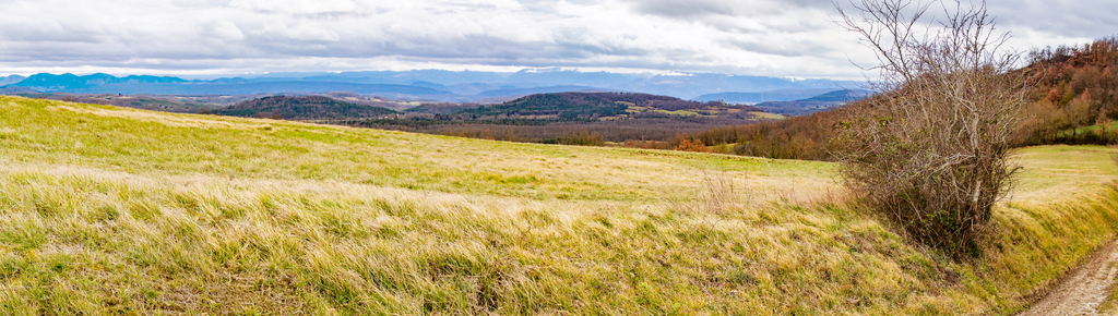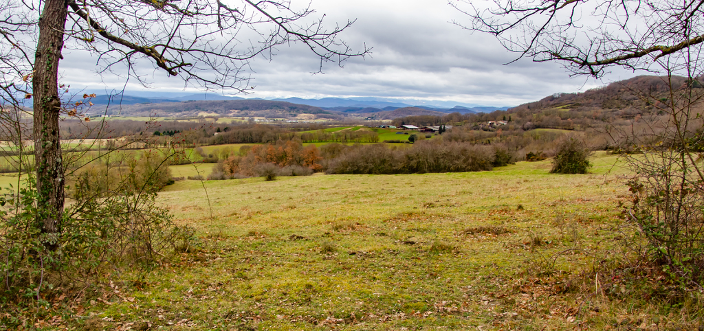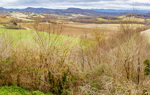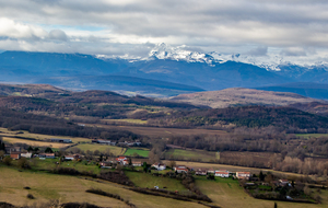 Belle montée par chemin vers Cazal des Faures avec superbe vue sur le Massif de Tabe.  Poursuite de la montée jusqu'à La Trémouillère en passant près du Roc de Monge avec toujours une belle vue panoramique sur les Pyrénées et le château de Lagarde.