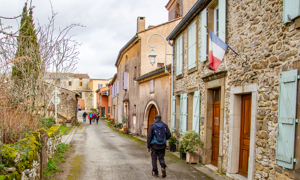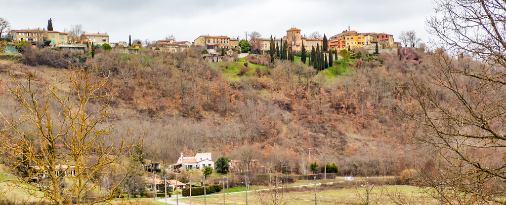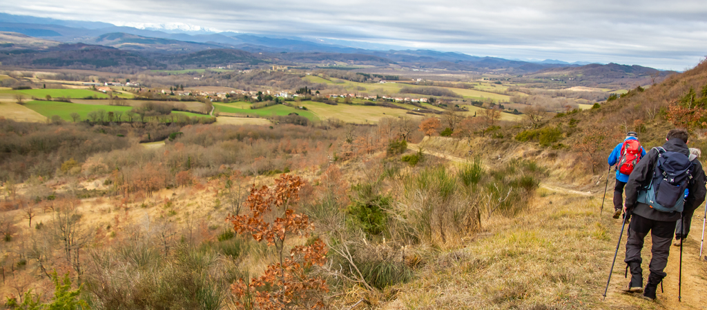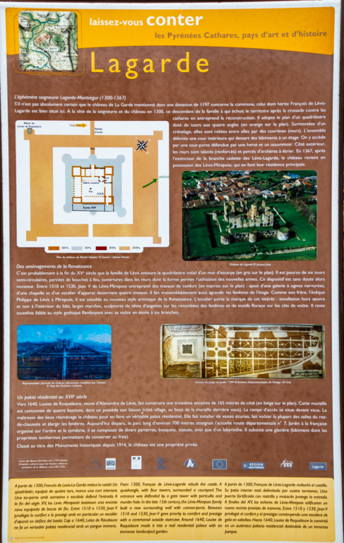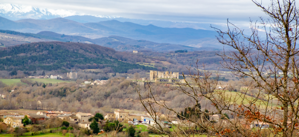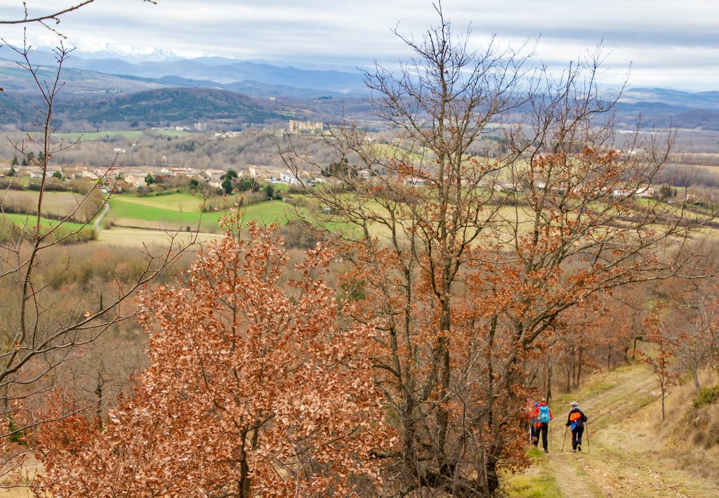 Descente en direction de La Grausse pour remonter vers Tréziers et le traverser. Descente vers Les Ribes puis chemin le long du ruisseau Largaril pour rejoindre la D 1625 et La Fourche. Passage à Granjou D 207 et montée sur Lagarde après avoir traversé l'Hers Vif en ayant une vue superbe sur le château féodal de Lagarde en ruine. Traversée du village et contournement du château.