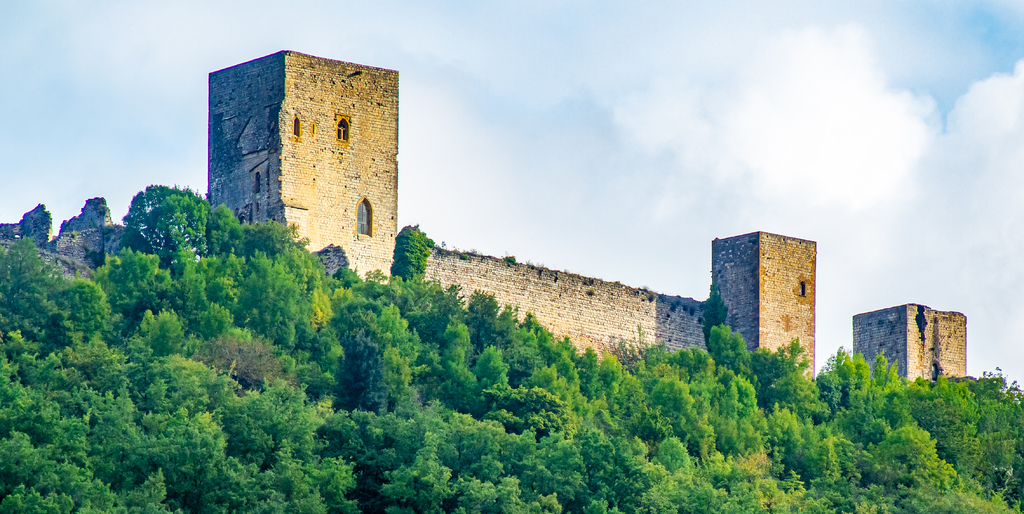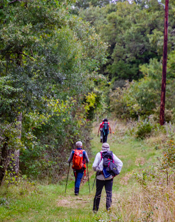 Poursuite dans le Bois de l'Espezel, le Pas de la Bessègne (602 m) et long cheminement sur les crêtes dans les bois (Le Baccatel, Les Costes) ) pour arriver au château Cathare de Puivert.