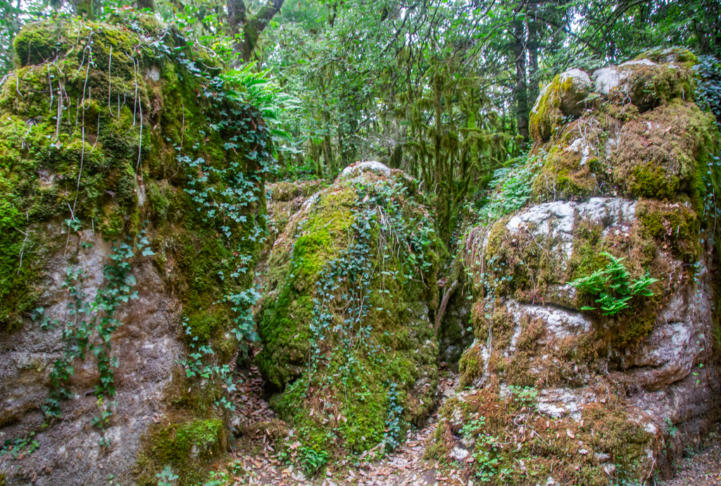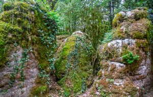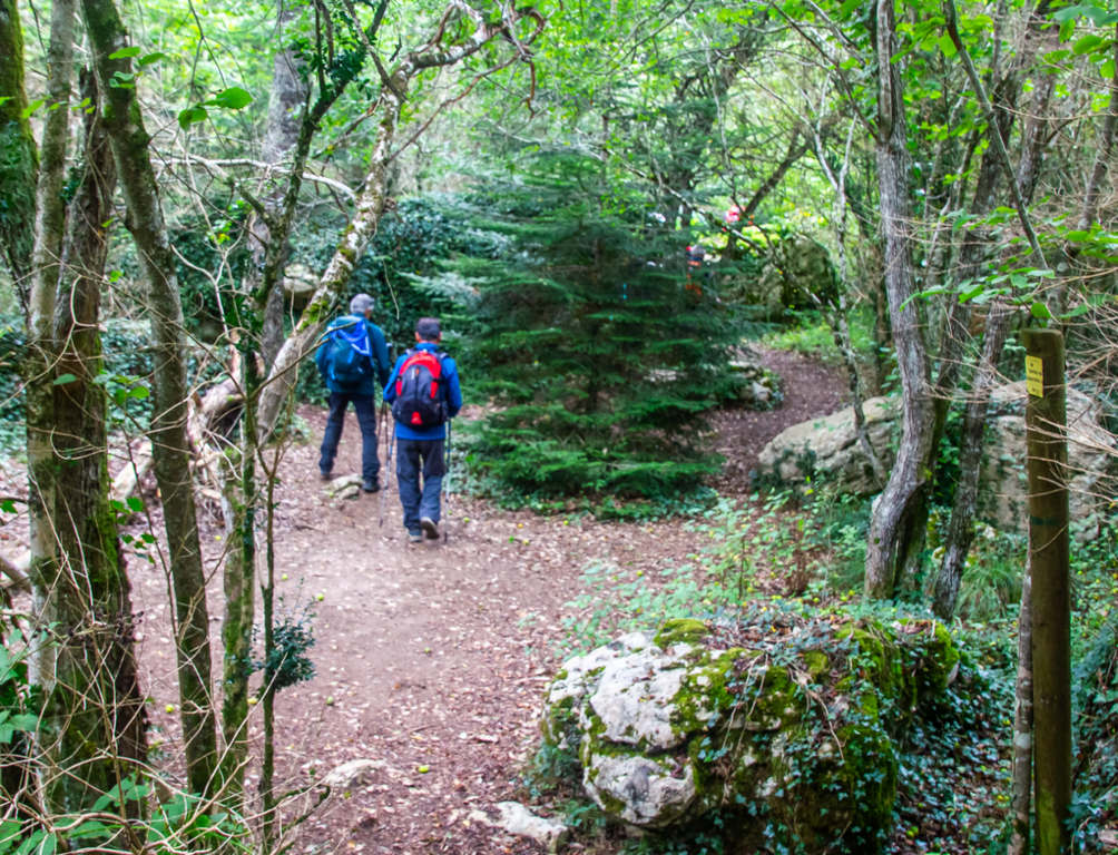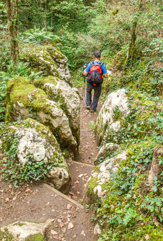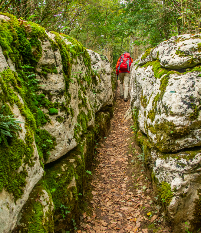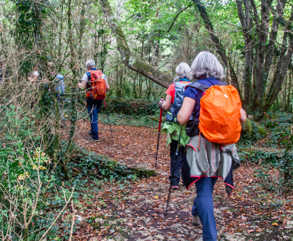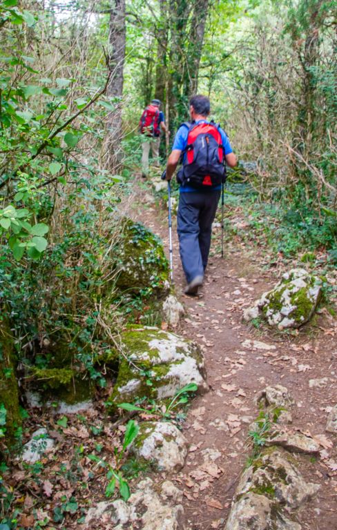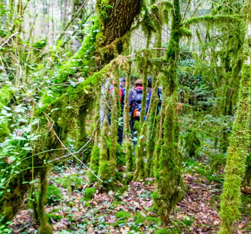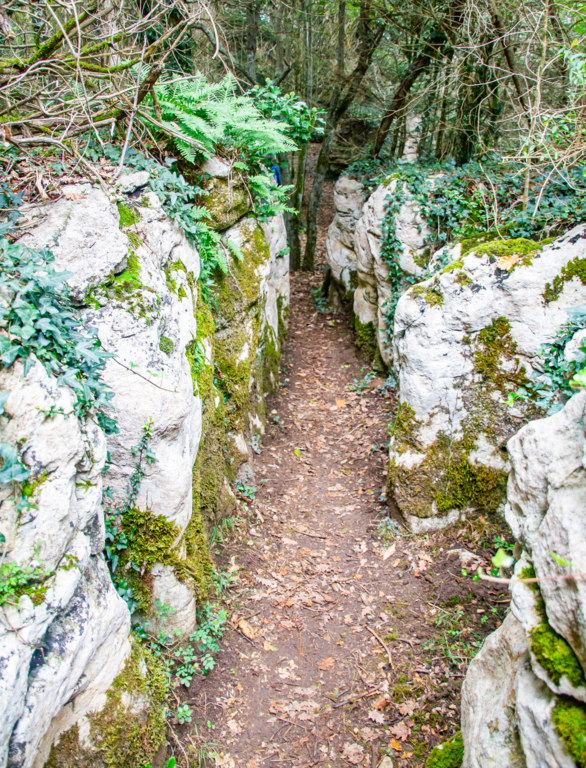 Le Sentier Nature débute au niveau des ruines restaurées de moulin à vent (alt:610m) pour ensuite s'enfoncer dans le dédale d'un Lapiaz calcaire avec une première rencontre avec un Chêne Poulpe. Entrée dans le Labyrinthe Vert avec une pause repas avant d'atteindre le Grand Lapiaz puis Le Clot de l'Encatado, le Sapin Harpe, le Ch^ne Vieux et les ruines d'En Dominique.