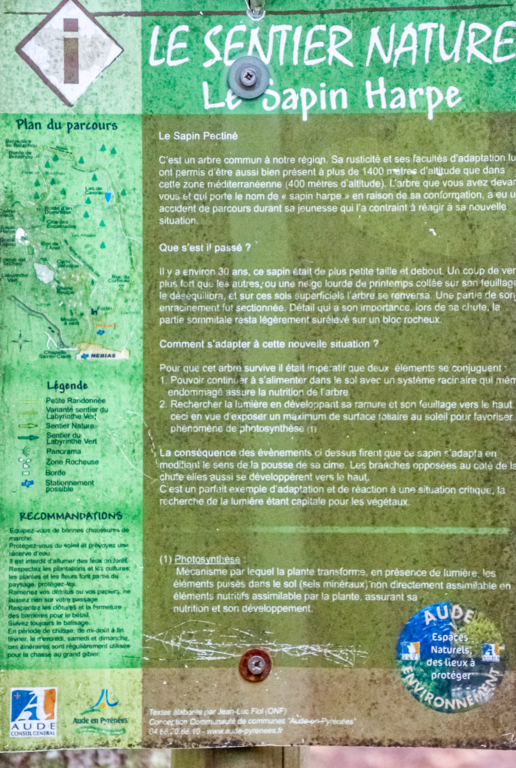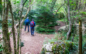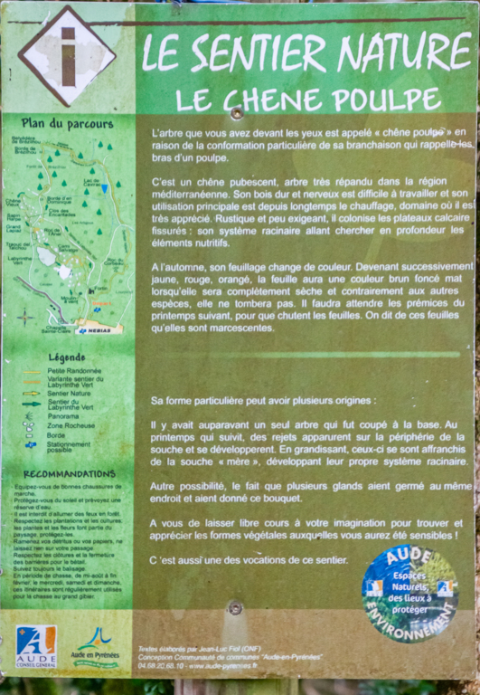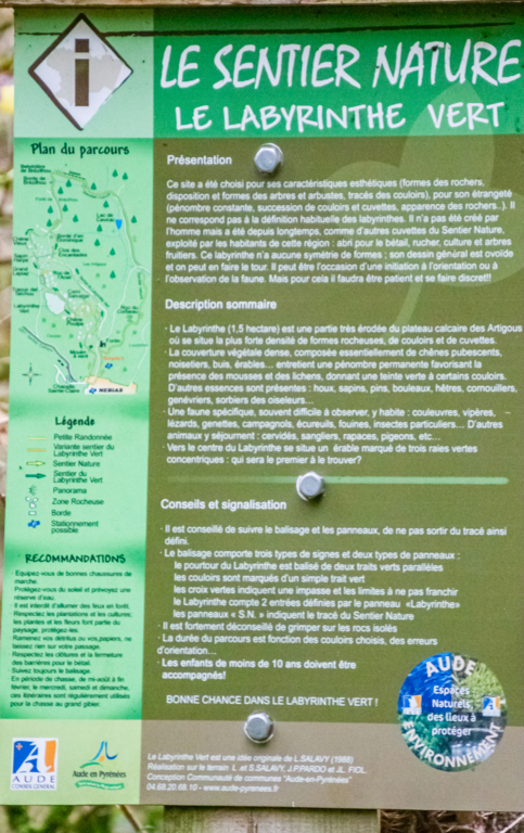 Nébias laissé à droite pour s'enfoncer dans le sentier nature et le Labyrinthe Vert.