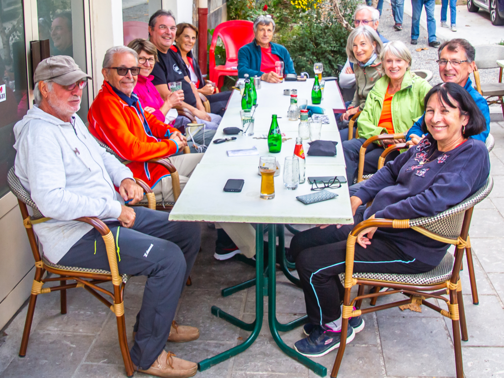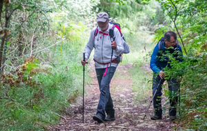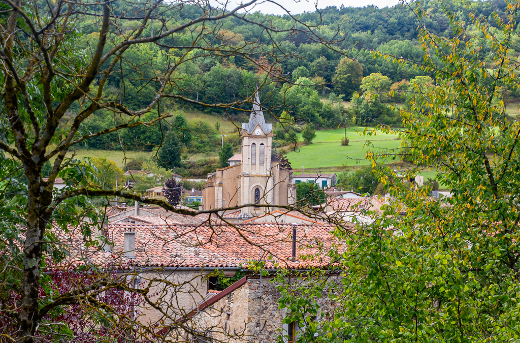 Courte et rapide descente bien pentue pour rejoindre le village de Puivert (avec belle vue sur le clocher de l'église Saint Marcel) et atteindre nos voitures.