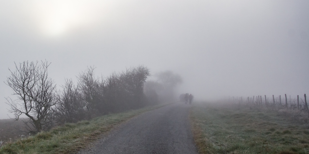 Brouillard une nouvelle fois très épais pendant une bonne heure de la matinée devenant ensoleillé ensuite, froid avec vent d'autan lors de la visite de l'abbaye (de 2°C à + 7°C),.