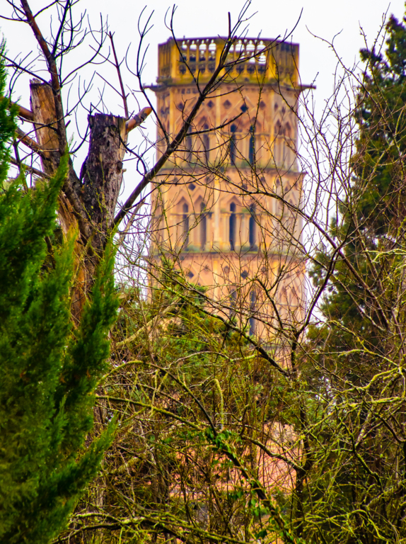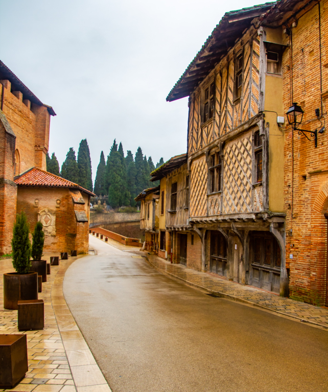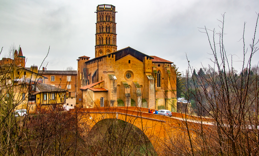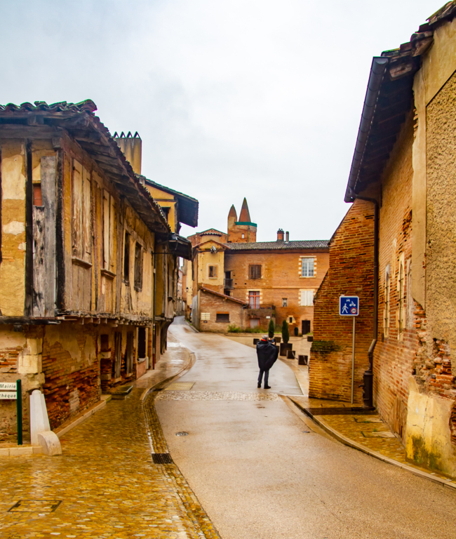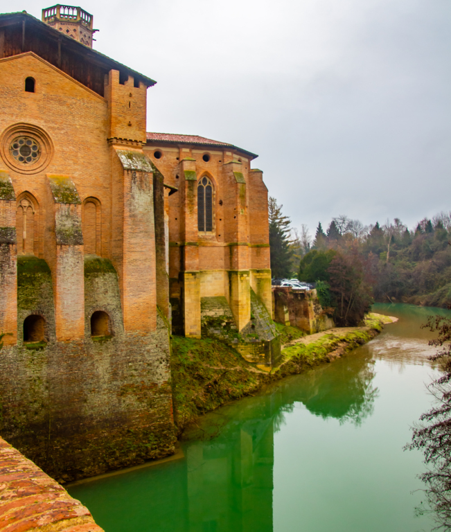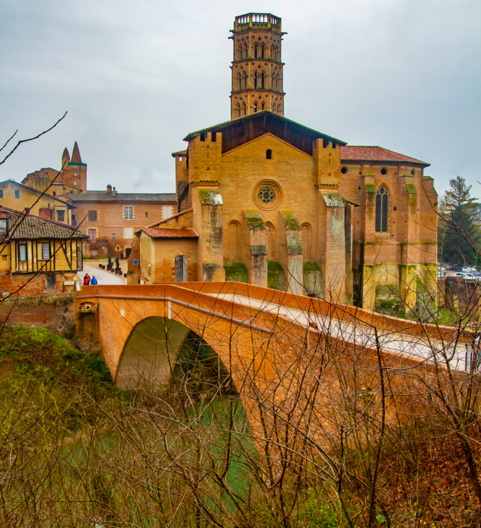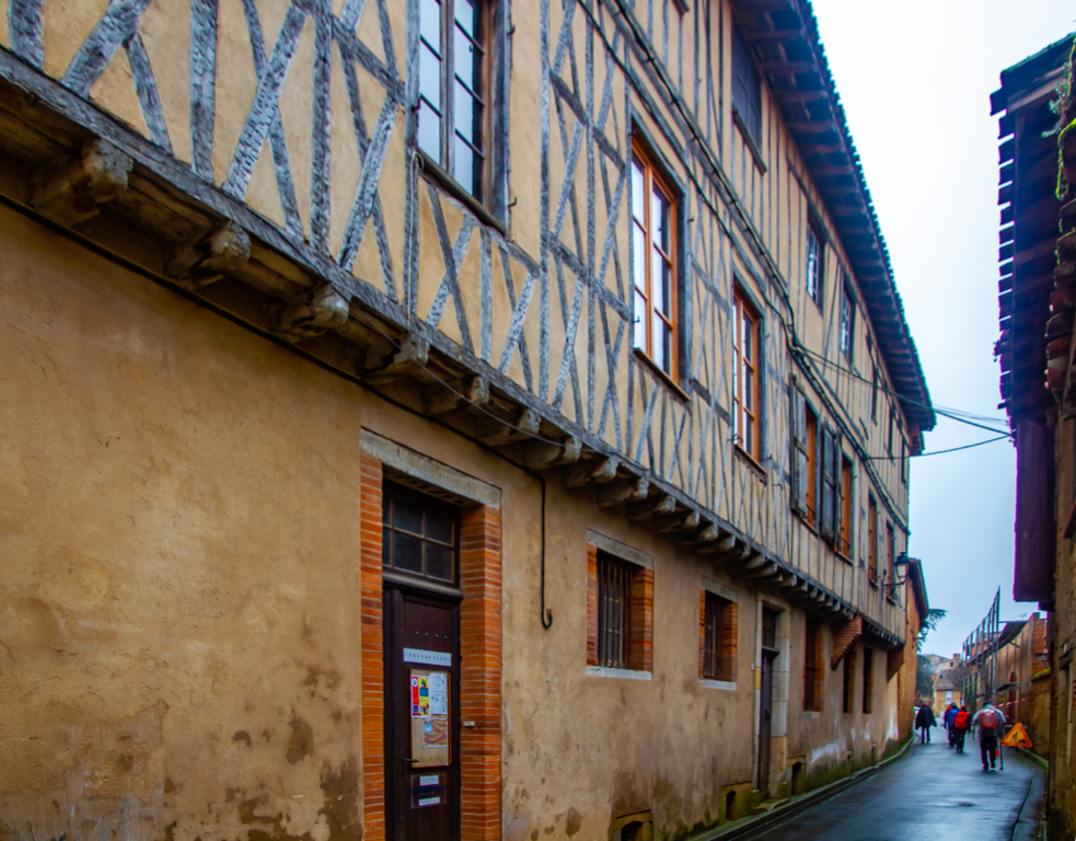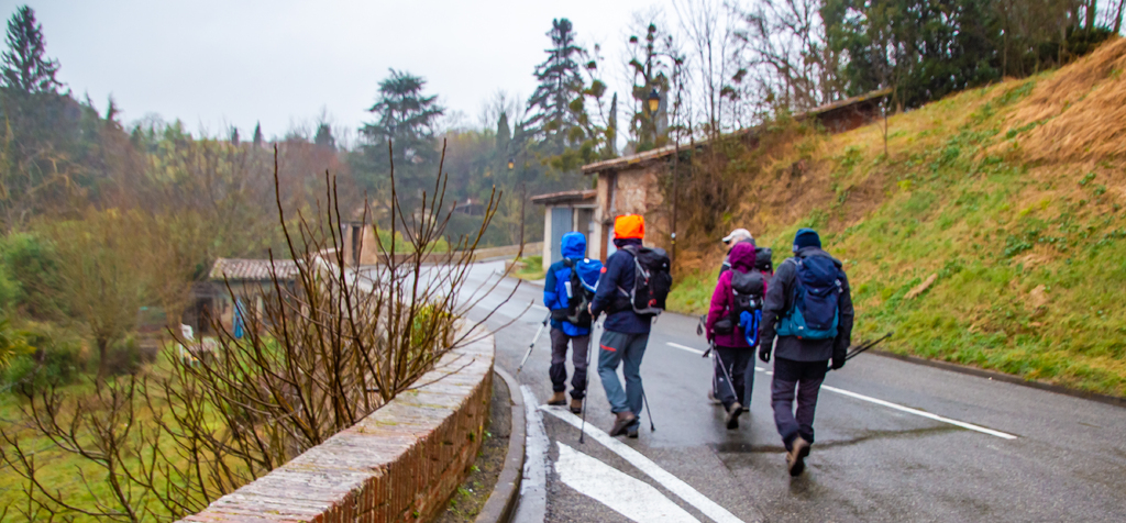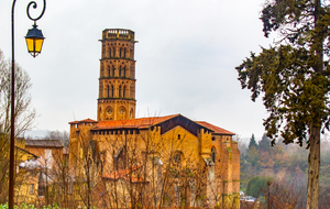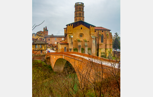 Descente par le chemin de La Casterette en dominant Rieux , nouvelle traversée de l'Arize par le Pont de Lajous, entrée dans Rieux par la rue de l'Evéché au pied de la cathédrale Sainte Marie et le trésor Episcopal (Place Lastic).