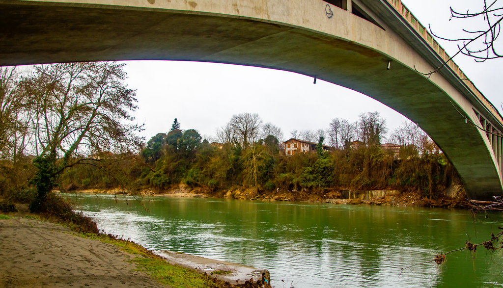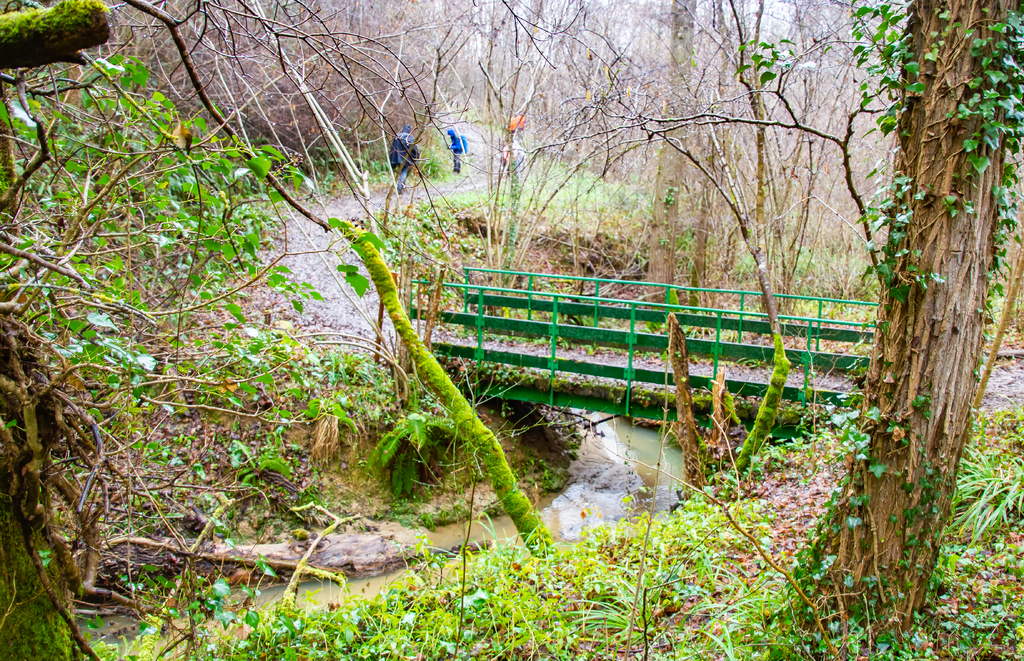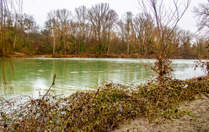 Pause repas sous le pont de St Julien près de Maillan. Retour par le même chemin le long des berges (et non par falaise en bord de Garonne dangereuse) sous une épaisse bruine. Retraversée de Rieux par la place de la Caserne, rue de Mirepoix, rue d'Auriac jusqu'au pont d'Auriac sur l'Arize et sa chapelle Notre Dame de Bonne Garde au milieu, rue du Solan du Comté, rue des Donades et le parking de départ.