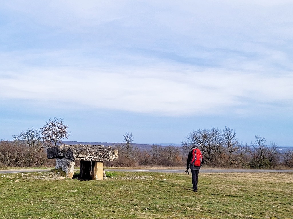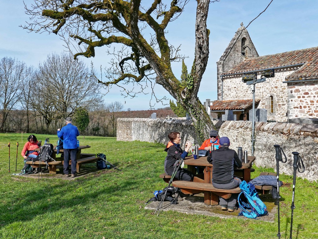 Une belle journée entre Vaour (son dolmen et sa voiture d'Al Capone), St Michel de Vax (son église), une petite pause en chemin puis montée sur le col de Fourcou (panorama Grésigne, Vallée Aveyron et dolmen) avant d'atteindre Roussayrolles (son église, son cimetière et son picnic), avec des fontaines sur le chemin (dont celle de Vaour), puis un pot bien mérité à Gaillac. Le tout en très bonne compagnie.