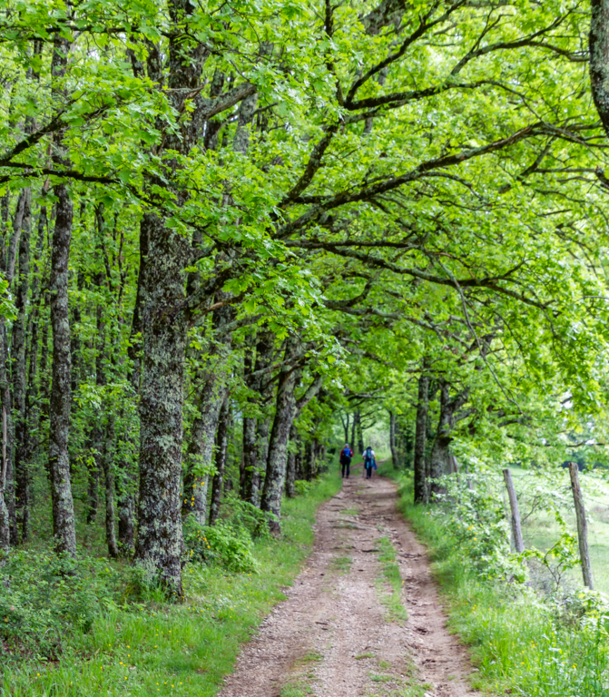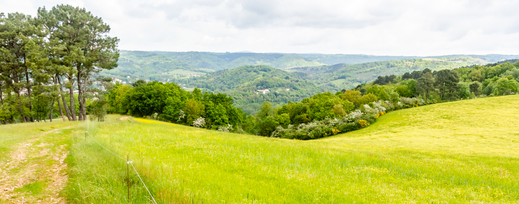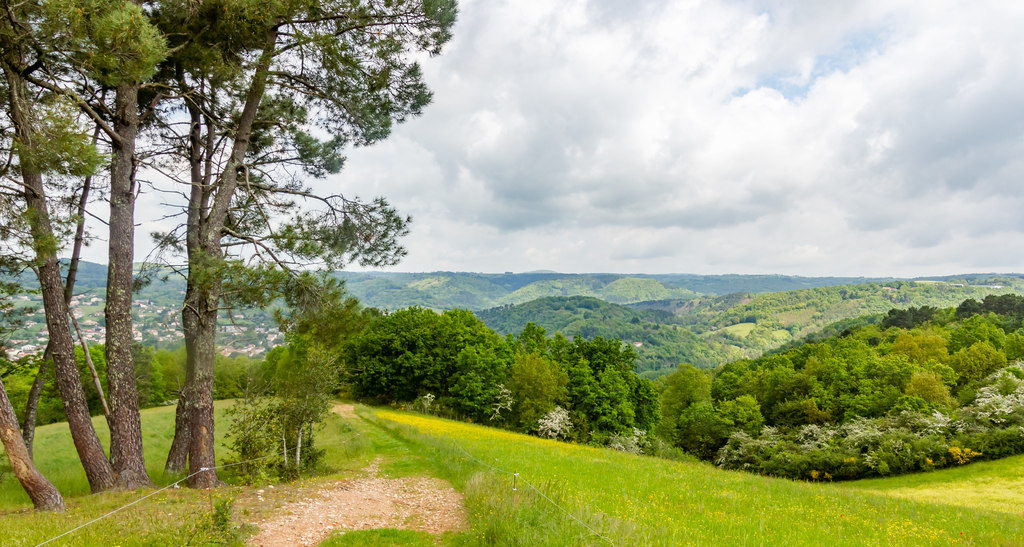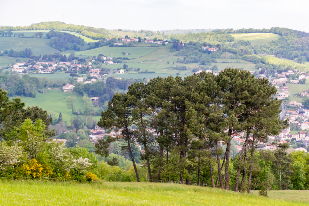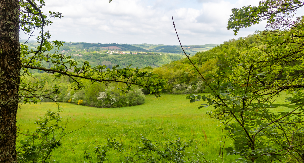 Belle montée jusqu'à la Simonié avec de superbes points de vue sur Roquecourbe au bord du méandre de l'Agout. Poursuite sur les crêtes jusqu'à La Gléne et la Bancalié pour la pause repas.