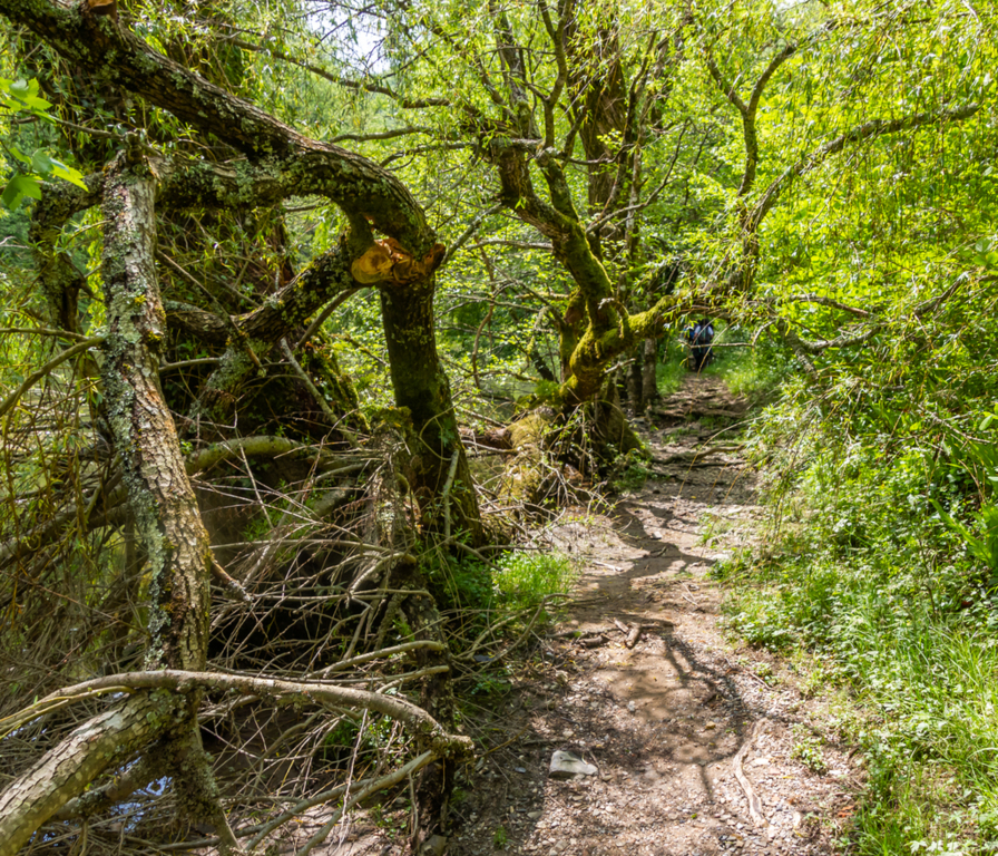 Dernière courte et faible montée avant la descente délicate, pentue et parfois glissante par Gourteau jusqu'au bord de l'Agout (rive droite). Poursuite sur la rive de l'Agout par le Carla, la Ramière jusqu'à l'entrée de Burlats par la porte de La Bistoure.