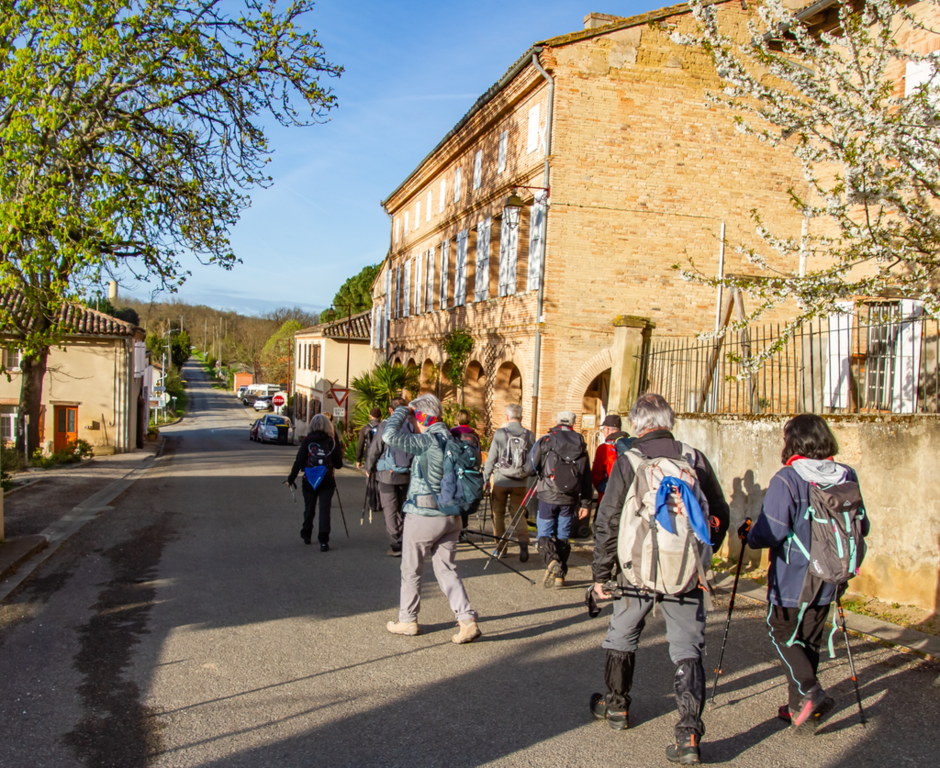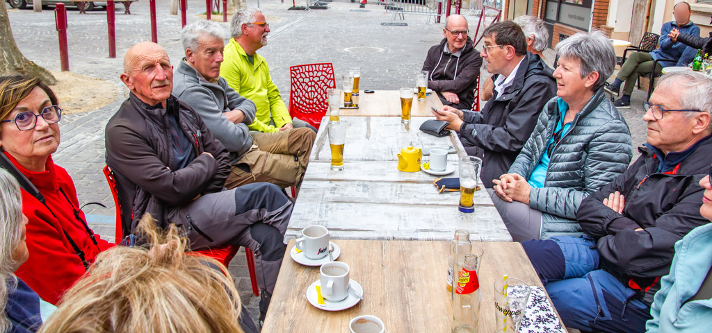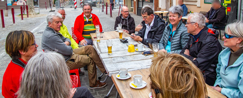 Pot de fin de Randonnée à Grenade sur Garonne face la belle halle médiévale couverte.