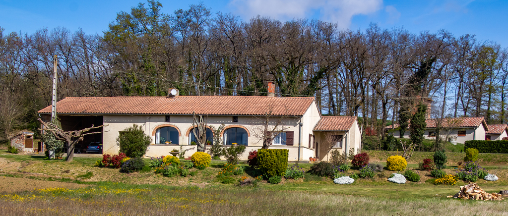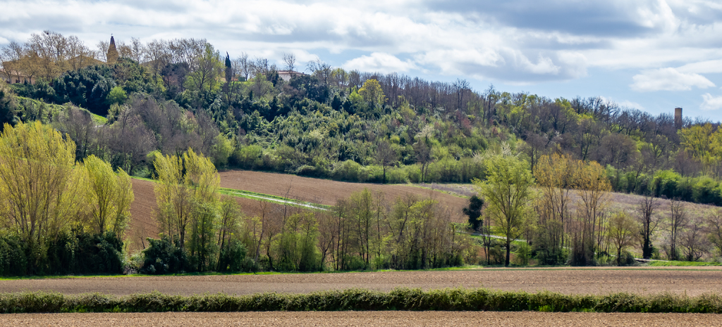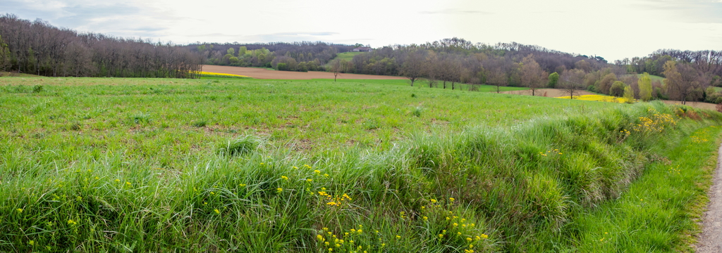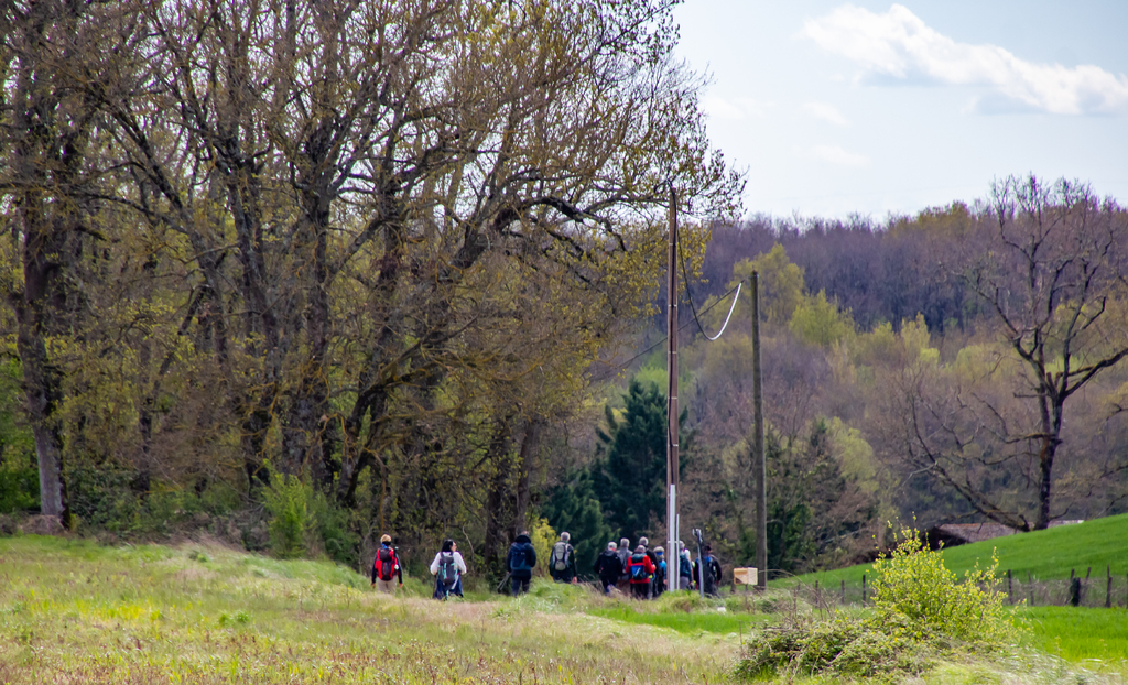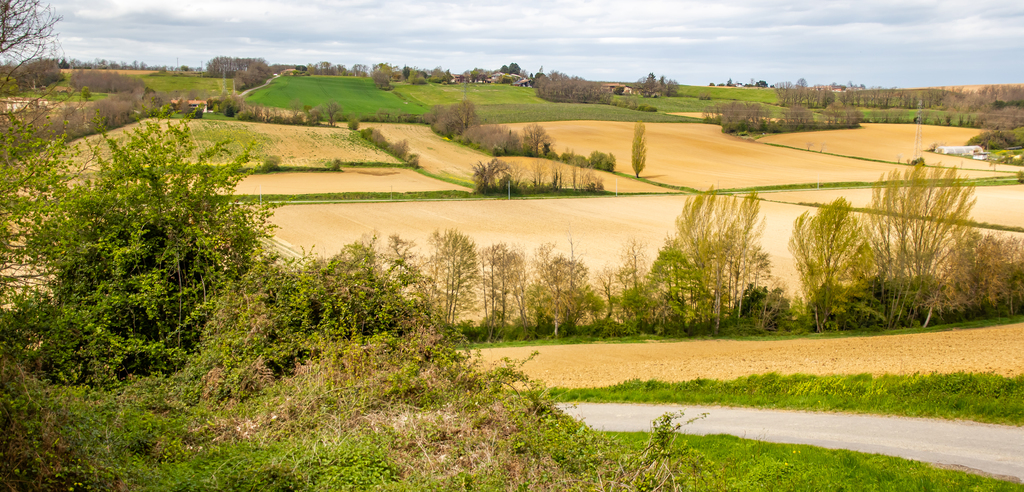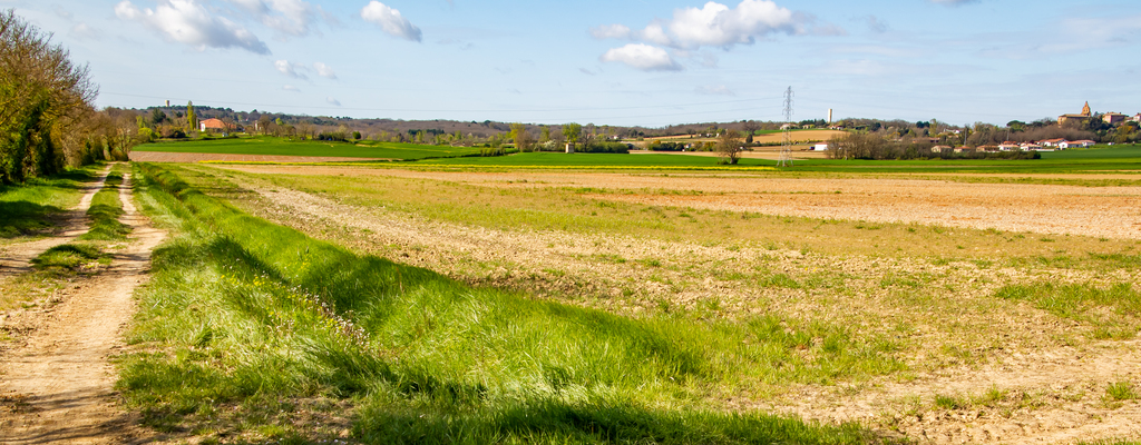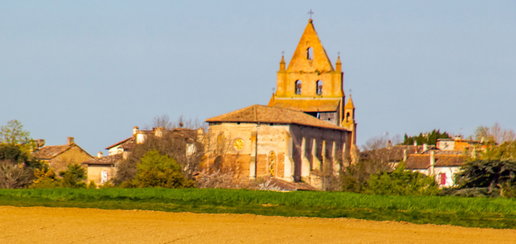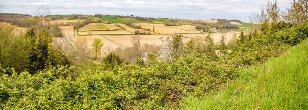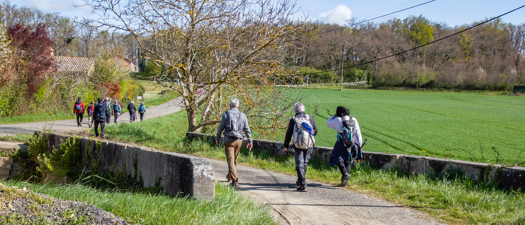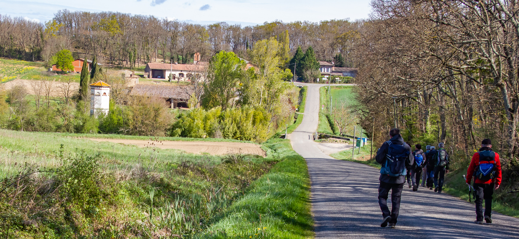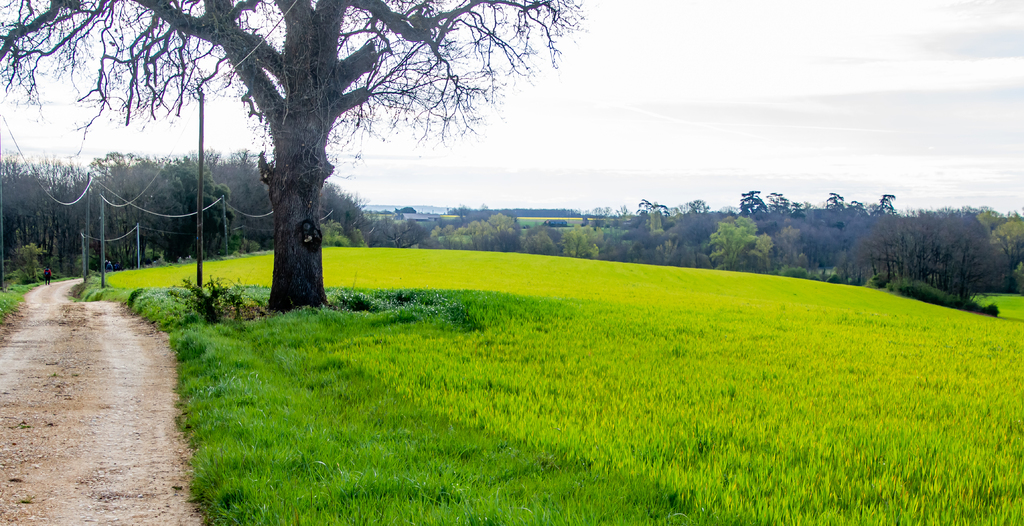 Direction Délivrance à travers chemins agricoles pour traverser la D3, retrouver la D55 et longer le Bois de Bouscarras, passer le ruisseau de Nadesse et arriver à l'Ancienne Abbaye Cistercienne de Grand Selve.