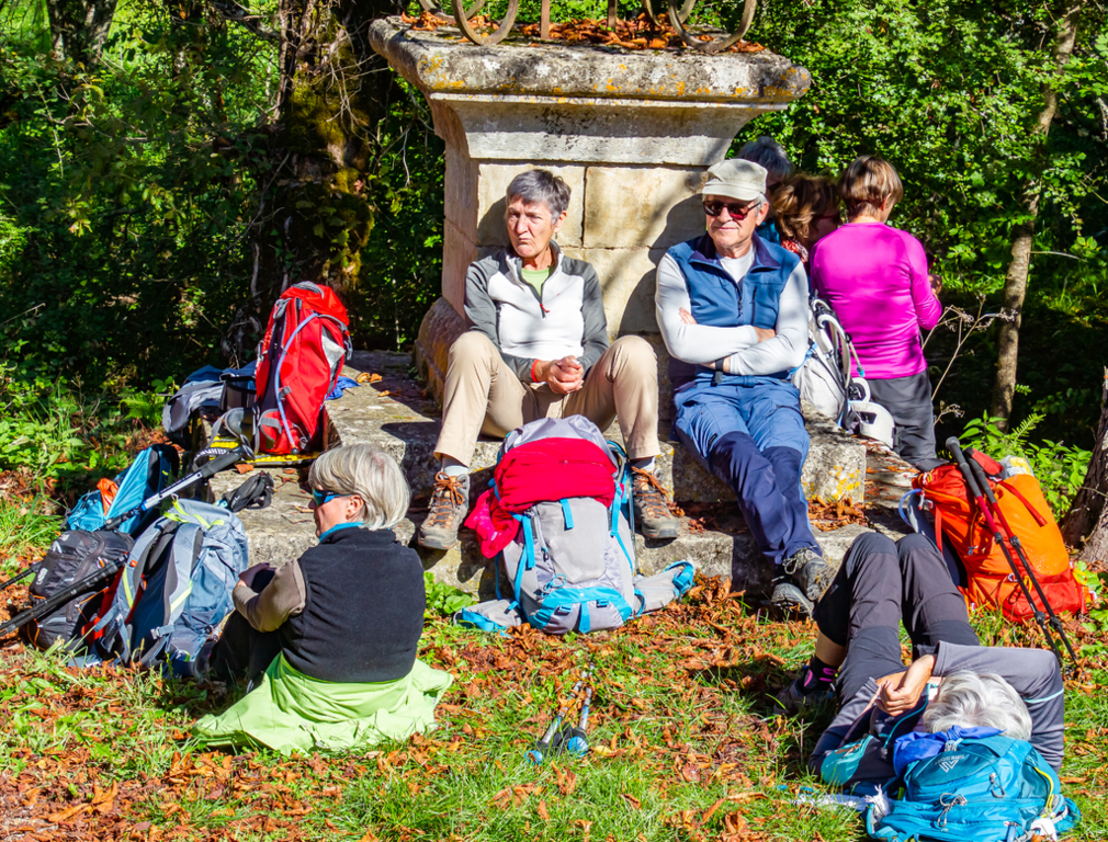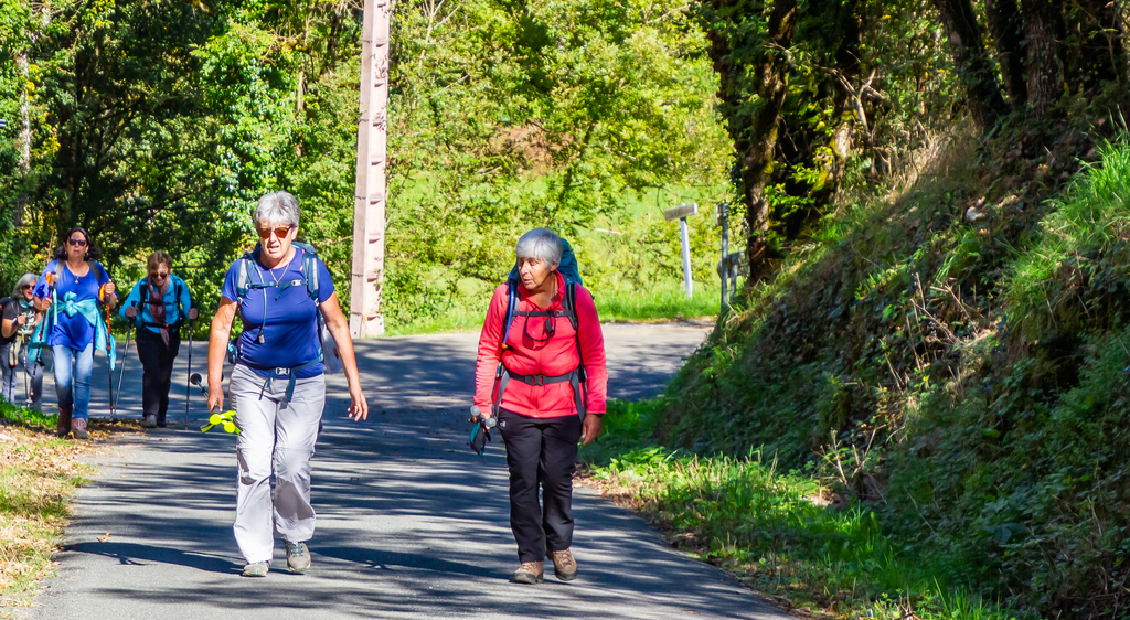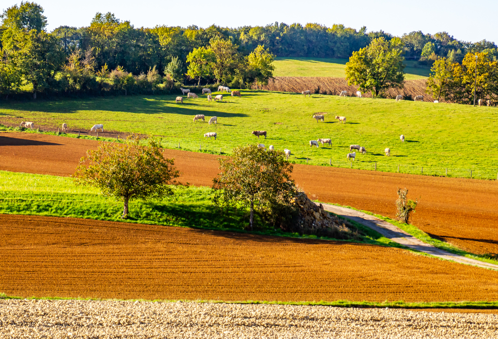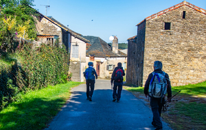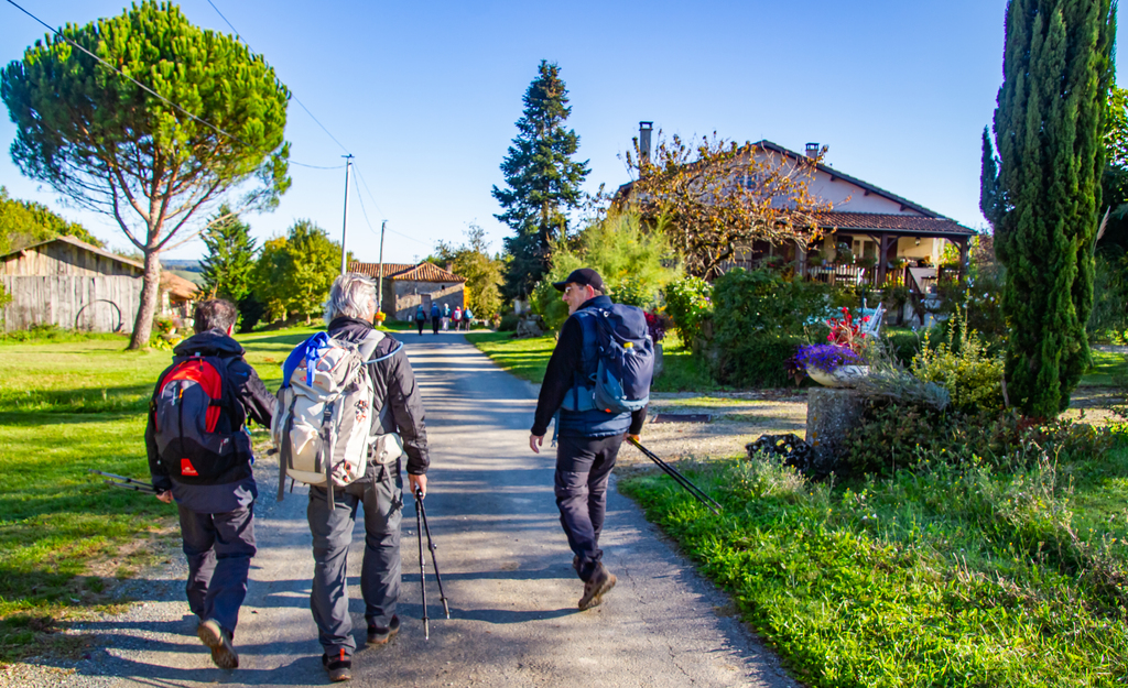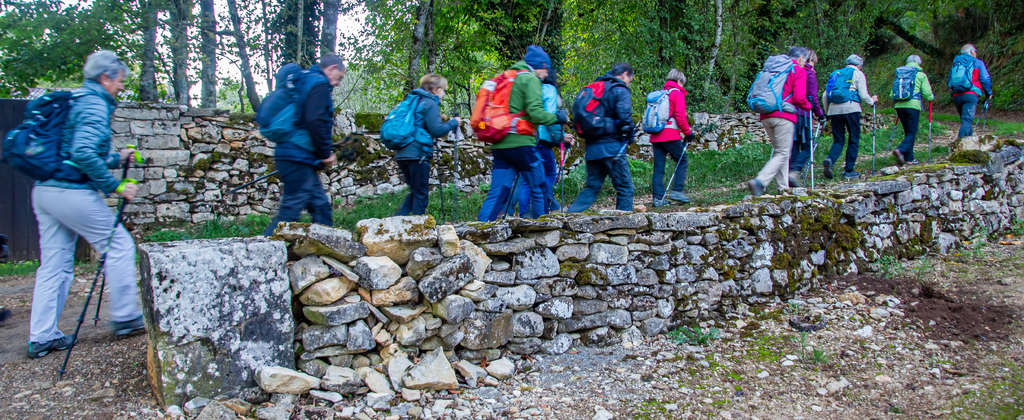 Direction Larticombe, une pause en-cas avant Garrigue, poursuite vers Couderc, La Remise, Les Combes (traces de fossiles) avant d'arriver à Espinas. Traversée du village avec ses outils d'un autre temps, son ferronnier sculpteur et son église. D'Espinas, belle vue sur le Château de Cornusson et le village de Parisot. Poursuite dans la campagne du Tarn et Garonne vallonée avec ses travaux des champs tout en passant par le hameaux de L'Encournat, Les Albarèdes (bonne montée), Miquel, Moussié, Mas d'Astruc, La Frau. Arrivée pour la pause repas tardive au pied de la chapelle de Caudesaygues.